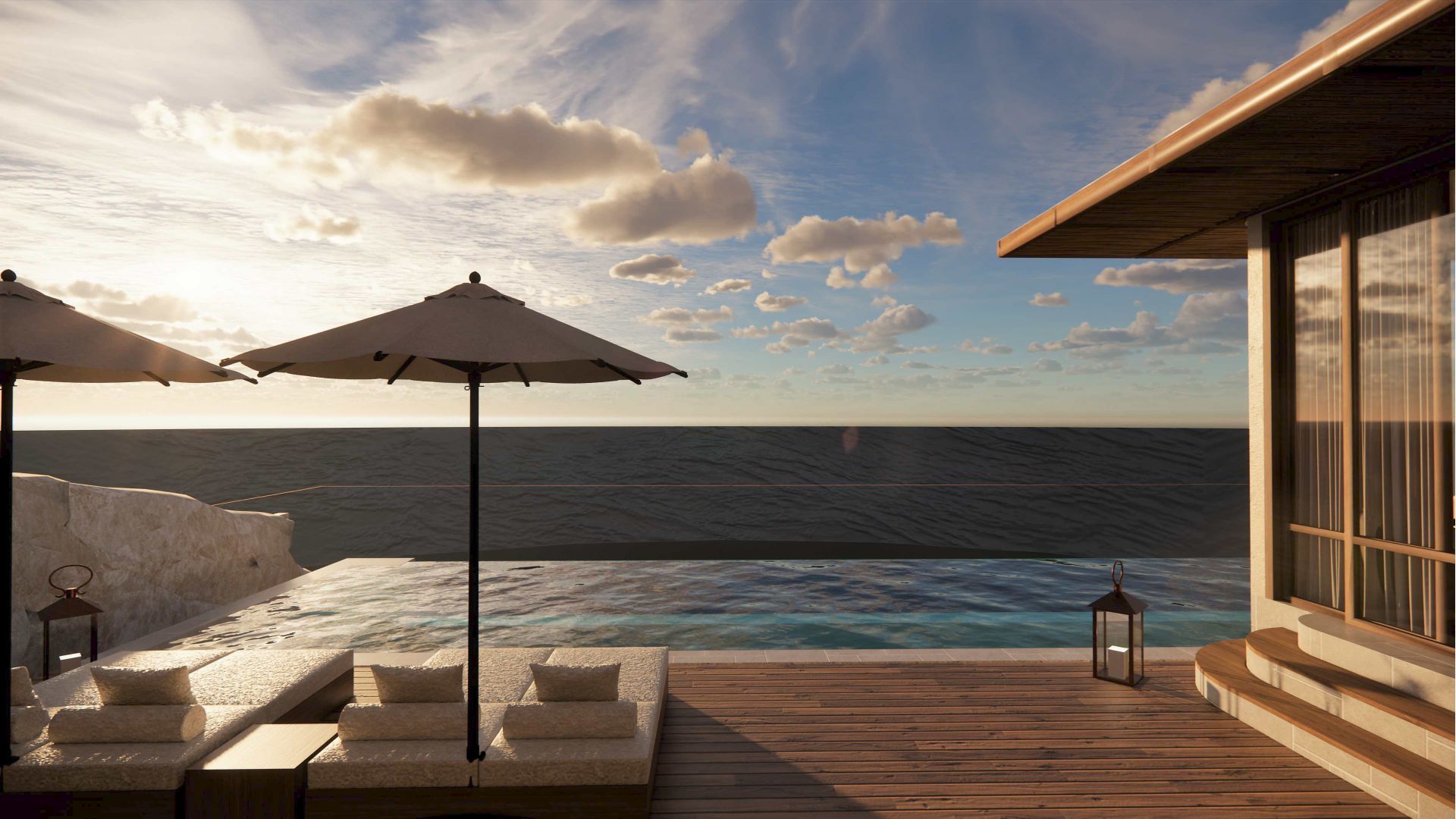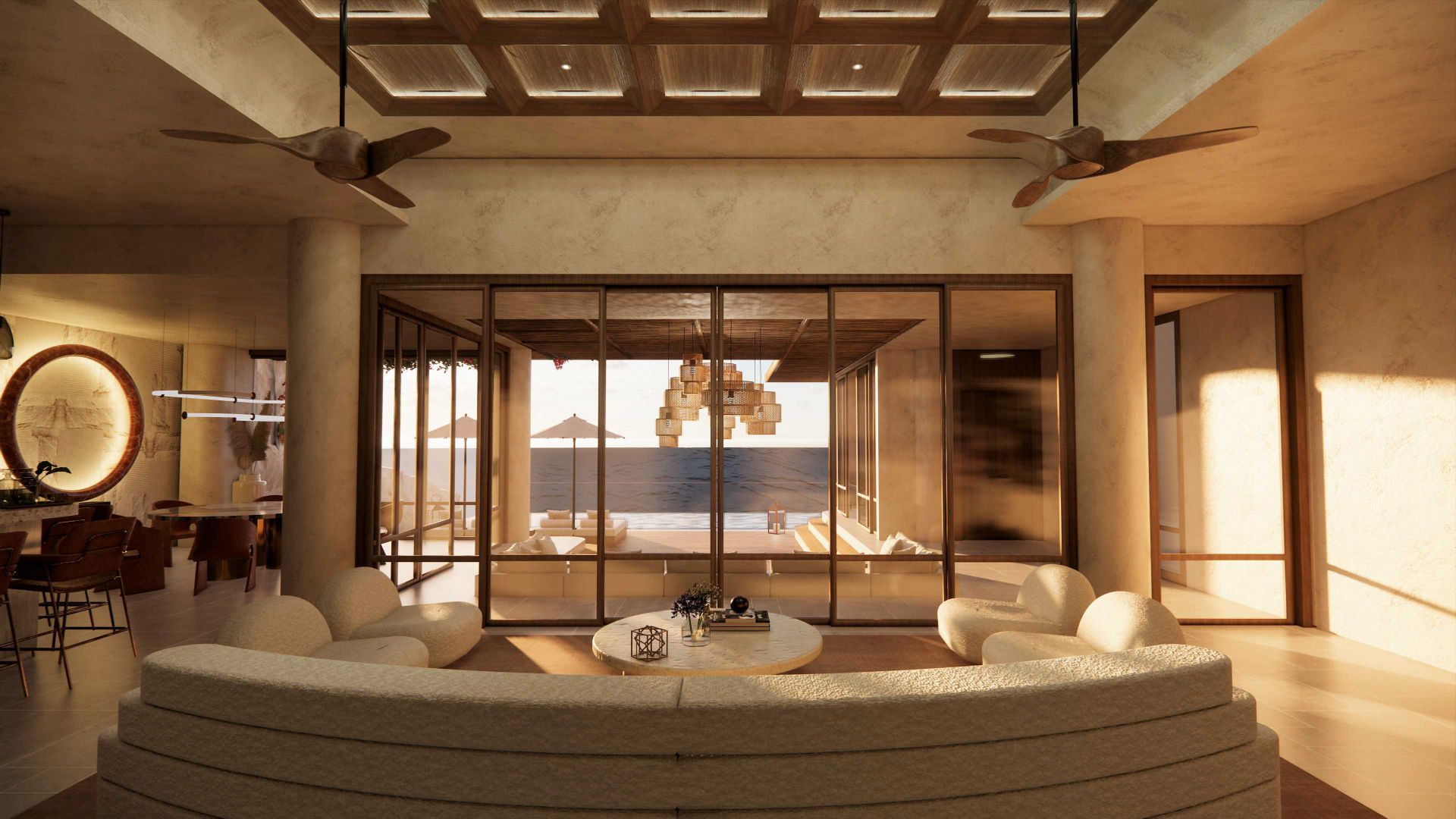Las Villas ofrecen 4 recámaras, 4 baños, sala, comedor, cocina con minibar, sala de cine y juegos, alberca, terraza con camastro y muchas más amenidades.