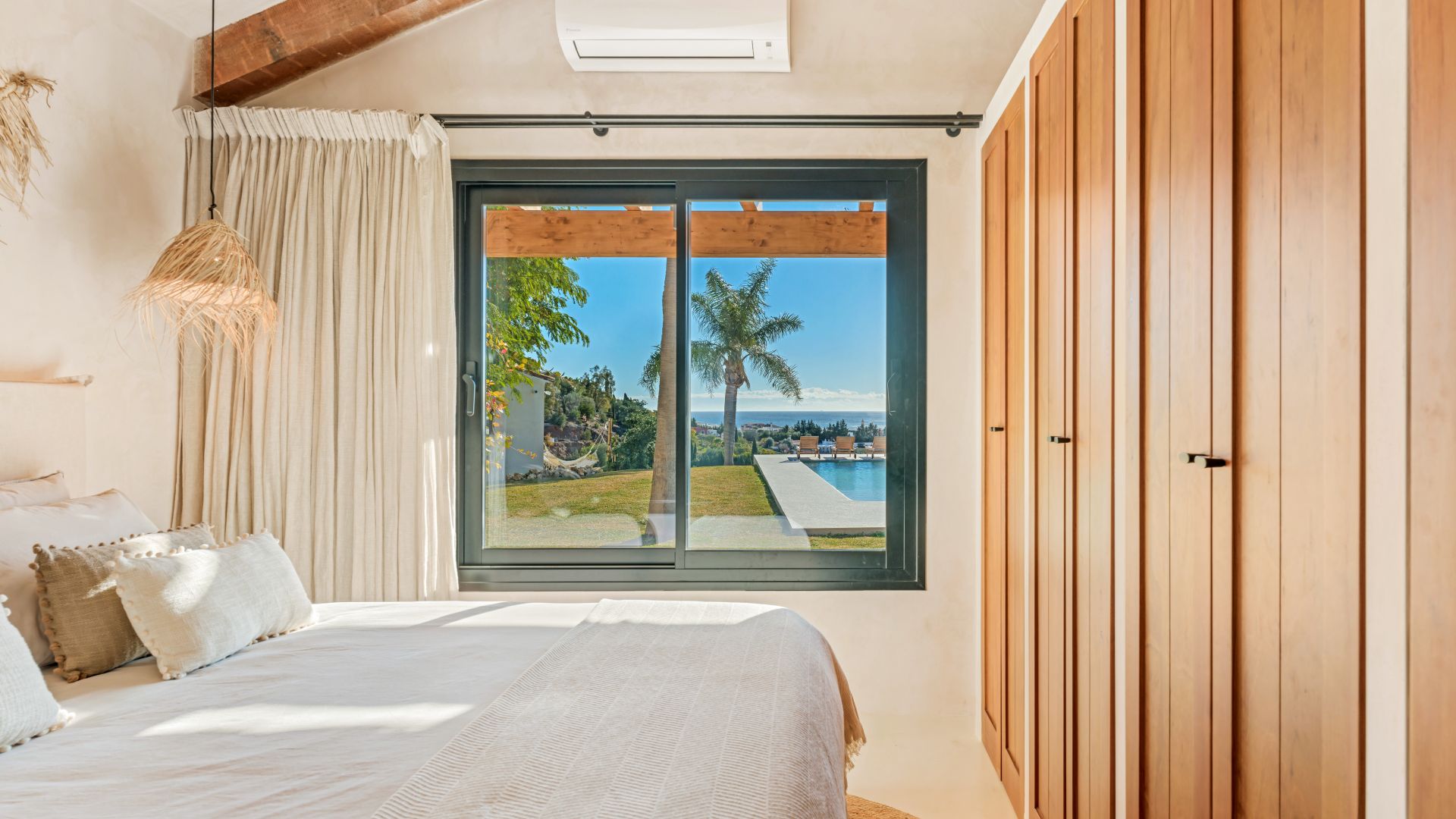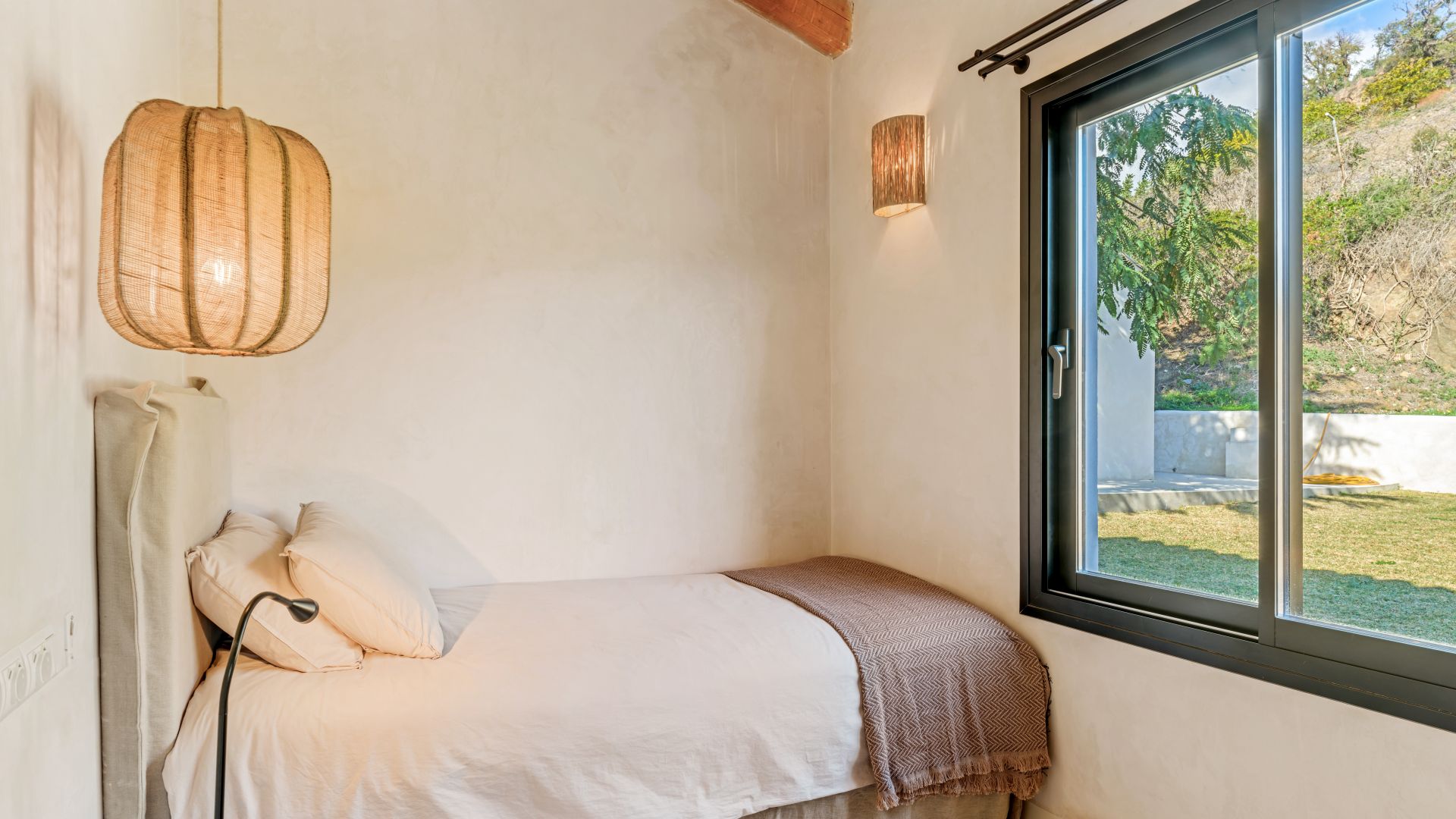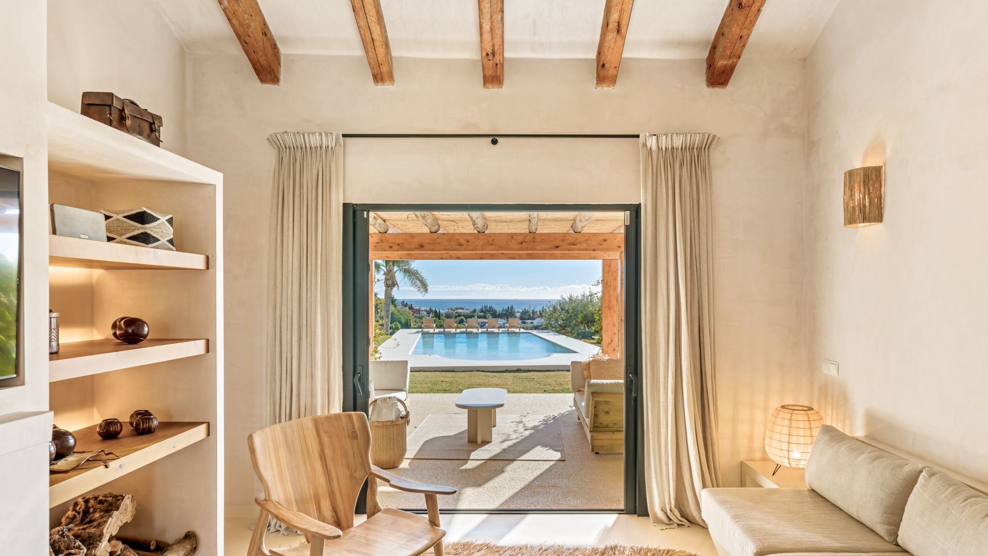 Escondido en las montañas detrás del centro histórico de Estepona, esta joya ofrece un entorno y ubicación ideales. Esta espectacular propiedad cuenta con vistas panorámicas al mar y a la impresionante Sierra Bermeja. Situada a solo 2 km del centro histórico y del paseo marítimo, ofrece total privacidad y está rodeada exclusivamente de naturaleza en una gran parcela de 3058m2 orientada al sureste.