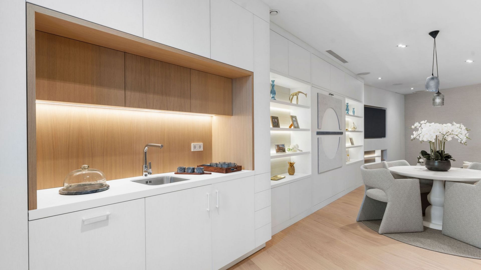 Desciende al sótano de esta lujosa casa familiar y descubre un inesperado oasis de relajación y entretenimiento.