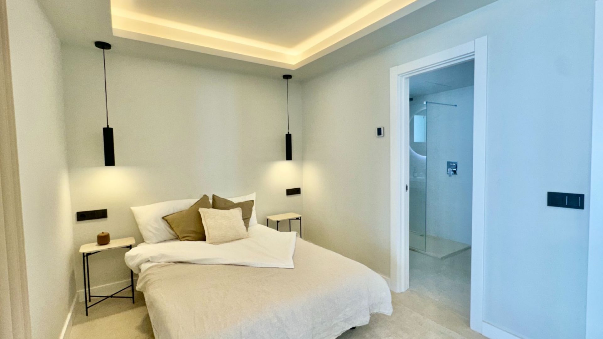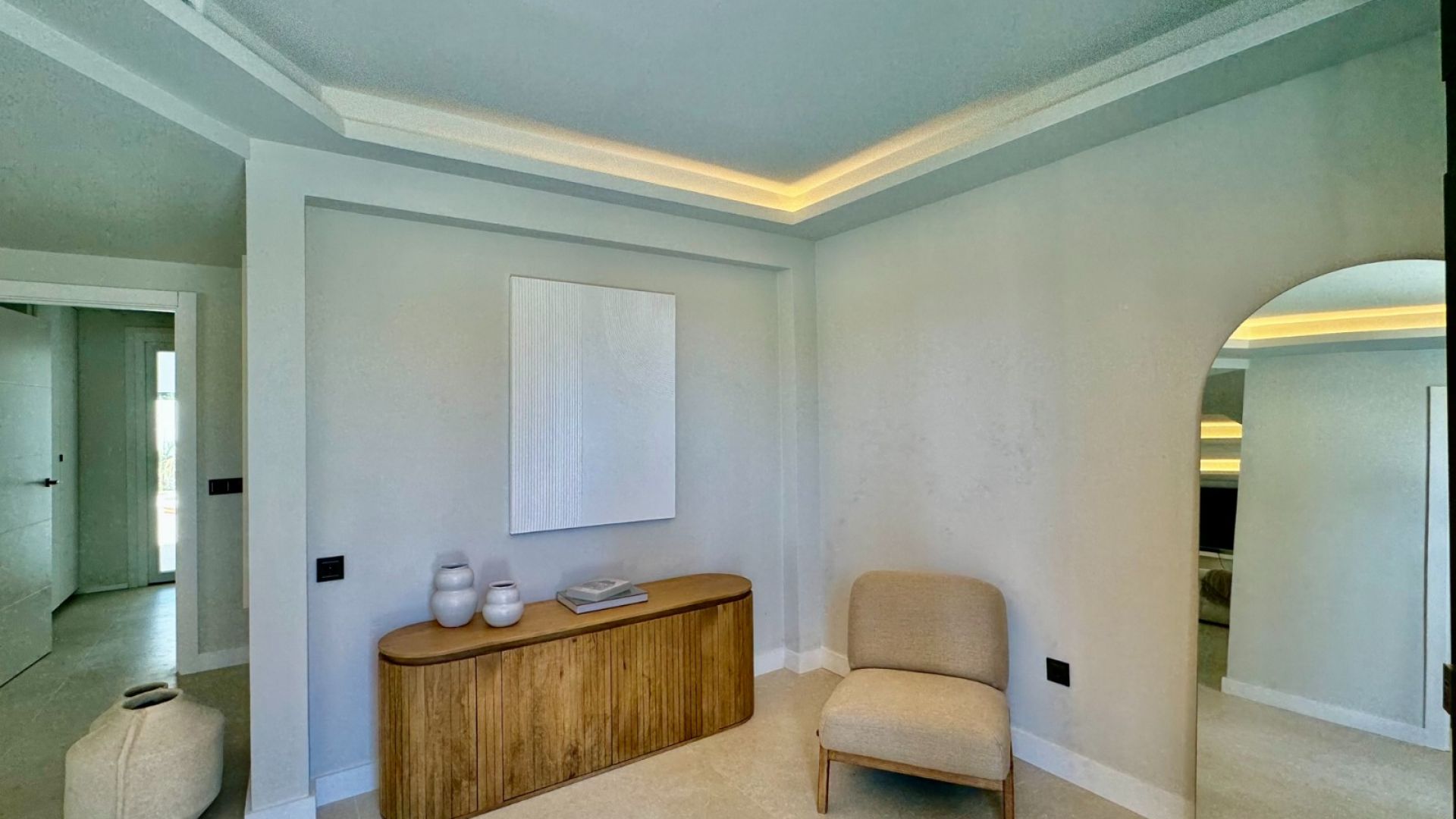 Vive una experiencia de lujo en esta villa recién construida, a solo unos pasos de la playa! Esta fantástica propiedad cuenta con 5 amplios dormitorios, cada uno con su propio baño en suite, además de un aseo de cortesía en la sala de estar y otro en la zona de la piscina. También hay una casa de invitados independiente con un baño adicional, perfecta para el personal. El aparcamiento privado tiene espacio para 4 coches y 1 motocicleta.