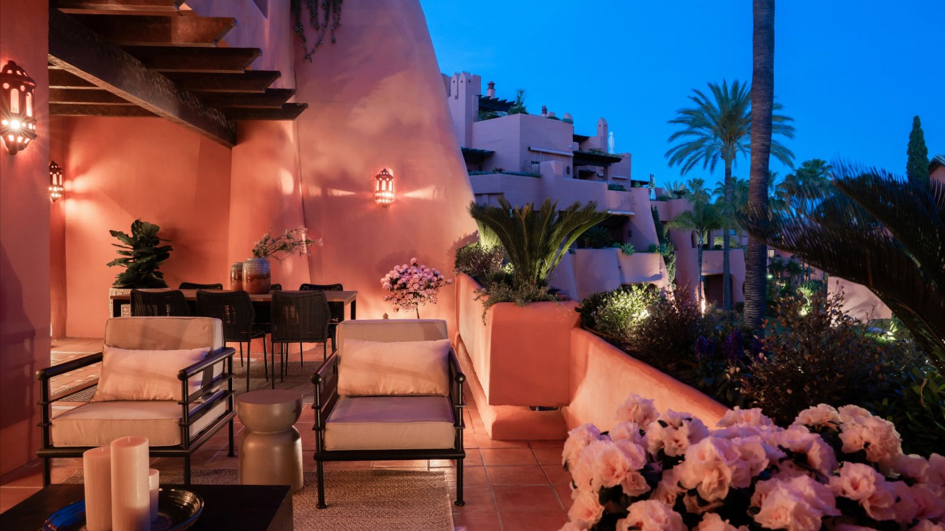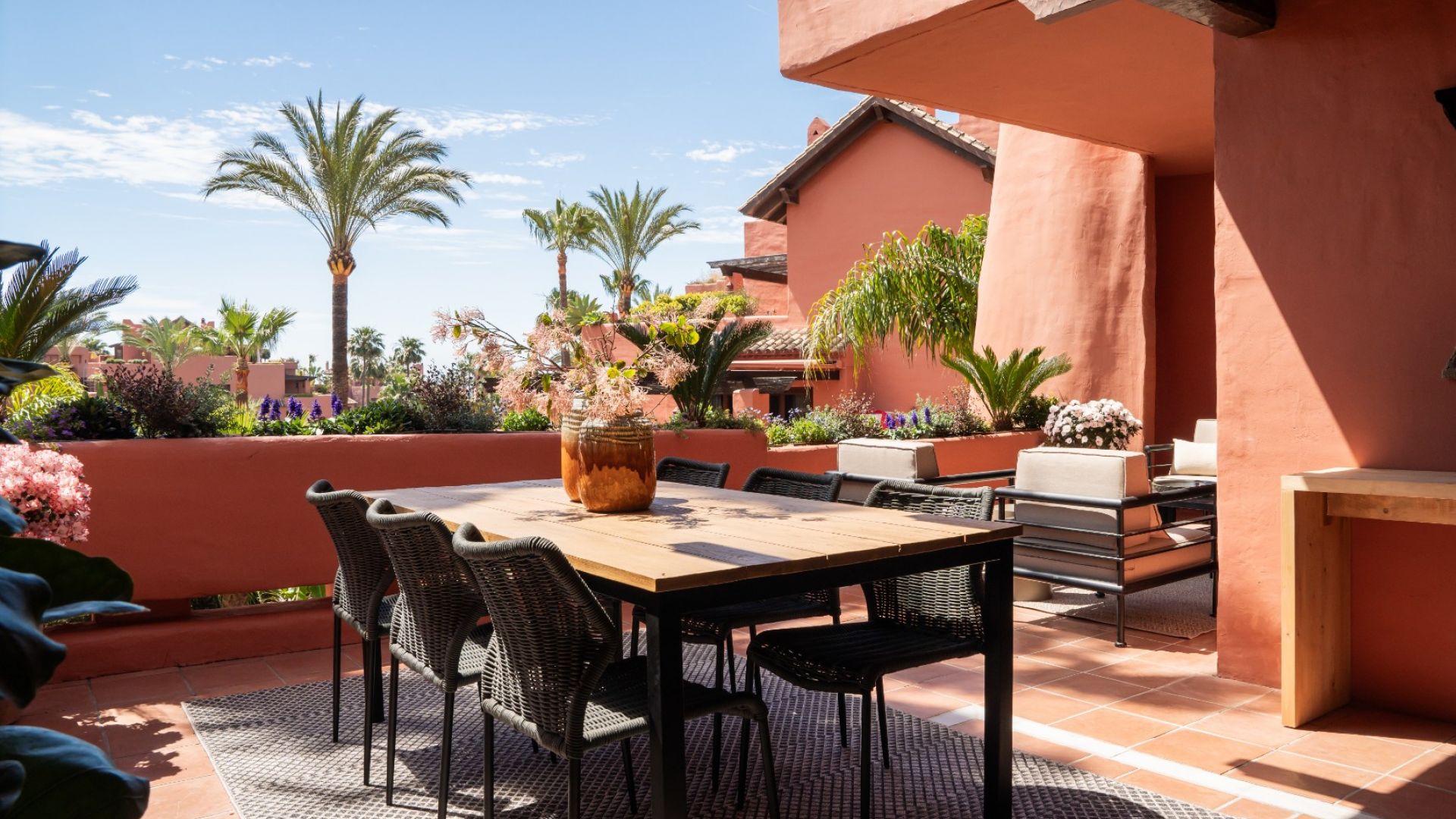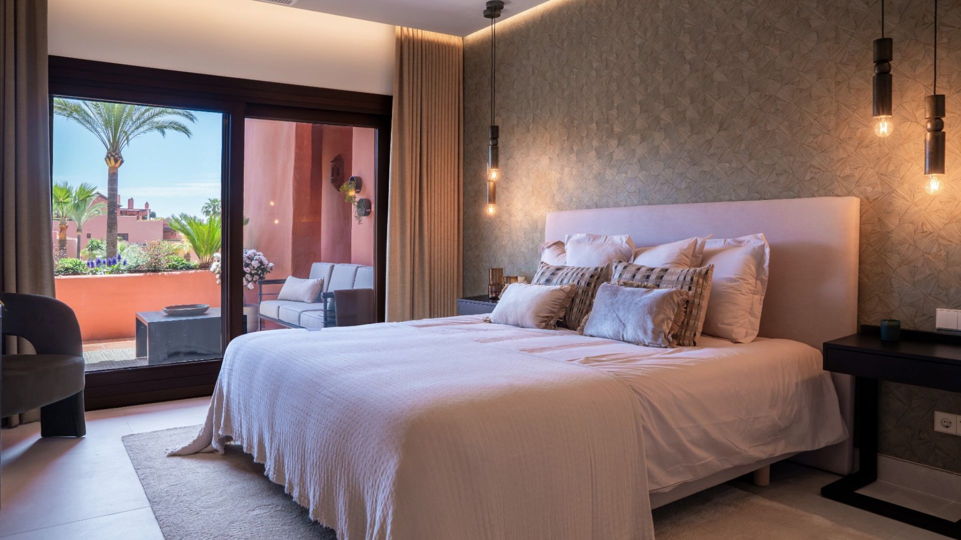Este espectacular apartamento de 3 dormitorios se encuentra en la exclusiva comunidad frente al mar de Torre Bermeja, en la Nueva Milla de Oro de Estepona.