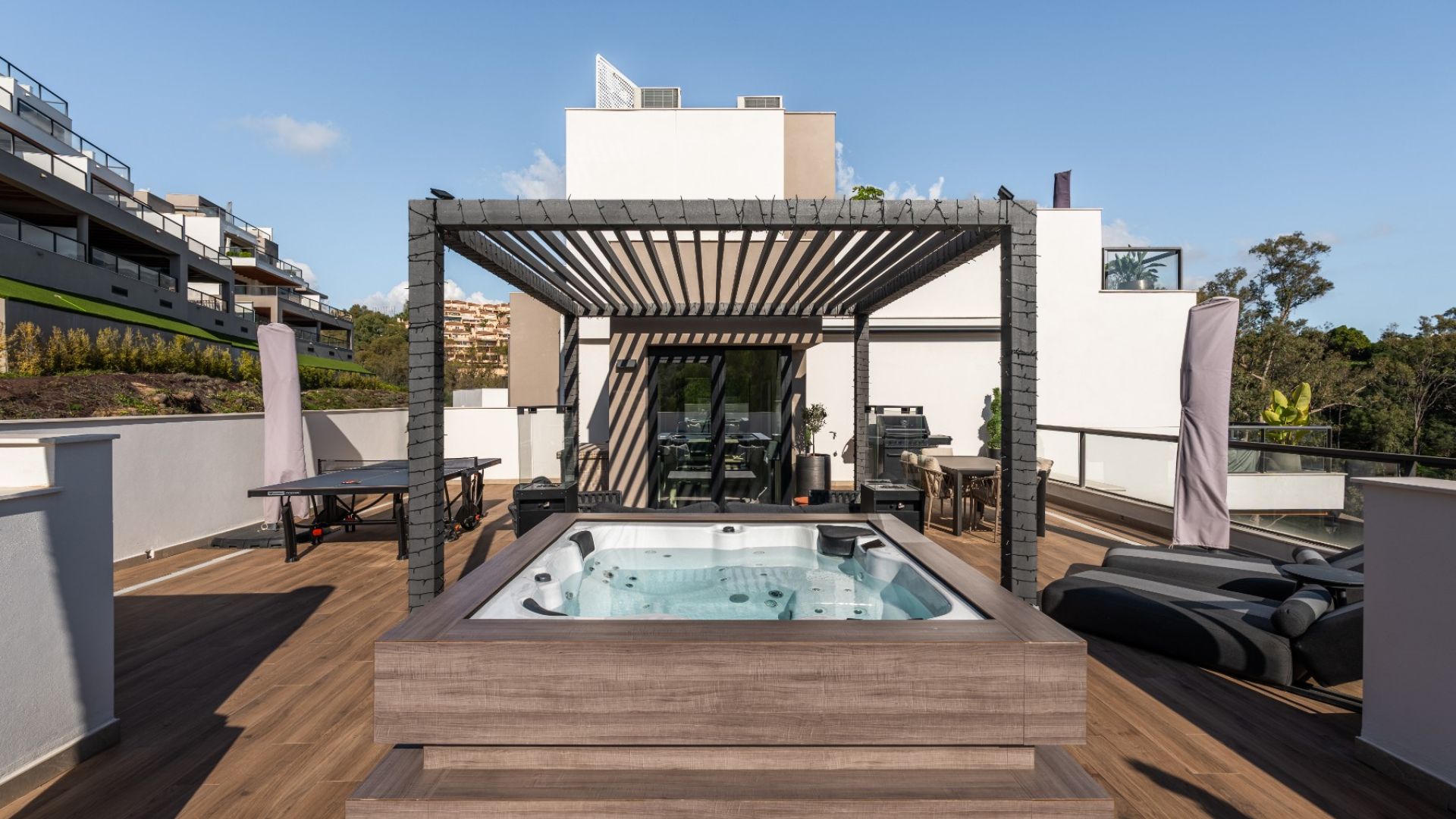 El punto culminante es la amplia terraza en la azotea, equipada con área de BBQ, jacuzzi, asientos para comer y descansar, e incluso una mesa de ping pong, perfecta tanto para la relajación como para el entretenimiento.