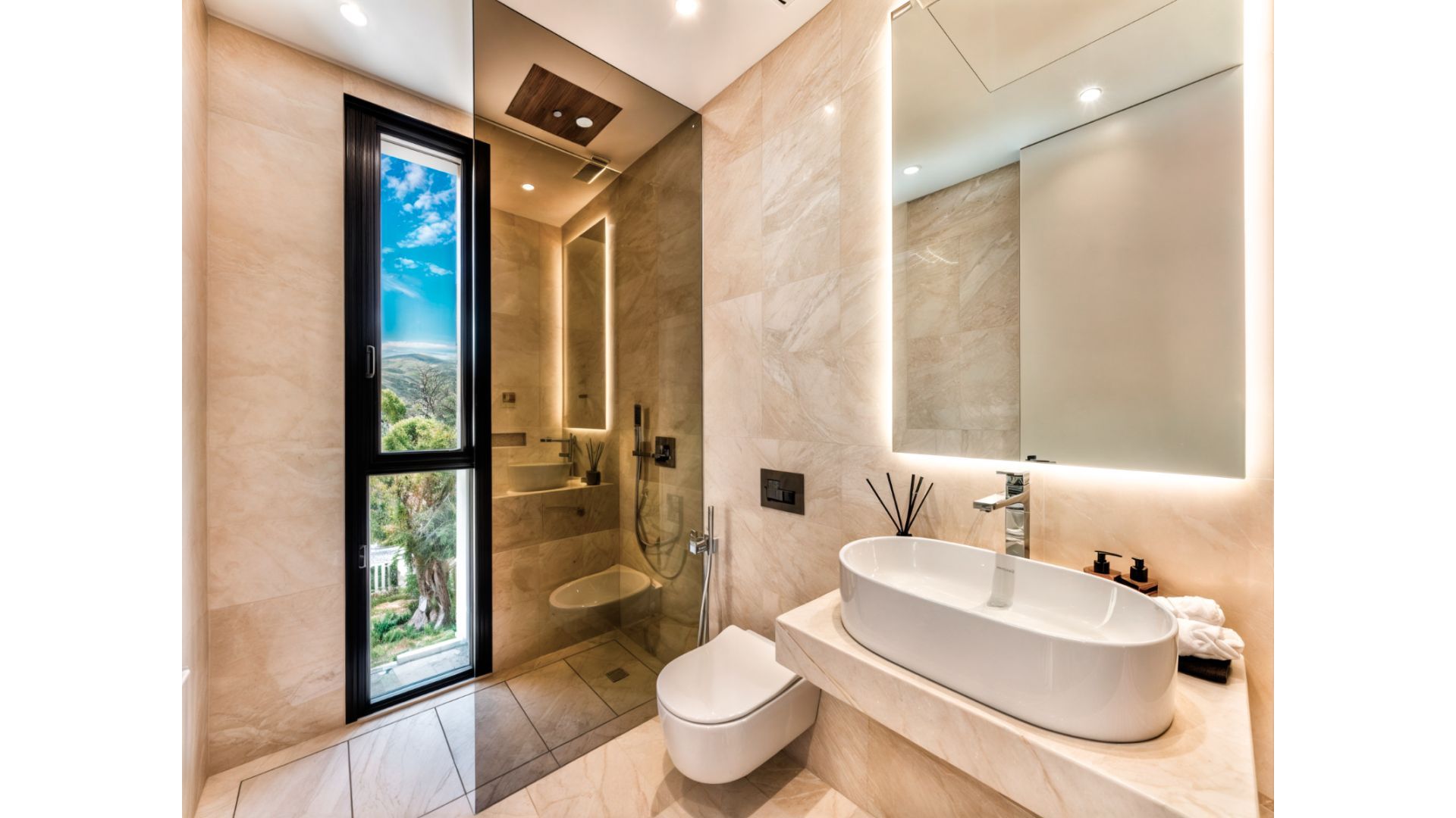 Las villas se distribuyen en tres niveles y un solárium, con seis dormitorios, un amplio salón con chimenea, cocina totalmente equipada con isla a medida y acceso a terrazas y jardín. En la planta superior, tres dormitorios con baños en suite y vestidores, mientras que el sótano incluye aparcamiento para tres coches, un apartamento para el personal y dormitorios adicionales para invitados.