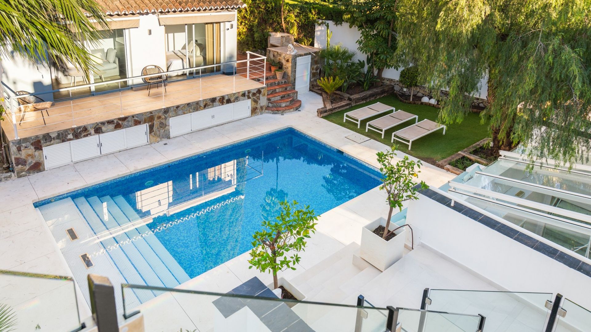 Prepárese para impresionarse con esta villa que combina a la perfección diseño moderno, flexibilidad y características de lujo. Situada en un vecindario tranquilo y consolidado en la parte baja de Nueva Andalucía, esta propiedad ofrece la mezcla ideal de serenidad y comodidad, con tiendas, restaurantes y servicios esenciales a tan solo unos minutos a pie.