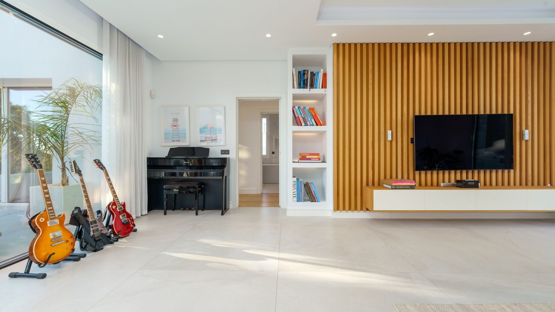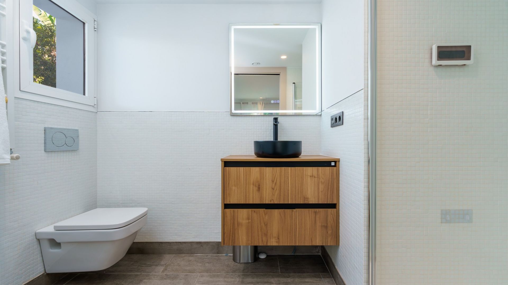 En la planta superior, encontrará un espacio adicional de estar, un dormitorio para invitados con vestidor y baño en suite, y una lujosa suite principal con un gran vestidor y un elegante baño en suite. Desde este nivel, se puede acceder a la impresionante terraza-solárium, que ofrece vistas al mar impresionantes, varias zonas de relax y solárium, perfectas para relajarse o para entretener a los invitados.