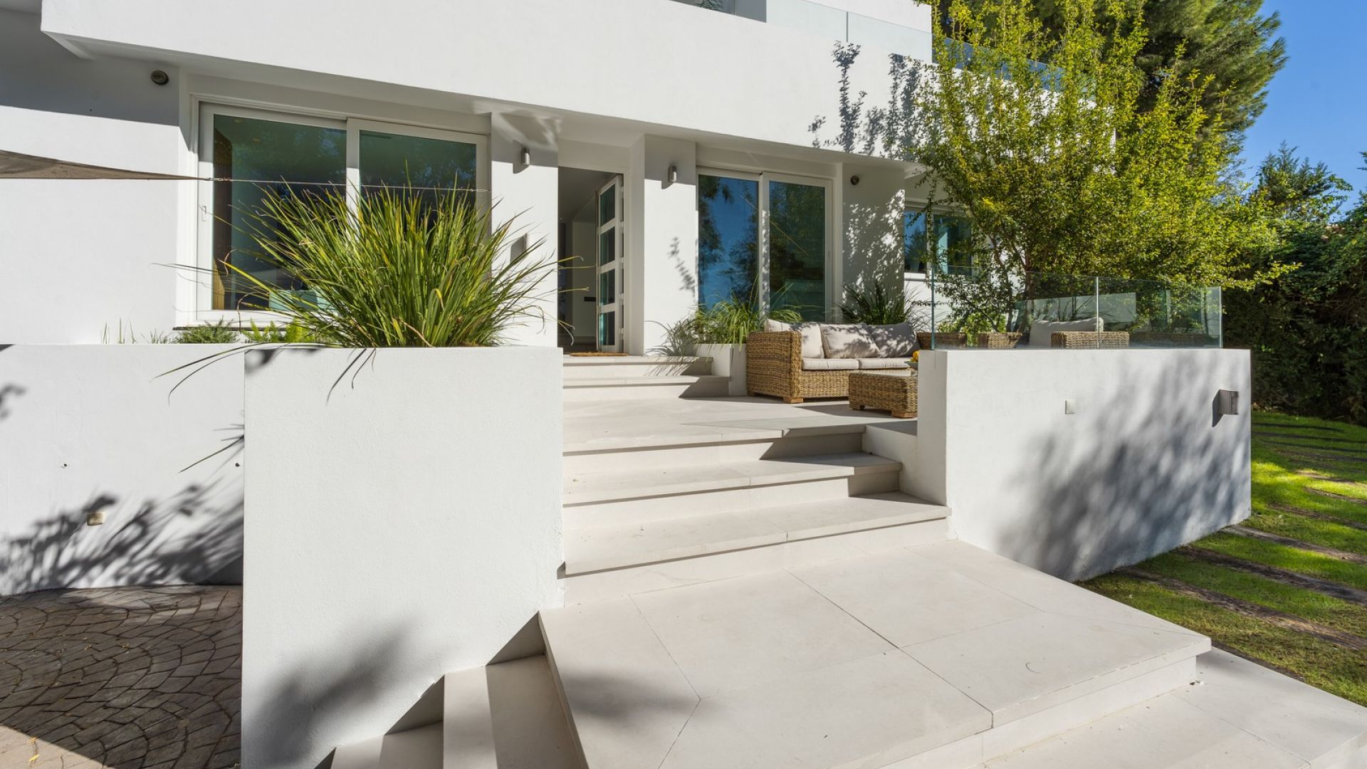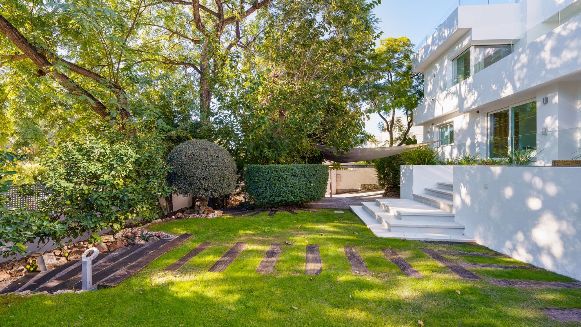 Originalmente construida en la década de 1970, la casa principal ha experimentado una transformación completa. Ha sido renovada y ampliada cuidadosamente, incluyendo un segundo piso, un espacioso solárium y una encantadora casa de invitados. La privacidad y la ubicación son las características más destacadas de esta propiedad. La planta baja cuenta con un diseño contemporáneo de concepto abierto, con una amplia sala de estar y comedor, junto a una cocina completamente equipada de alta gama. Este nivel también incluye tres dormitorios en suite y un aseo para invitados.