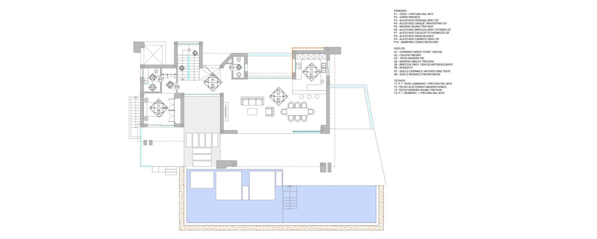 The villa’s design features clean, simple lines, spacious interiors, high-quality materials, and a seamless blend of indoor and outdoor spaces. On the first floor, an open-plan layout combines a spacious living room and dining area, extending to a large terrace with an outdoor barbecue and a fully equipped stylish kitchen by the infinity pool. This floor also includes a versatile en-suite bedroom, perfect for a study or guest retreat.
