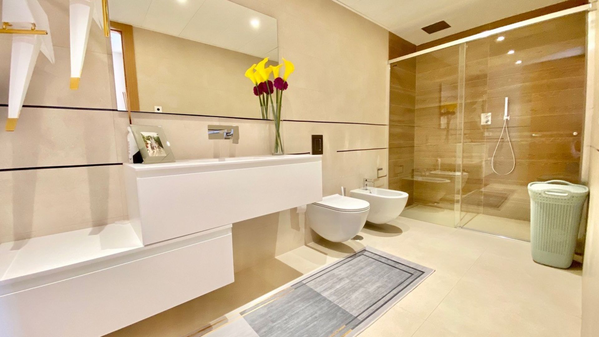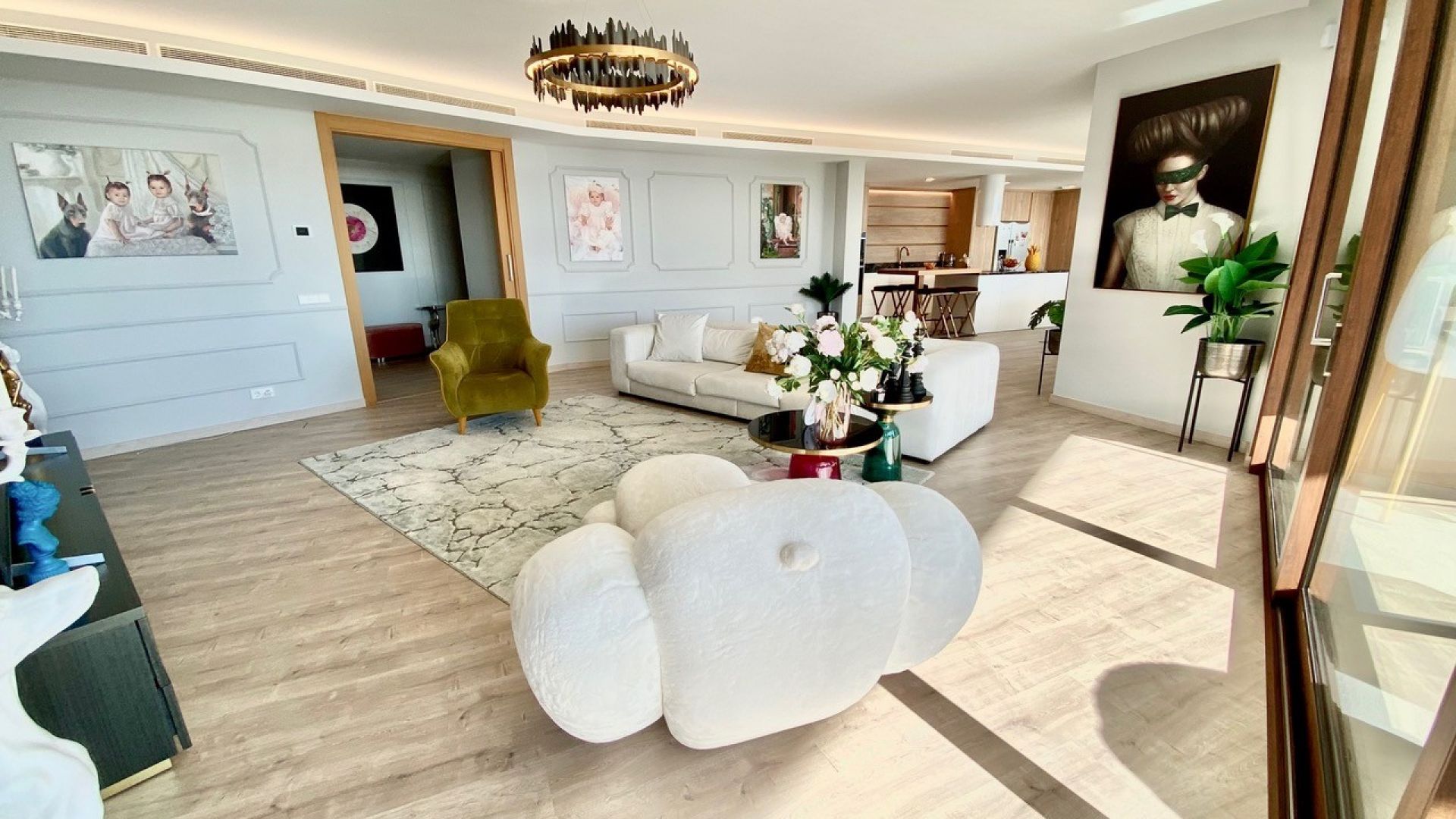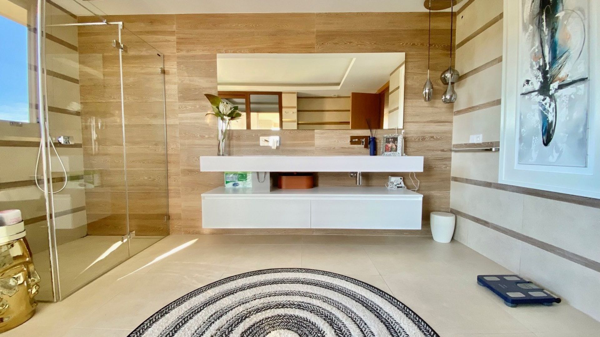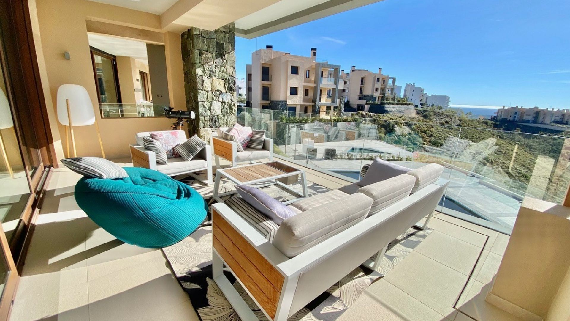 Luxurious and spacious 4-bedroom middle floor apartment in Olivos, La Quinta, Benahavís. This unique property combines two apartments into one expansive living space, offering 4 bedrooms, 4 bathrooms, and a large terrace with stunning panoramic views of the sea, golf courses, mountains, and La Concha. The south-southwest orientation ensures plenty of natural light throughout the day.