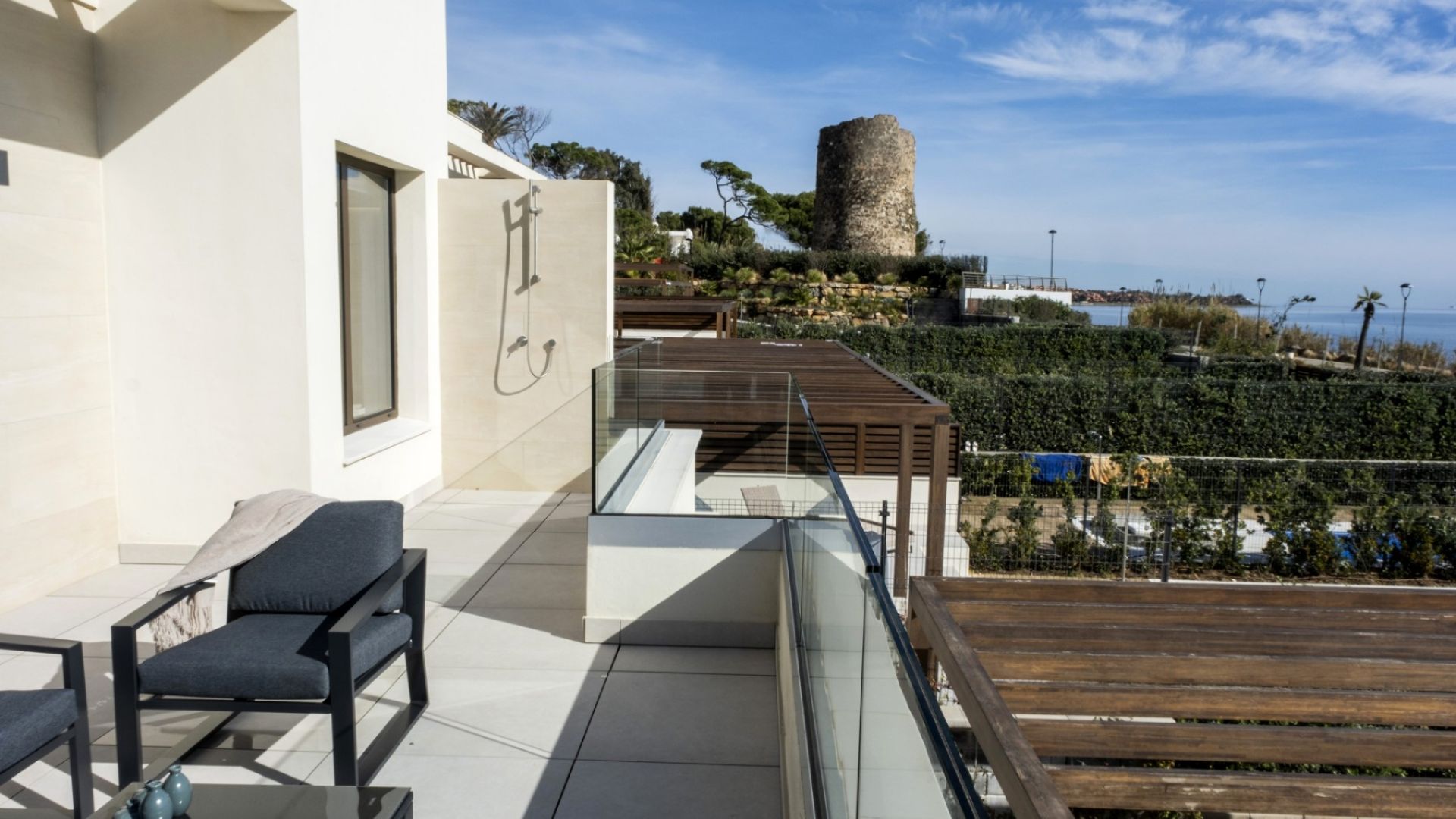 Experience luxury at its finest with this stunning, newly built beachfront villa for sale in the prestigious gated community of Velaya, located on Estepona’s New Golden Mile. This villa, with its south/southwest orientation, offers stunning views of the Mediterranean Sea and direct access to the beach and promenade, perfect for those who value both elegance and serenity.
