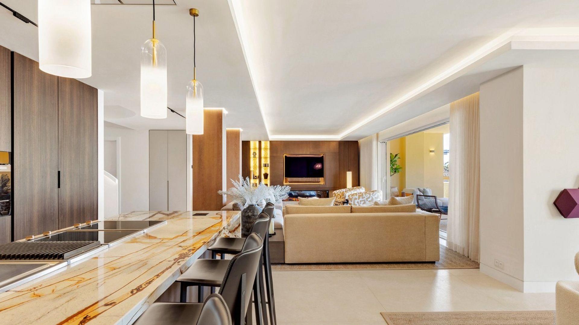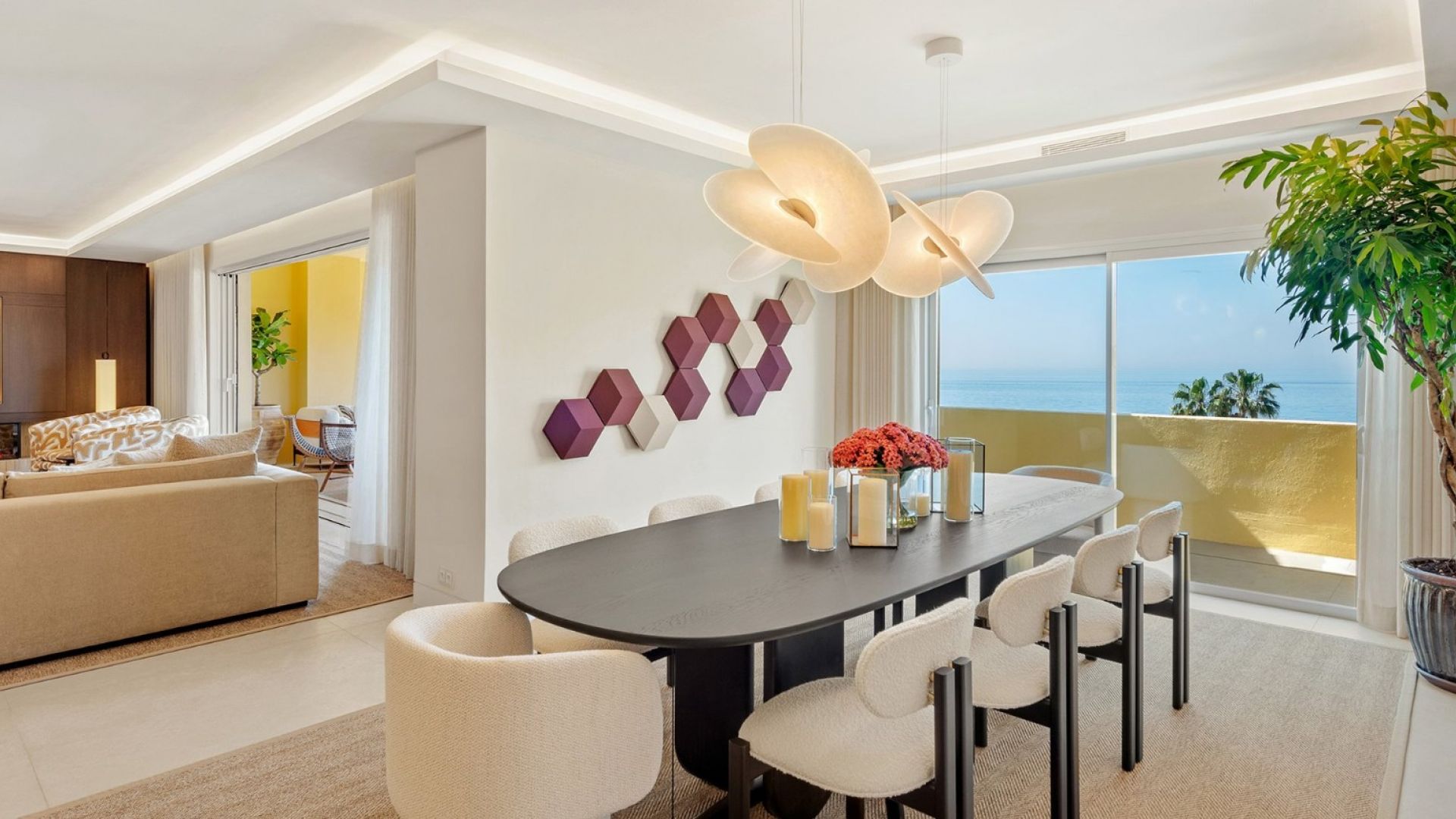 Welcome to La Playa Penthouse, a spectacular duplex located in Rio Real Playa, Marbella, offering stunning panoramic sea views across two levels. Positioned next to one of the area's most beautiful sandy beaches, this recently remodeled 4-bedroom, 5-bathroom home spans 200m² of interior space, plus an additional 56m² of terrace, creating the perfect blend of spacious luxury and coastal living.