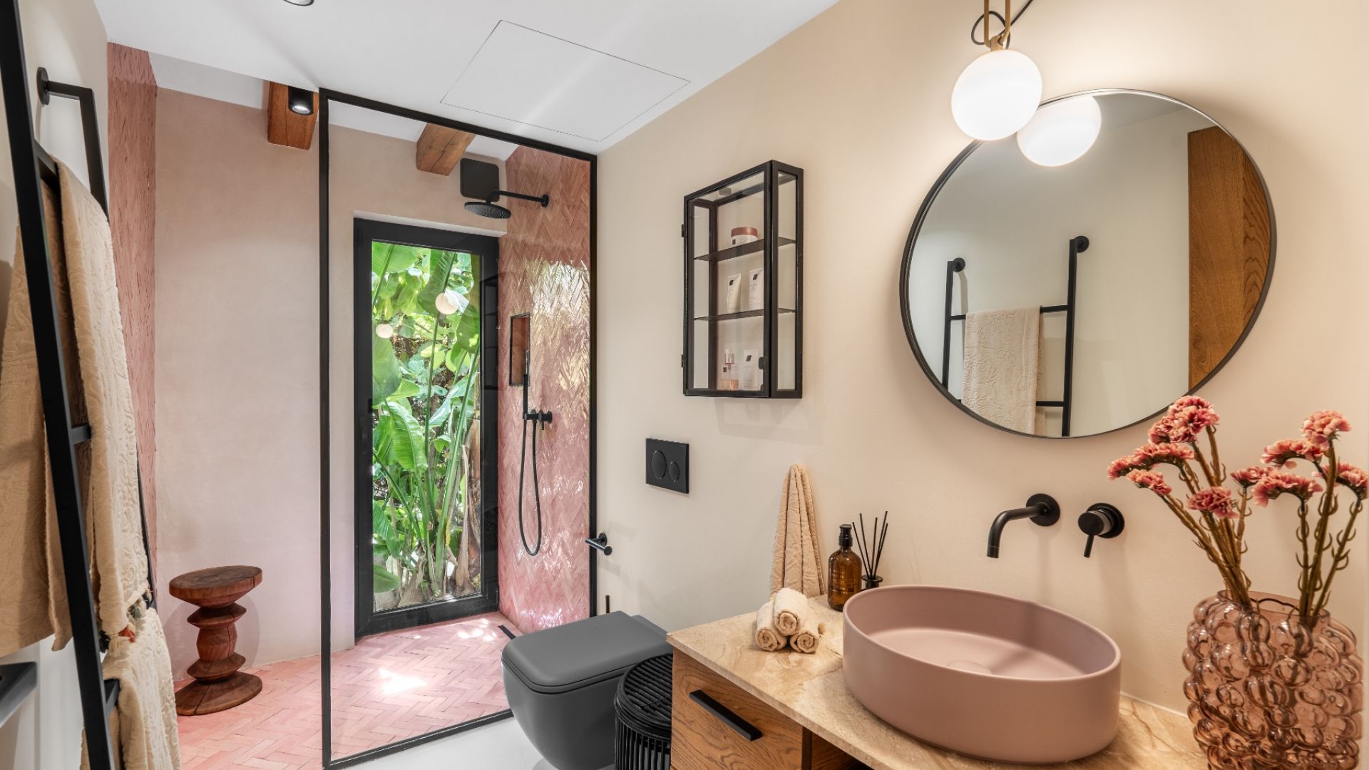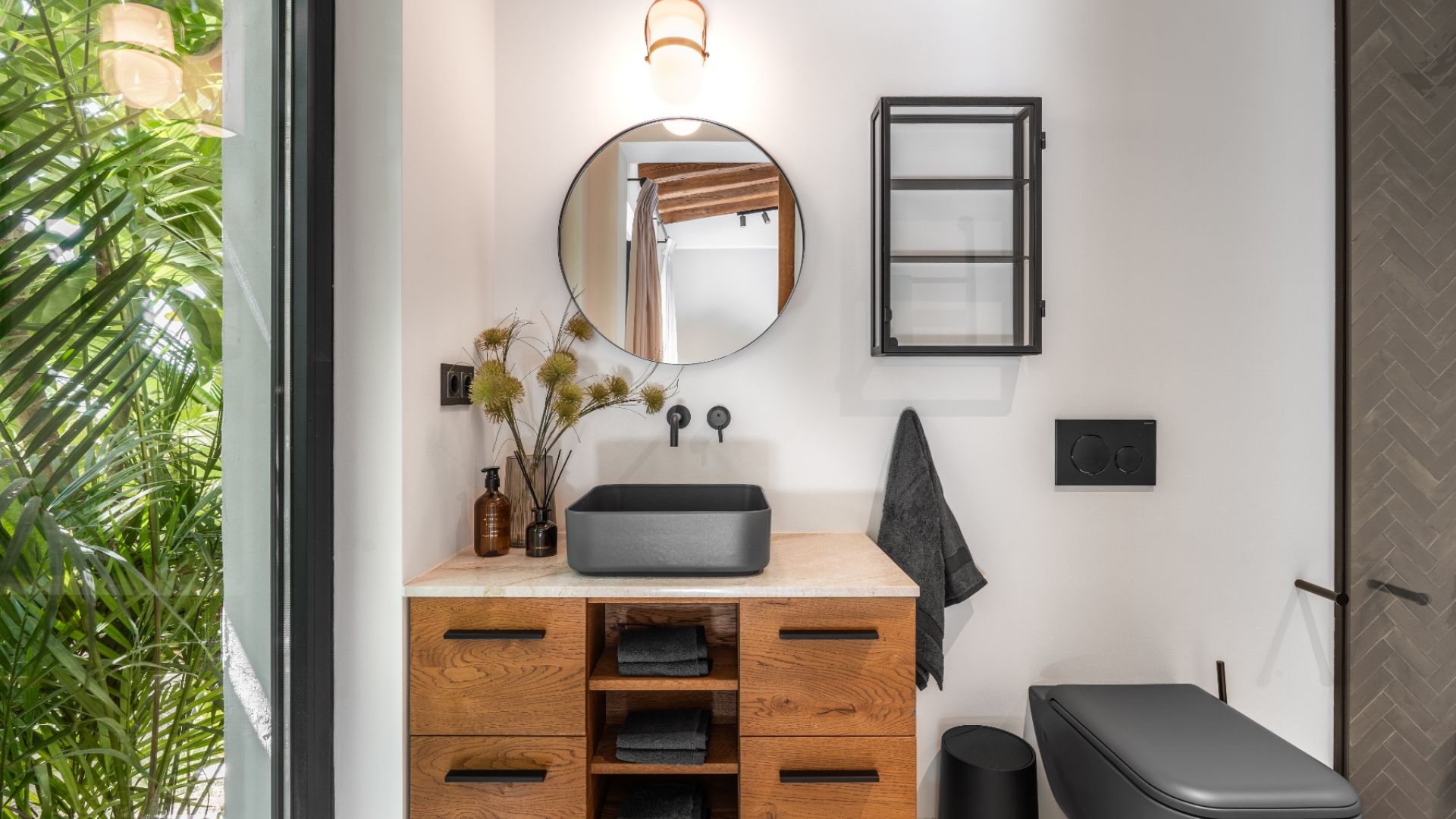 Outdoor spaces include a deck, pergola with an outdoor kitchen, and jacuzzi. The basement offers a cinema room, guest bedroom, and laundry. With home automation, solar panels, aerothermal technology, and 24-hour security, the villa also includes a pre-installed garage for electric vehicles.