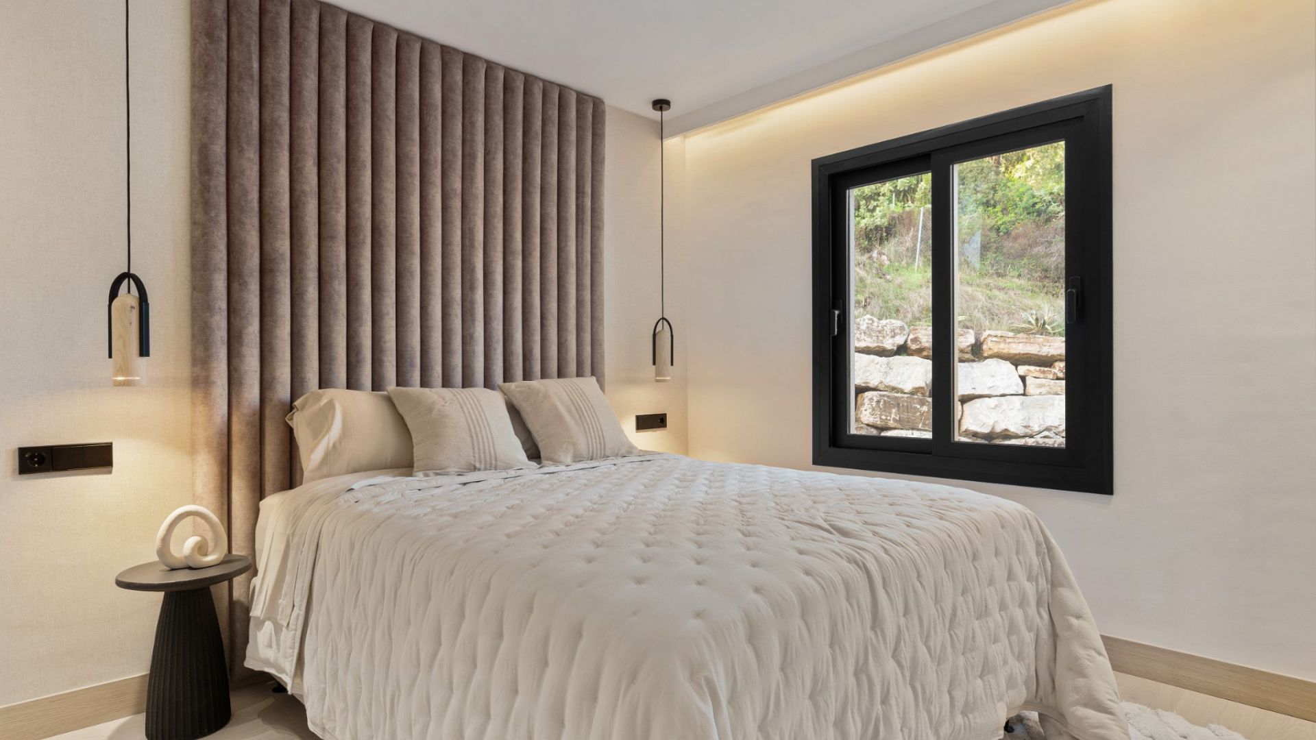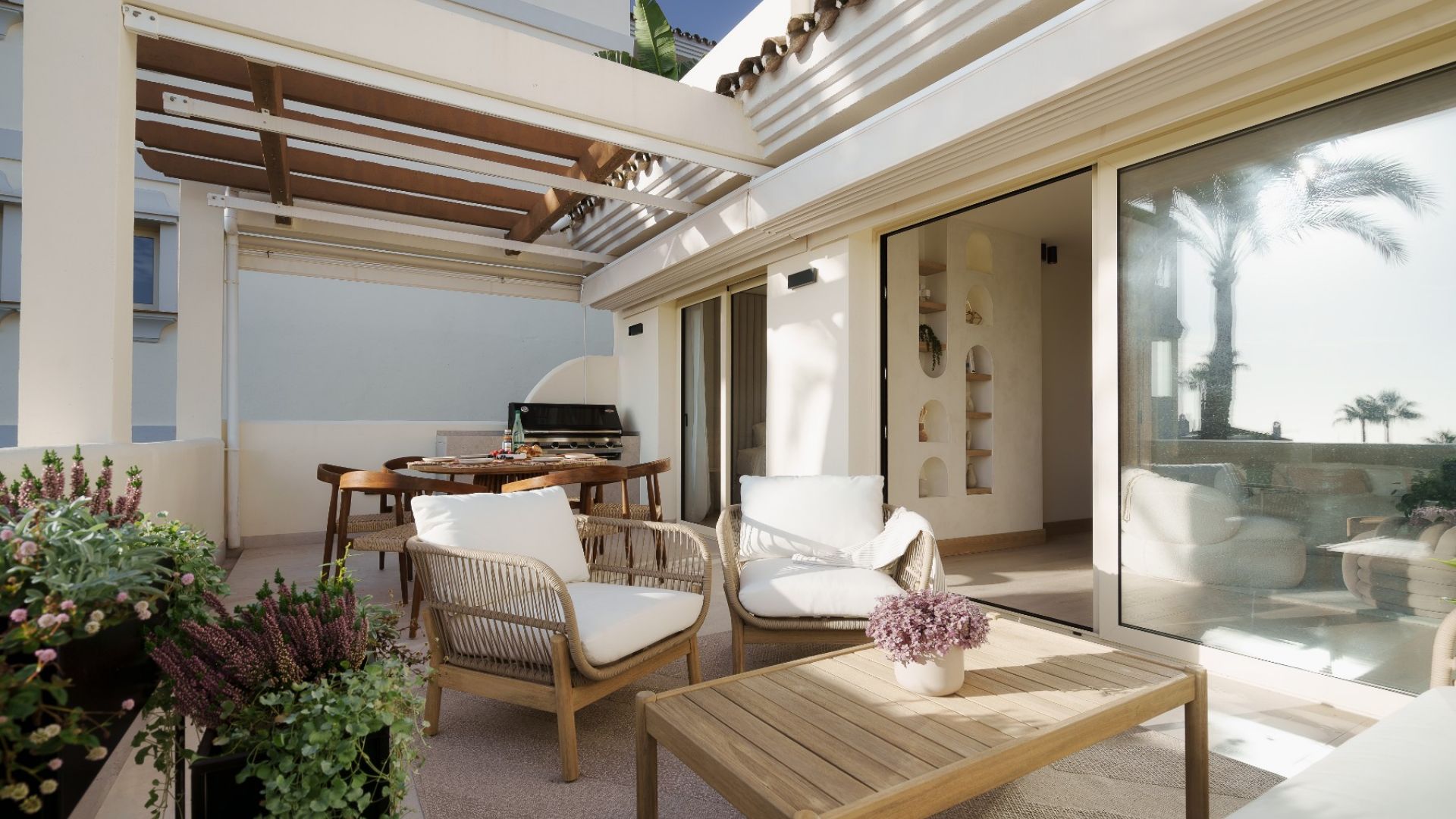 Casa Moah, located in the prestigious La Cerquilla area of Nueva Andalucía, is a modern three-bedroom apartment in the gated Los Belvederes community. Completed in 2024 by a renowned architect, it combines contemporary design with luxury and privacy, offering panoramic views of the Mediterranean Sea and mountains.