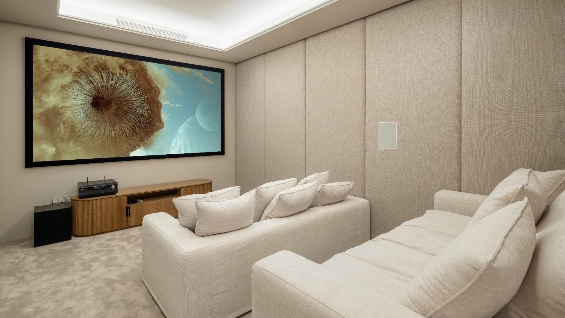 The basement offers a fully equipped techno gym, sauna, steam room, and a second living area with natural light, creating an ideal space for relaxation and entertainment. This area also includes a bar with a stone-wall backsplash, a home cinema, and additional bedrooms, making it versatile for various activities.