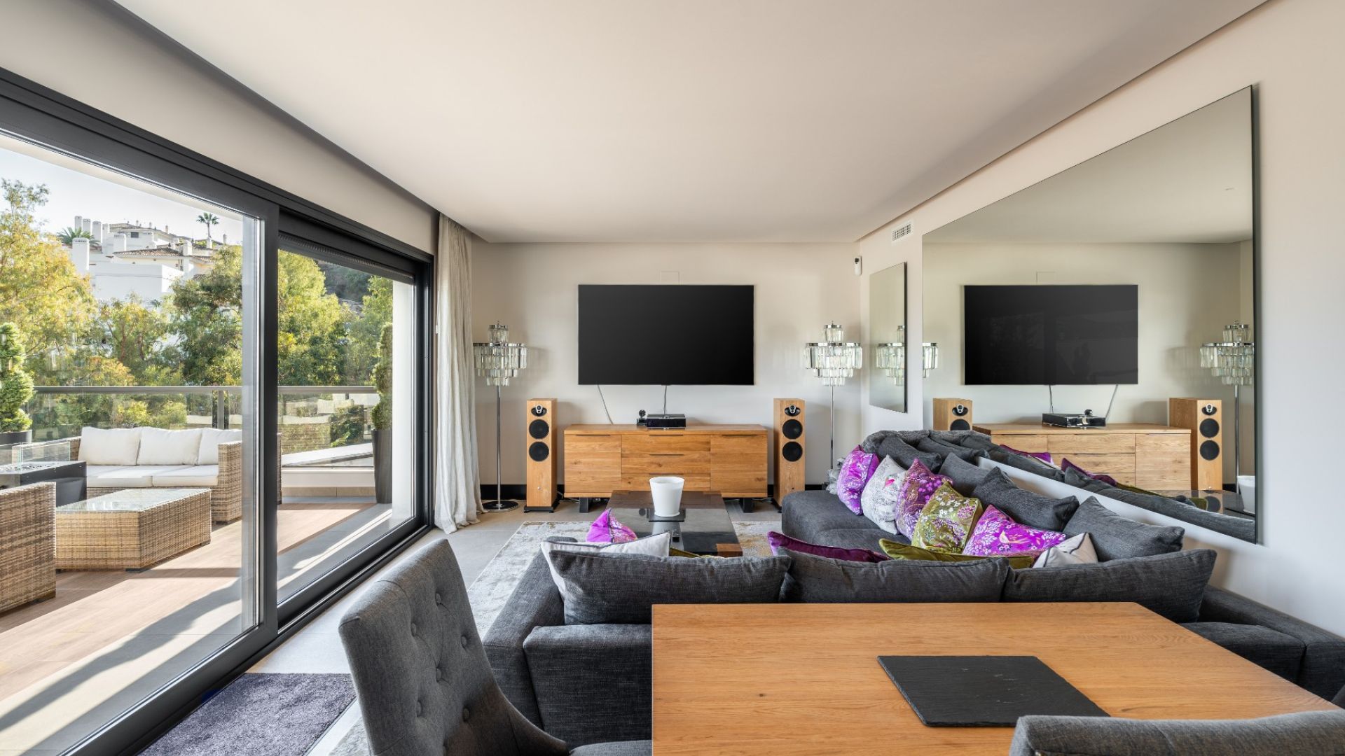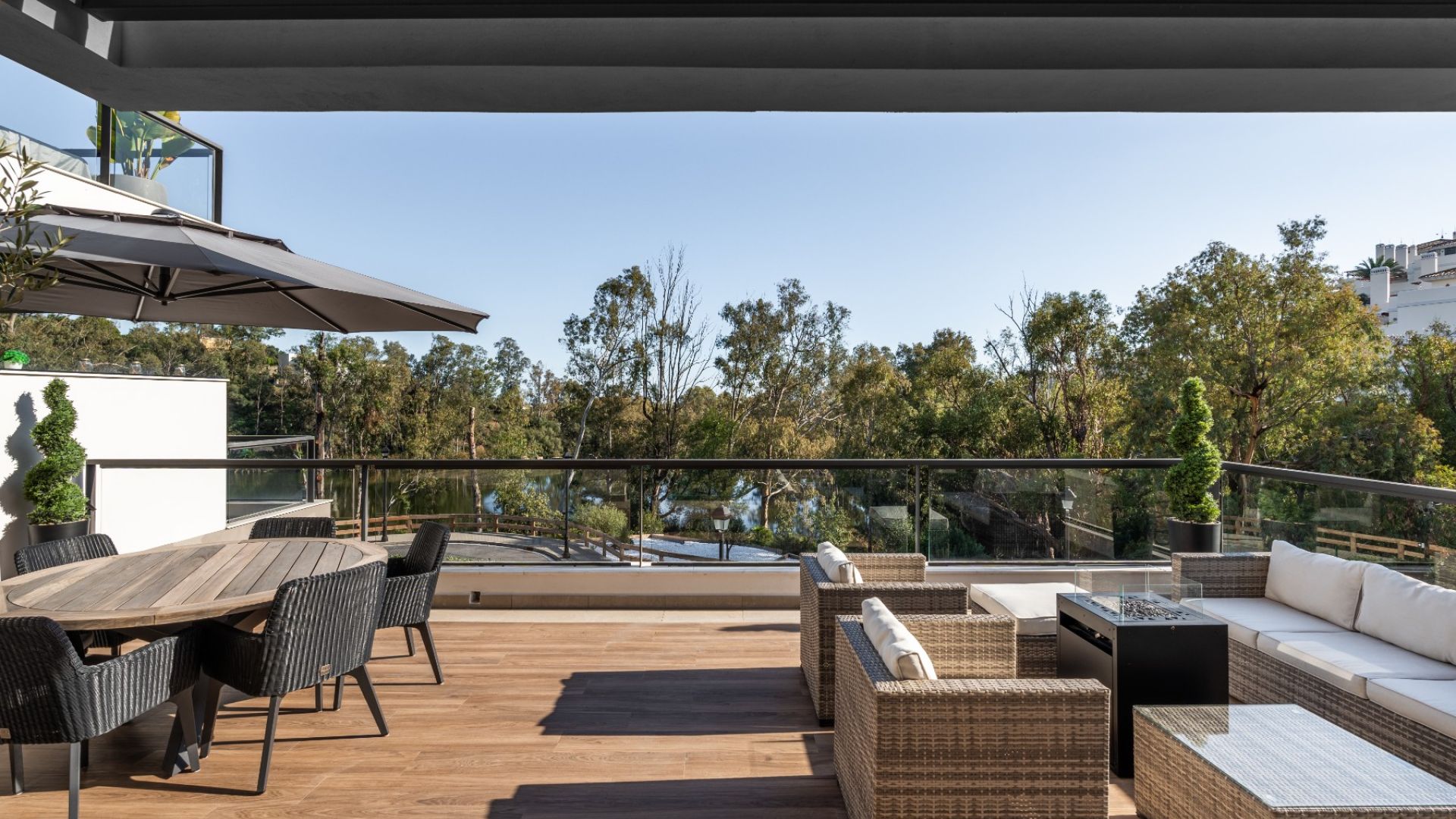 Welcome to this stunning 3-bedroom, 2-bathroom apartment in the heart of Nueva Andalucía. With panoramic views of the lake, mountains, and partial Mediterranean glimpses, this property offers a unique living experience.