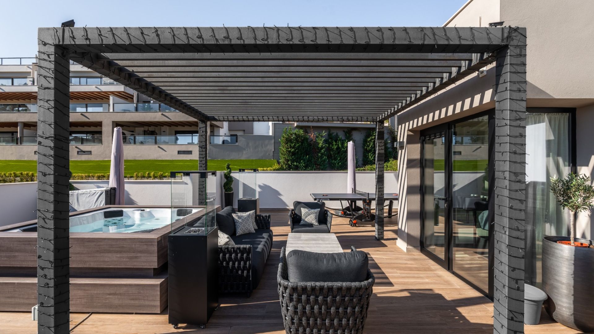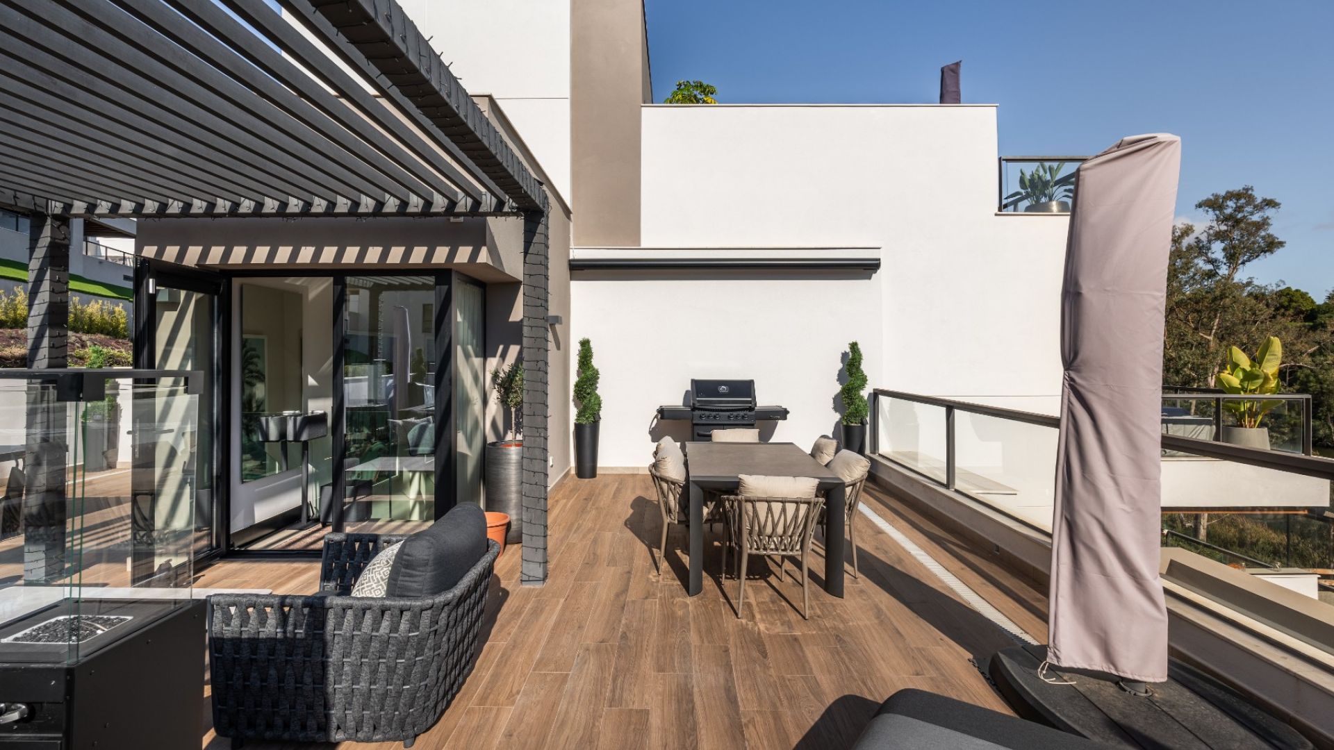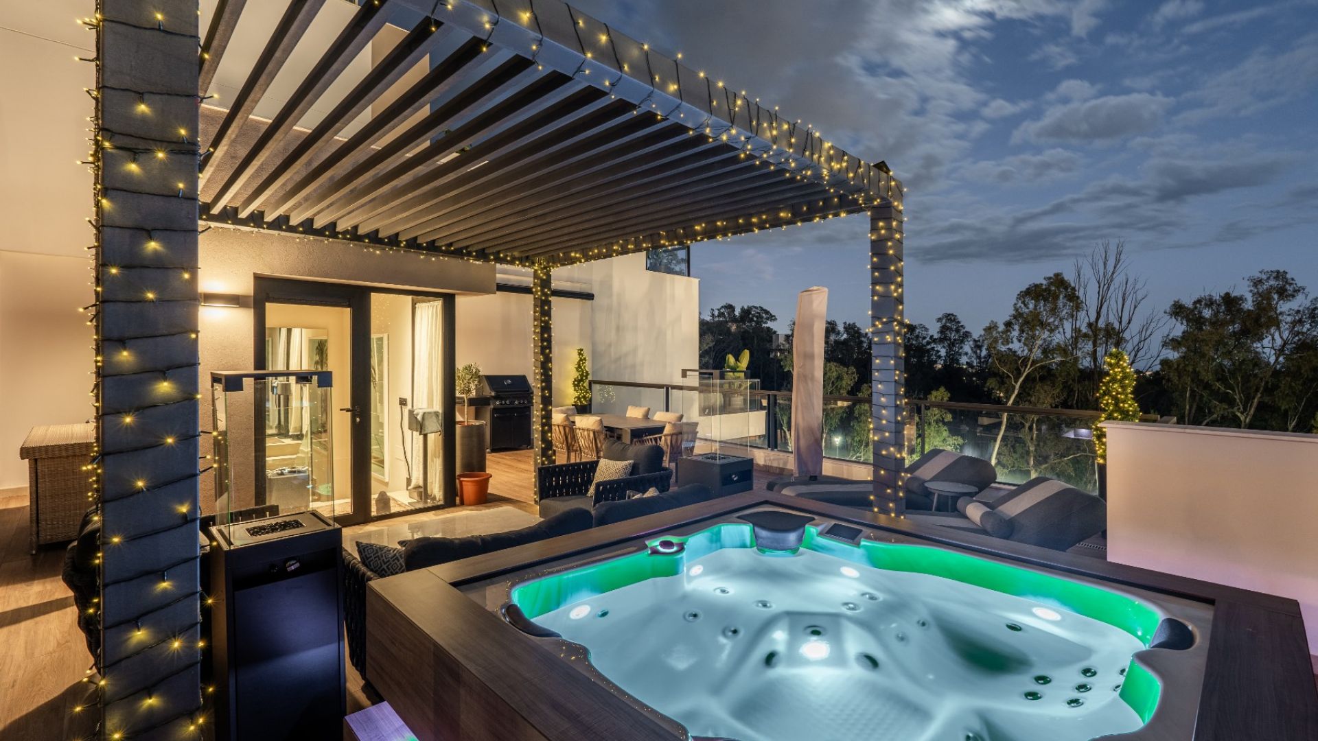 The highlight is the expansive rooftop terrace, complete with a BBQ area, jacuzzi, seating for dining and lounging, and even a ping pong table—ideal for both relaxation and entertaining.