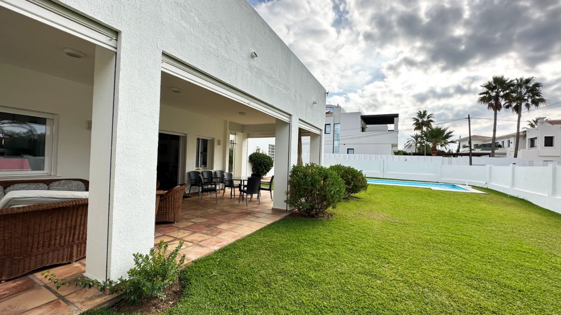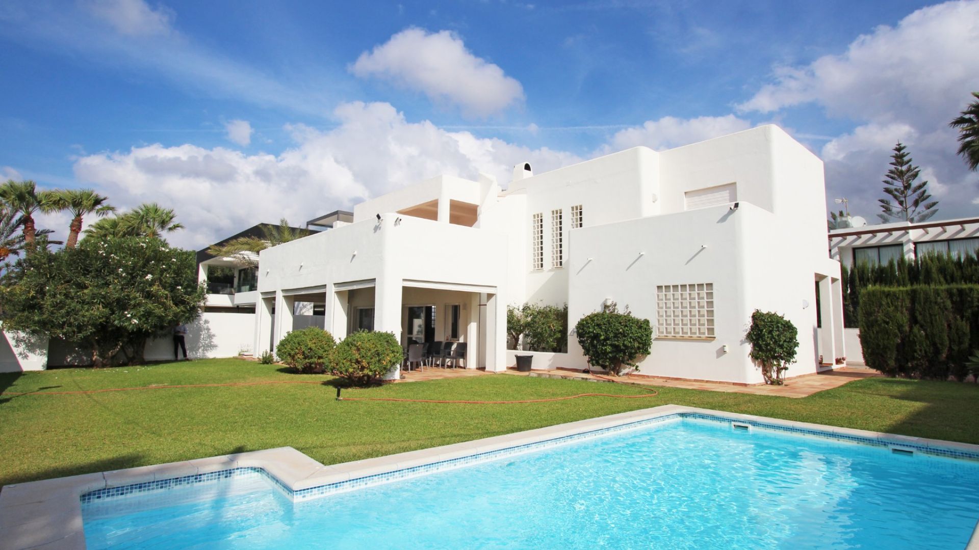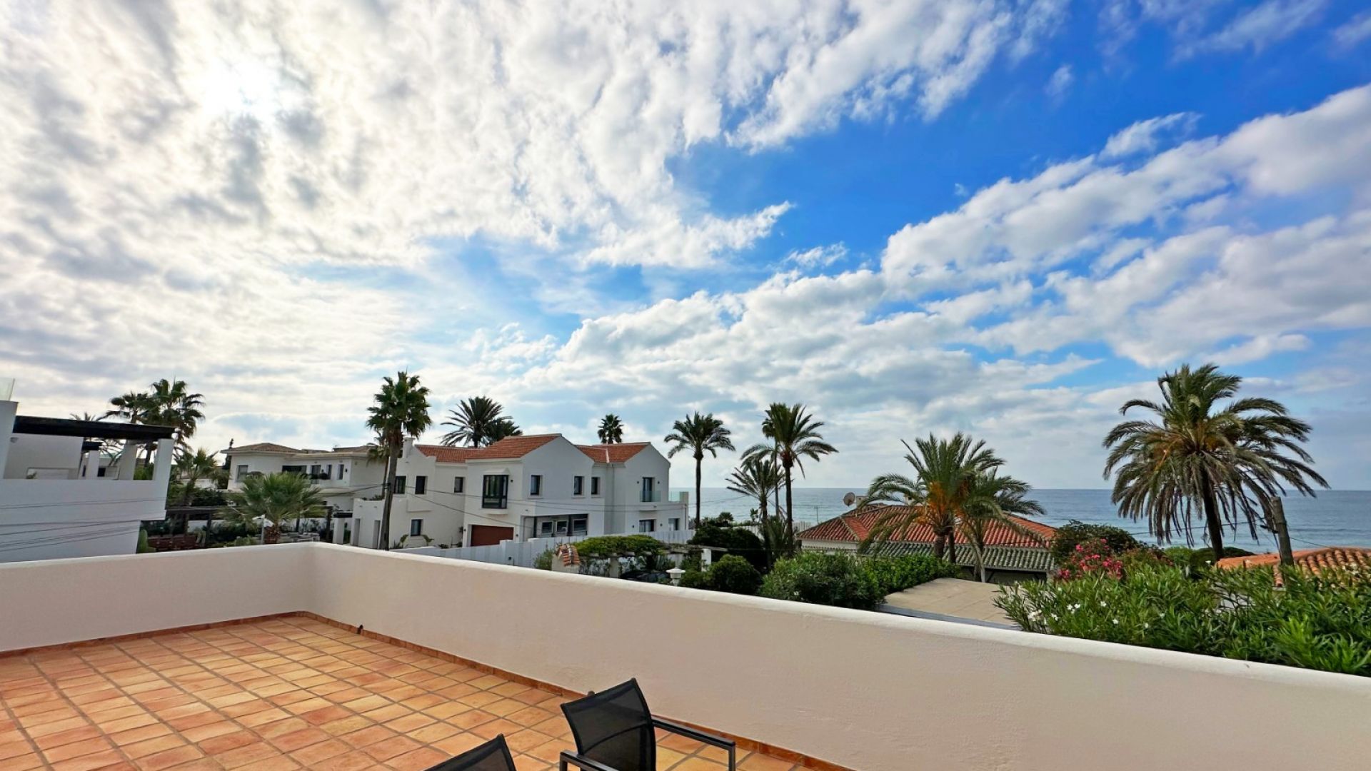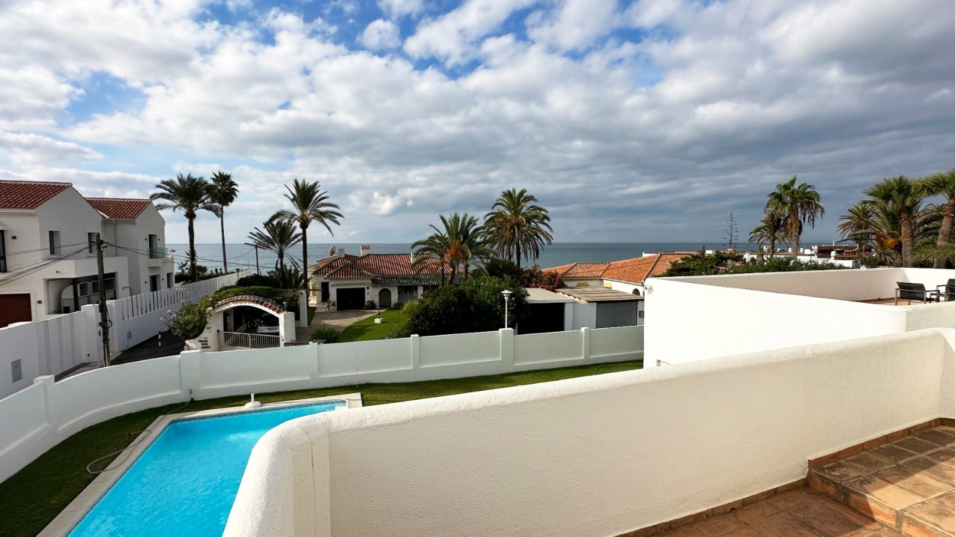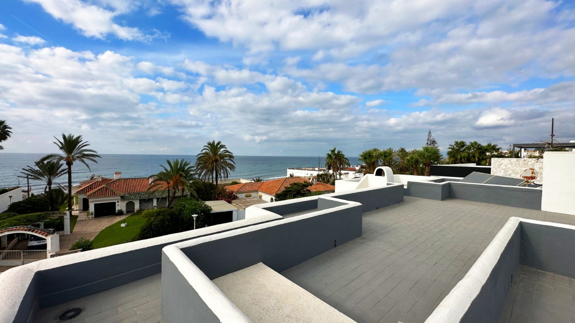 A highlight of this property is the solarium, a rooftop terrace with immense potential. From here, you'll enjoy panoramic views of the sea—a perfect place to unwind with friends or family, taking in the sea breeze, the sound of the waves, and the relaxed Marbella lifestyle. The property also boasts a generous garden with a lovely swimming pool, creating an inviting space for gatherings. The south-facing orientation ensures plenty of sunshine throughout the day.