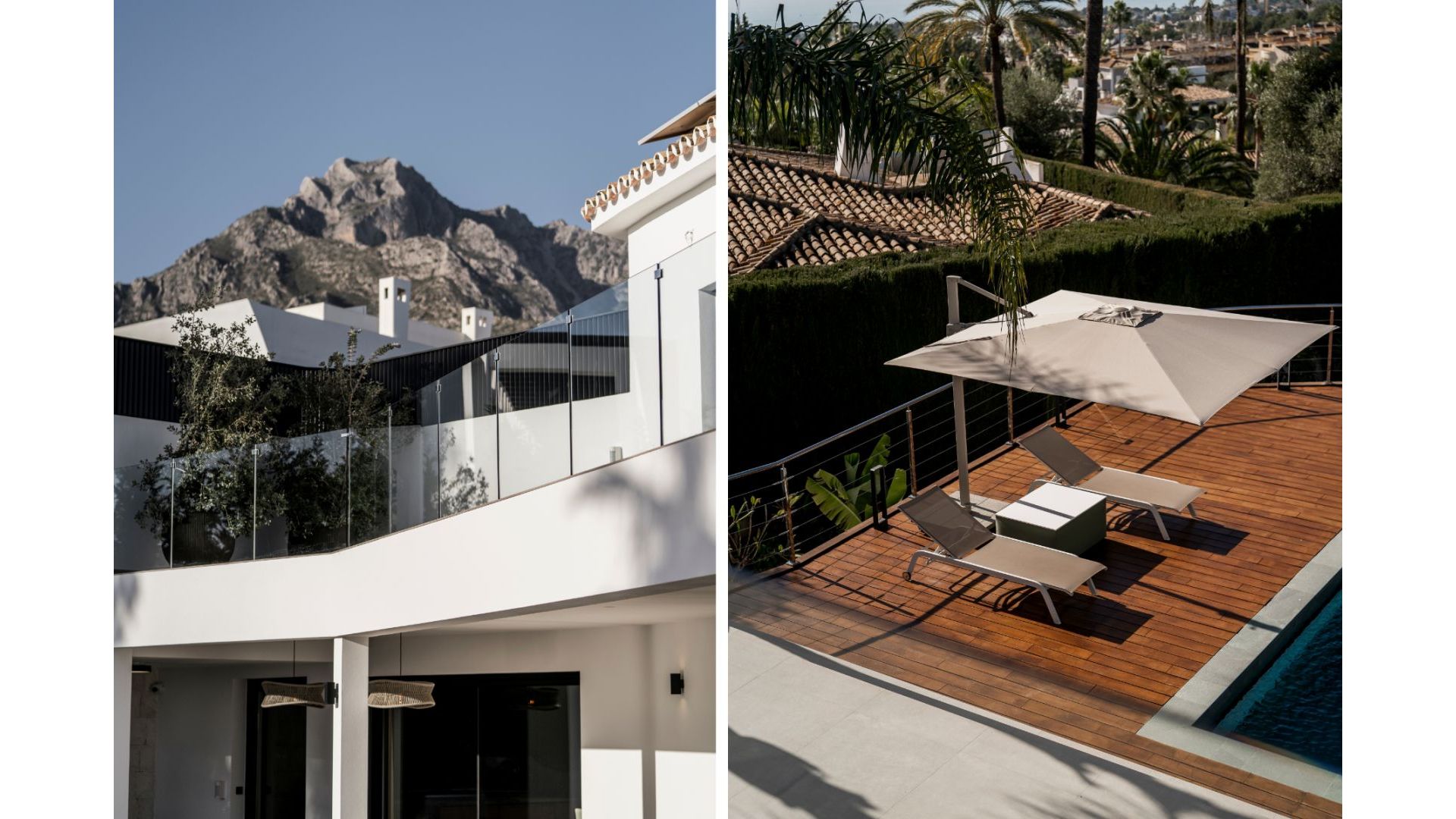 This five-bedroom villa in Nagüeles, located on the hillside leading to Sierra Blanca, offers panoramic sea views and is just minutes from top schools, restaurants, the Golden Mile, and the beach. Its south-facing orientation ensures abundant sunlight and a view of Gibraltar.