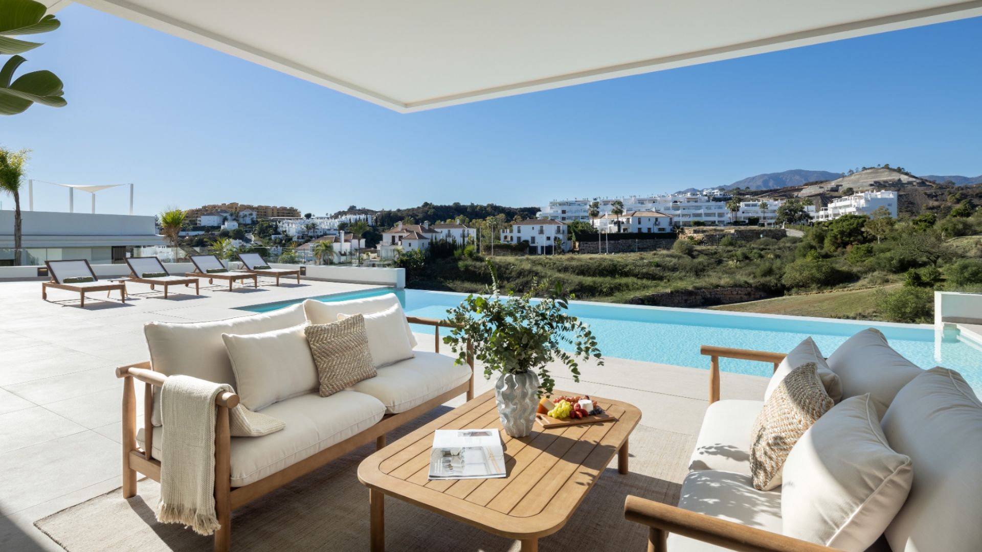 Discover Villa Six in The Resina 6ix Development, an exclusive project located in La Resina Golf on the sought-after New Golden Mile. This stunning collection of six modern villas is perched on an elevated plot, providing breathtaking views of the Mediterranean Sea while ensuring maximum privacy for its residents.