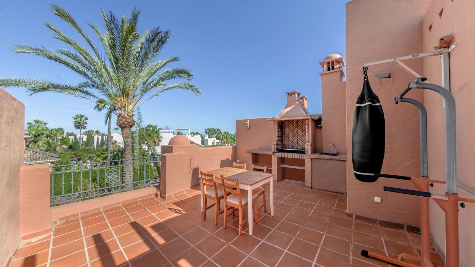 Добро пожаловать в Altos de Puente Romano, современный и безопасный закрытый комплекс в Марбелье с безупречным бассейном и зелеными зонами. Наш дом предлагает изысканный и комфортный отдых всего в нескольких минутах от Puente Romano, Puerto Banús, чистых пляжей и полей для гольфа. Эта трехкомнатная, трехванная недвижимость доступна для краткосрочной аренды и предлагает захватывающие панорамные виды на горы и океан.