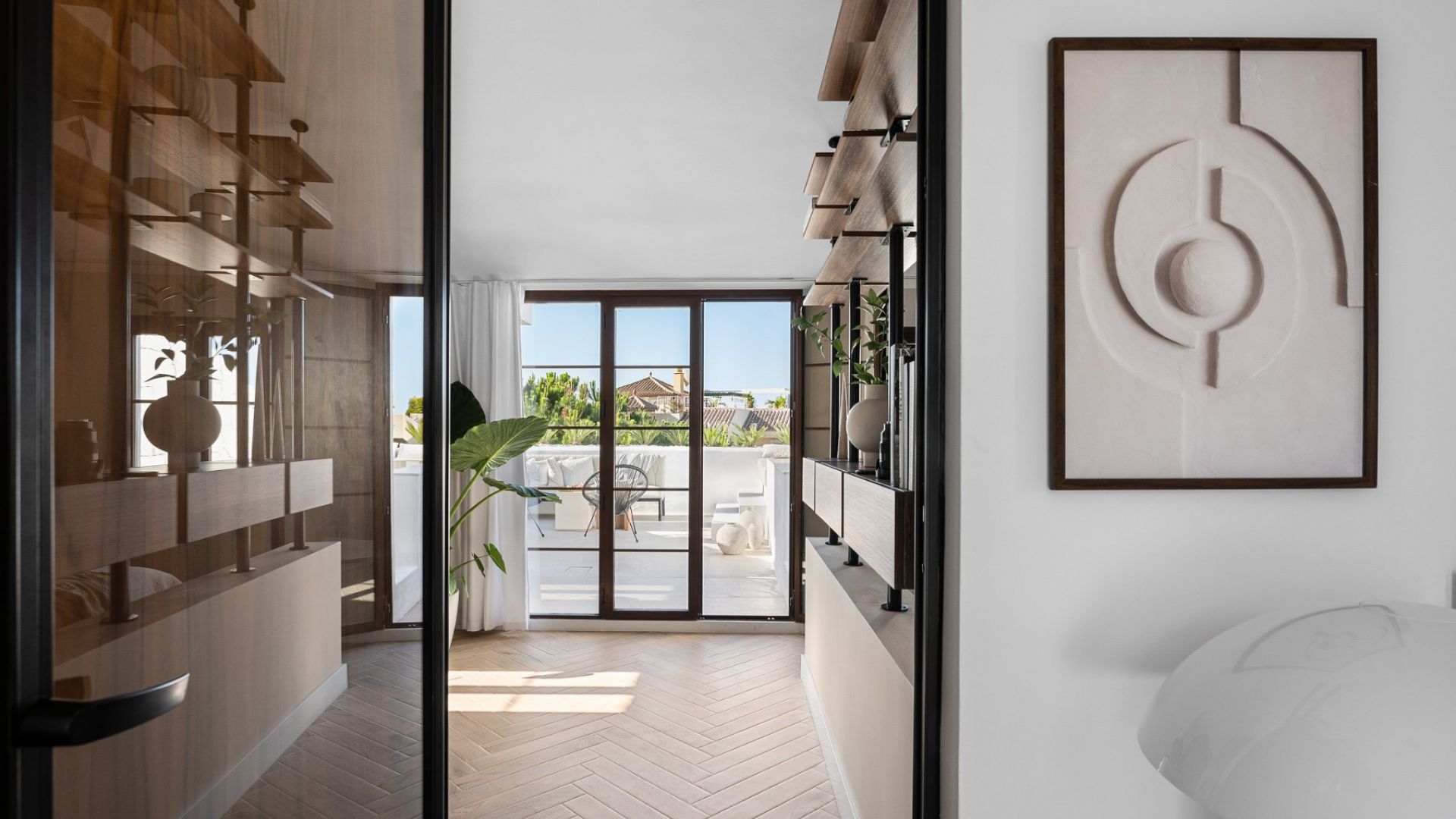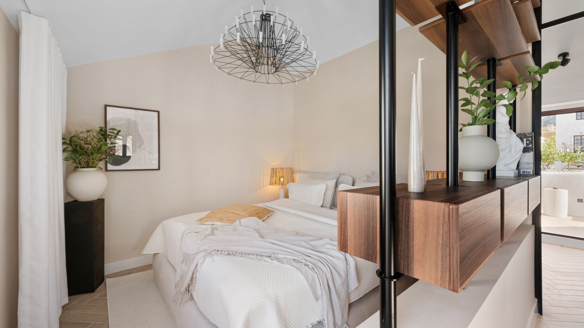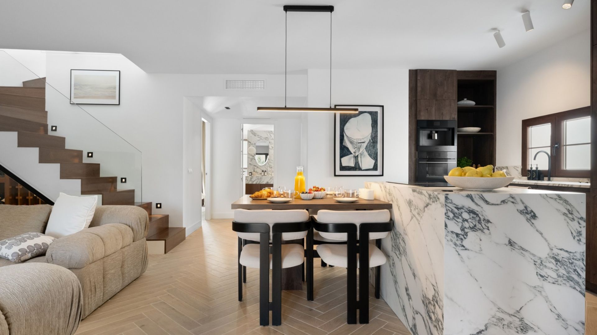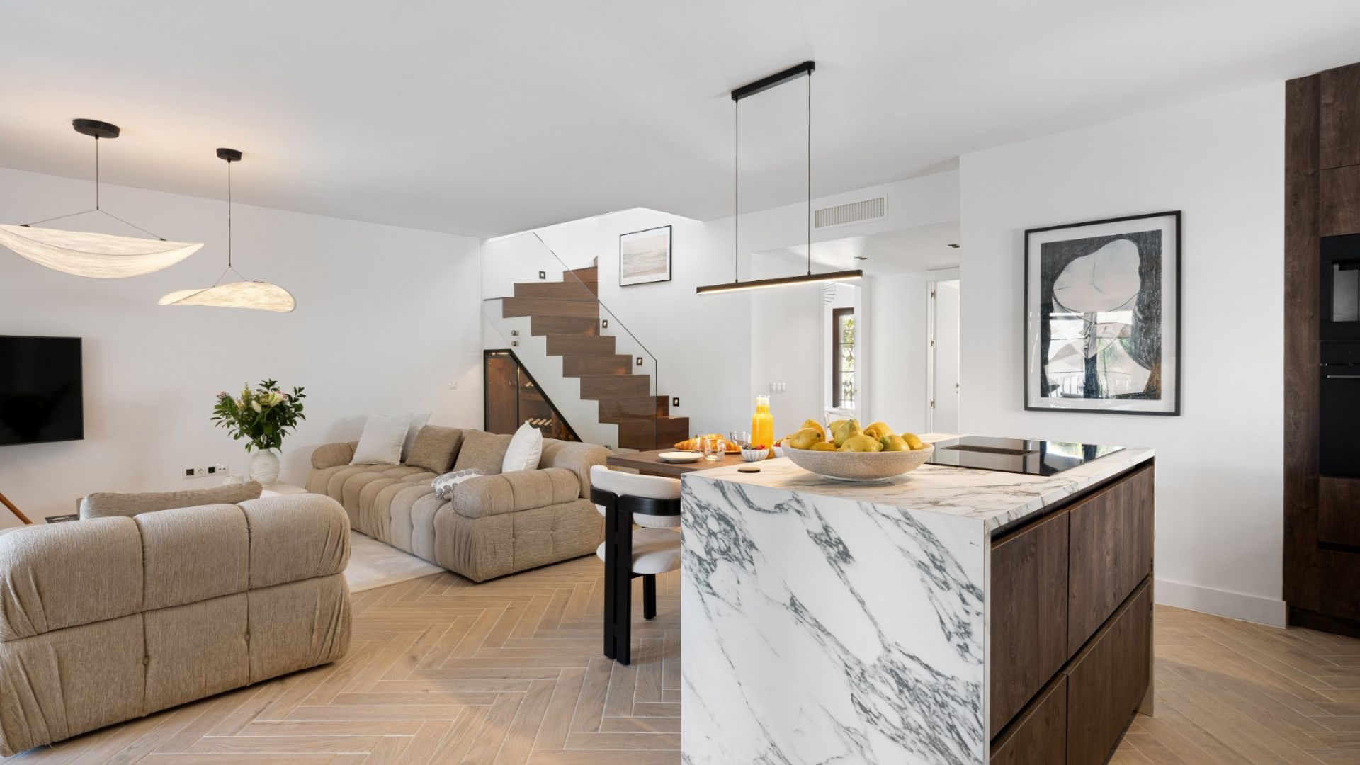Расположенный на престижной Золотой Миле, урбанизация Montepiedra предлагает роскошь и удобство. Эта полностью отремонтированная недвижимость, построенная изначально в 1990 году и обновленная в 2024 году, занимает 169 м², из которых 129 м² тщательно спроектированного внутреннего пространства распределены на двух этажах. Ориентация на юг обеспечивает обильное естественное освещение в течение всего дня, подчеркивая элегантную современную мебель.