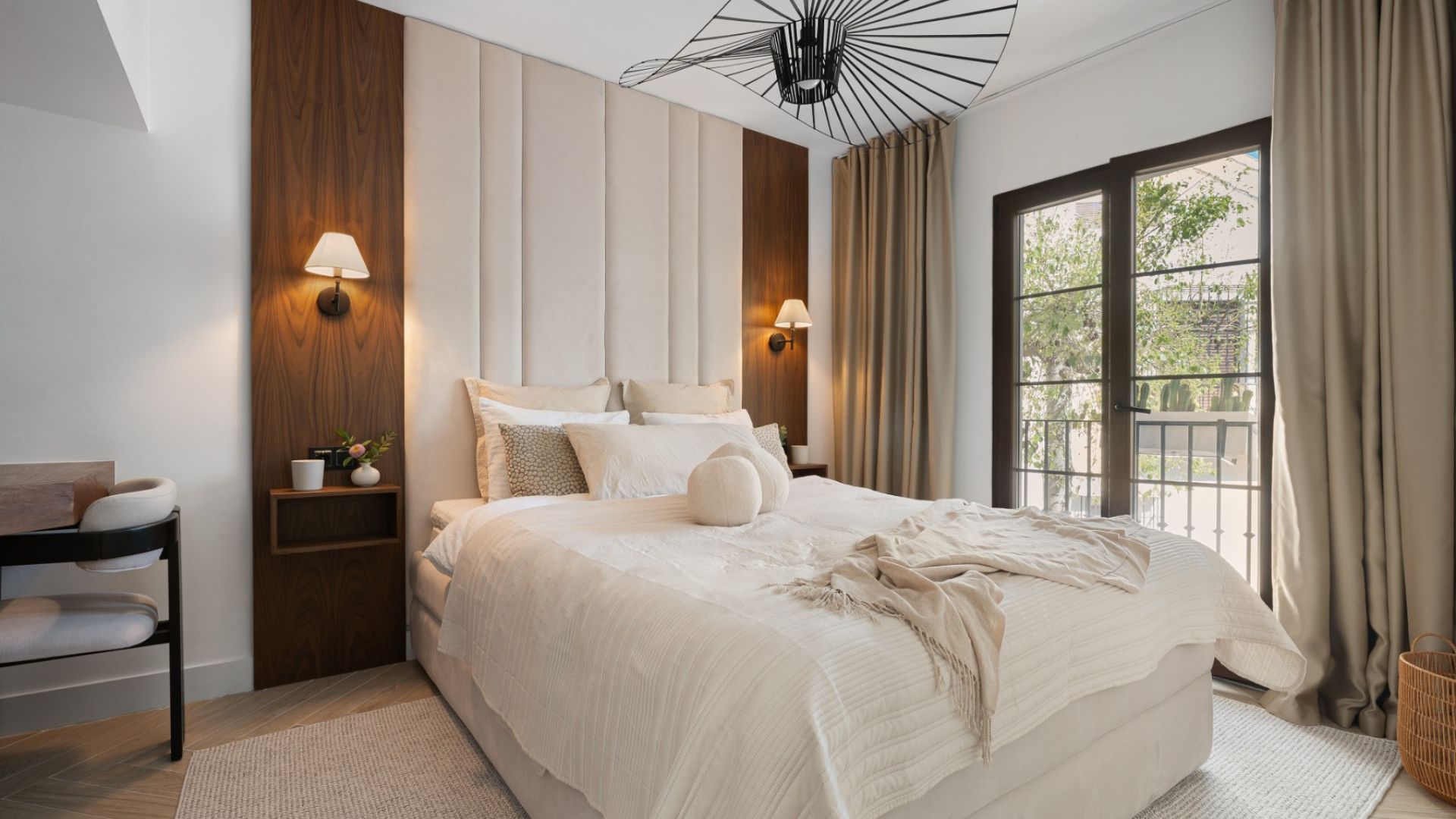 Недвижимость включает три просторные спальни, два ванных комнаты (в том числе одну с ванной в спальне главного типа) и гостевой туалет на главном этаже. Использование высококачественных материалов, таких как дерево, микробетон и стильные обои, добавляет изысканности. Полностью меблированный современными предметами, дом готов к заселению. На солярии имеется маленький бассейн для отдыха в течение всего дня.