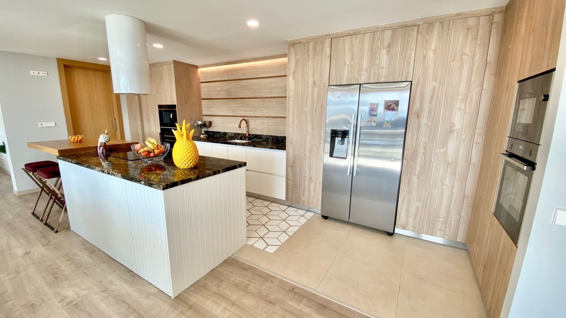 Пентхаус оснащен высококачественной отделкой, плавным переходом между внутренним и внешним пространством и большой открытой кухней с современными приборами, барной стойкой и обеденной зоной. Включает 3 парковочных места в подземном гараже, 2 кладовых и элегантные материалы, такие как керамика, дерево и мраморные полы.