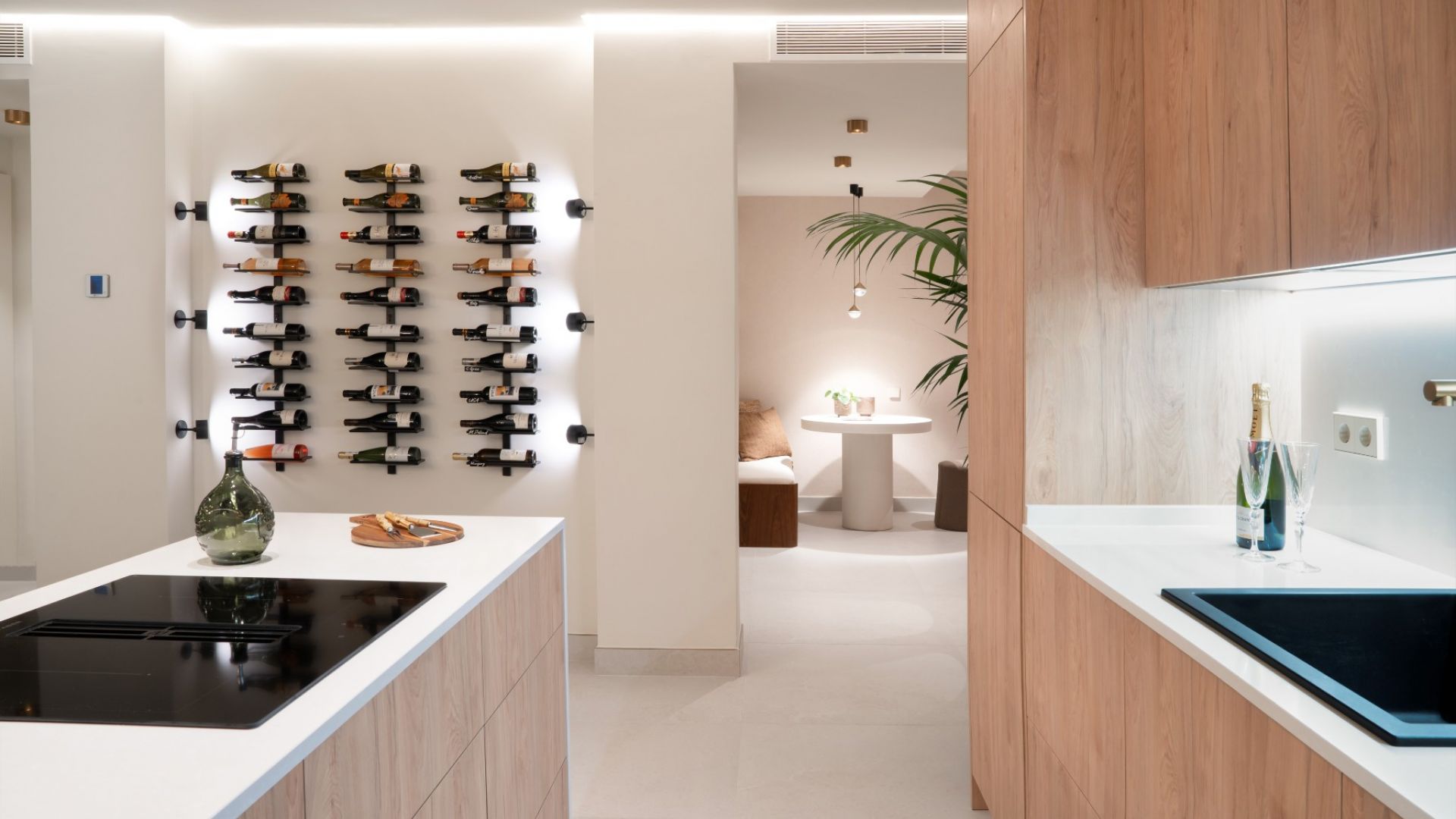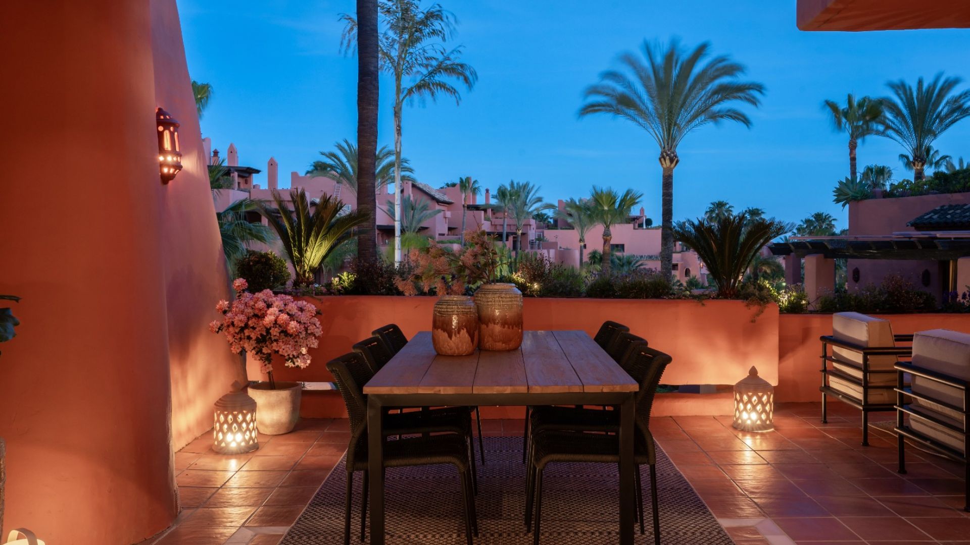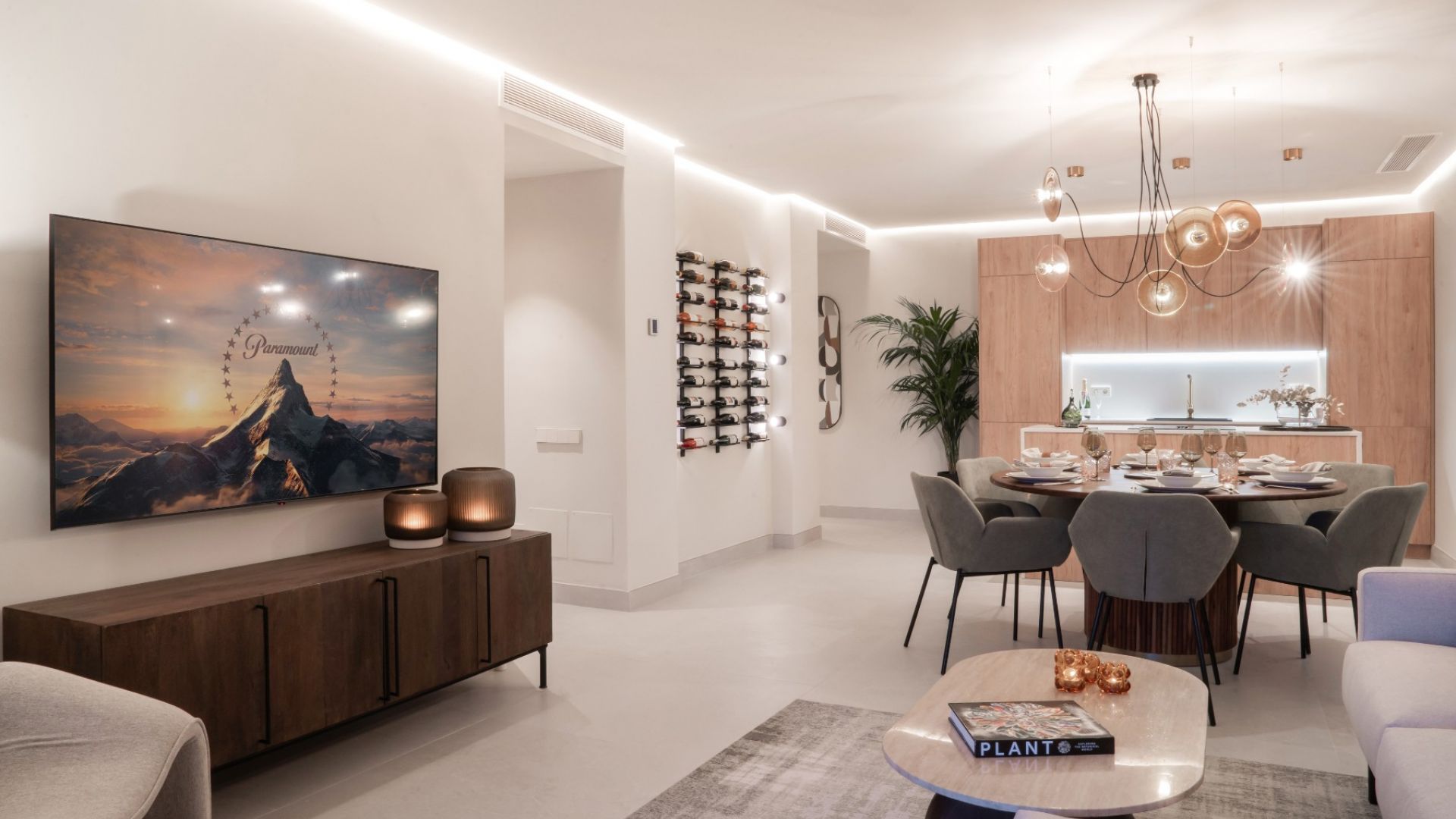 В квартире есть полностью оборудованная и меблированная кухня, идеально подходящая для любителей готовить. Просторная и светлая гостиная и столовая с открытой планировкой выходят на частную террасу через большие стеклянные двери. Терраса предлагает спокойный отдых с живописными видами на сад, бассейн и частичный вид на море.