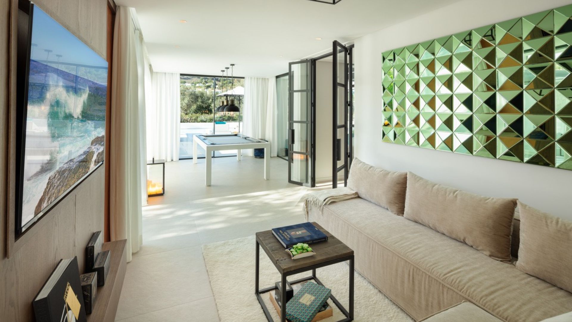Эта современная вилла от AMES Arquitectos сочетает стильный современный дизайн и роскошь, а также обладает уникальным расположением с видом на престижное поле для гольфа Las Brisas. Она находится в тихом и уединенном тупике, обеспечивая полную приватность и спокойствие, в то время как всего в нескольких минутах ходьбы — оживленные рестораны и кафе в районе Алоха.