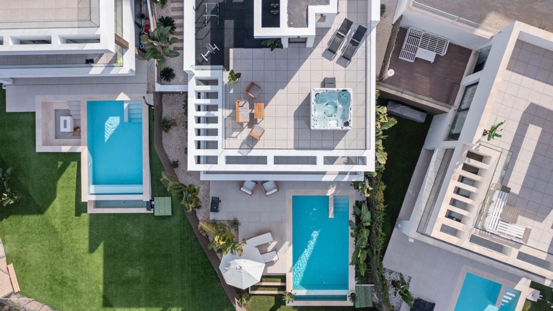 Добро пожаловать в эту современную виллу с западной ориентацией, расположенную в La Resina Golf, с потрясающими видами на горы и поле для гольфа. Вилла спроектирована с гармоничным сочетанием современной архитектуры и современных интерьеров, а открытая планировка позволяет наслаждаться жизнью внутри и снаружи. Недвижимость распределена на четыре уровня следующим образом: