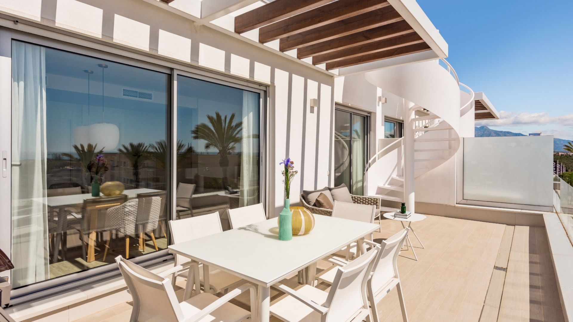 На верхнем этаже есть просторная солярий с панорамным видом на Средиземное море.