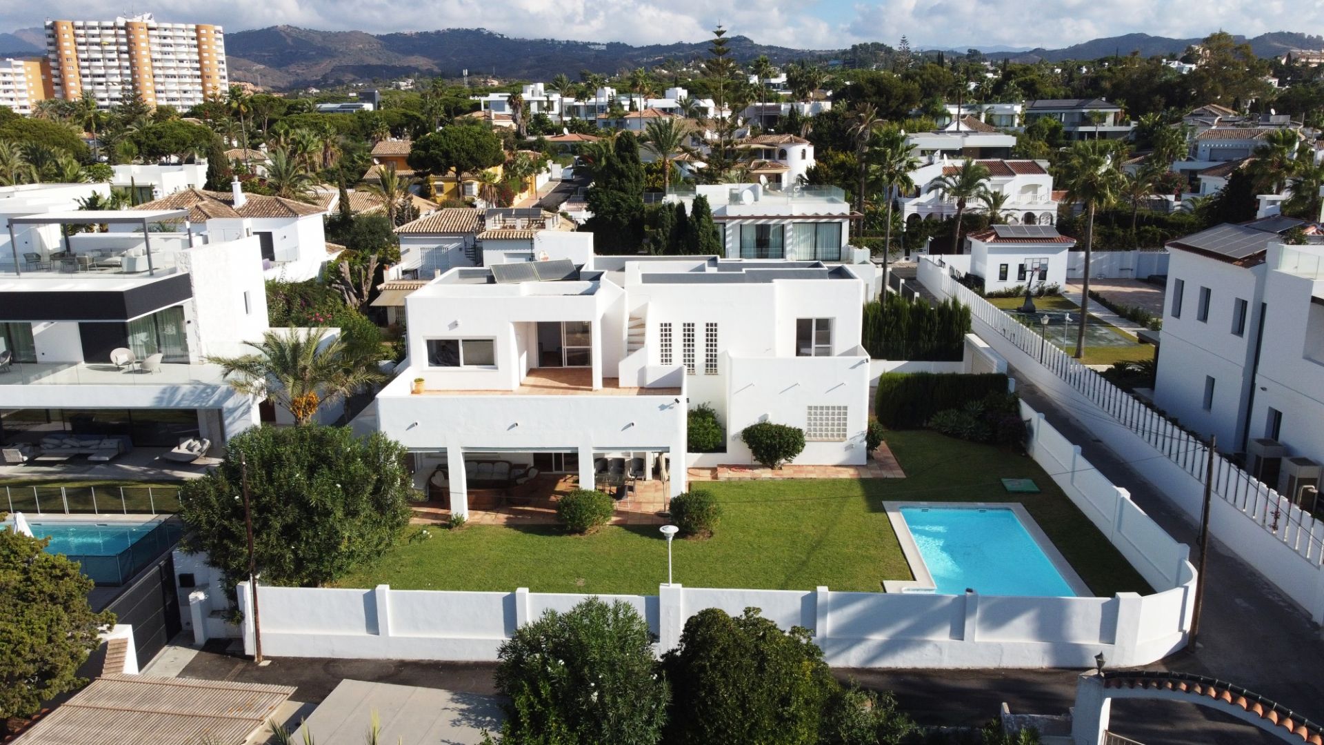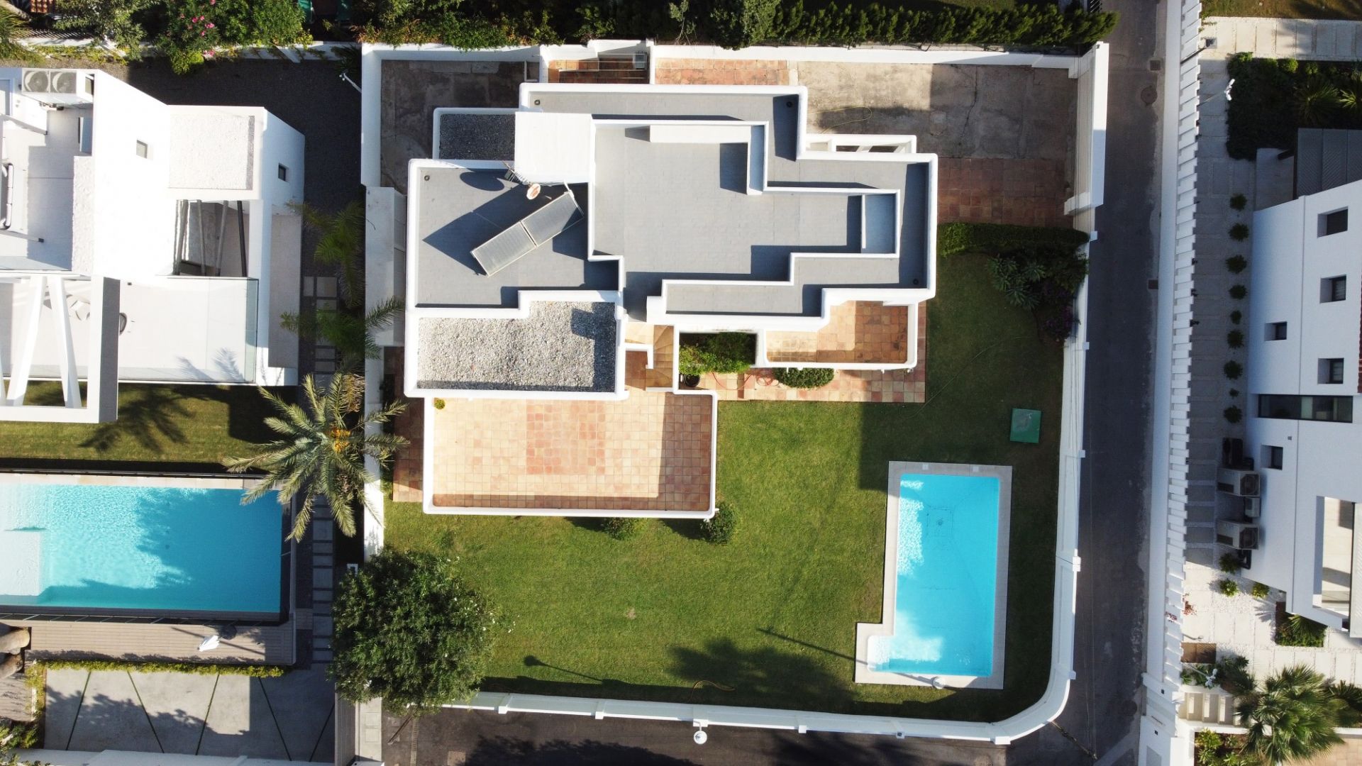 Изюминкой этого дома является солярий — терраса на крыше с огромным потенциалом. С нее открывается панорамный вид на море, что делает это место идеальным для отдыха с друзьями или семьей, наслаждаясь морским бризом, звуками волн и расслабленной атмосферой Марбельи. У дома также есть просторный сад с красивым бассейном, который станет отличным местом для встреч с близкими. К тому же южное расположение обеспечит солнце на протяжении всего дня.