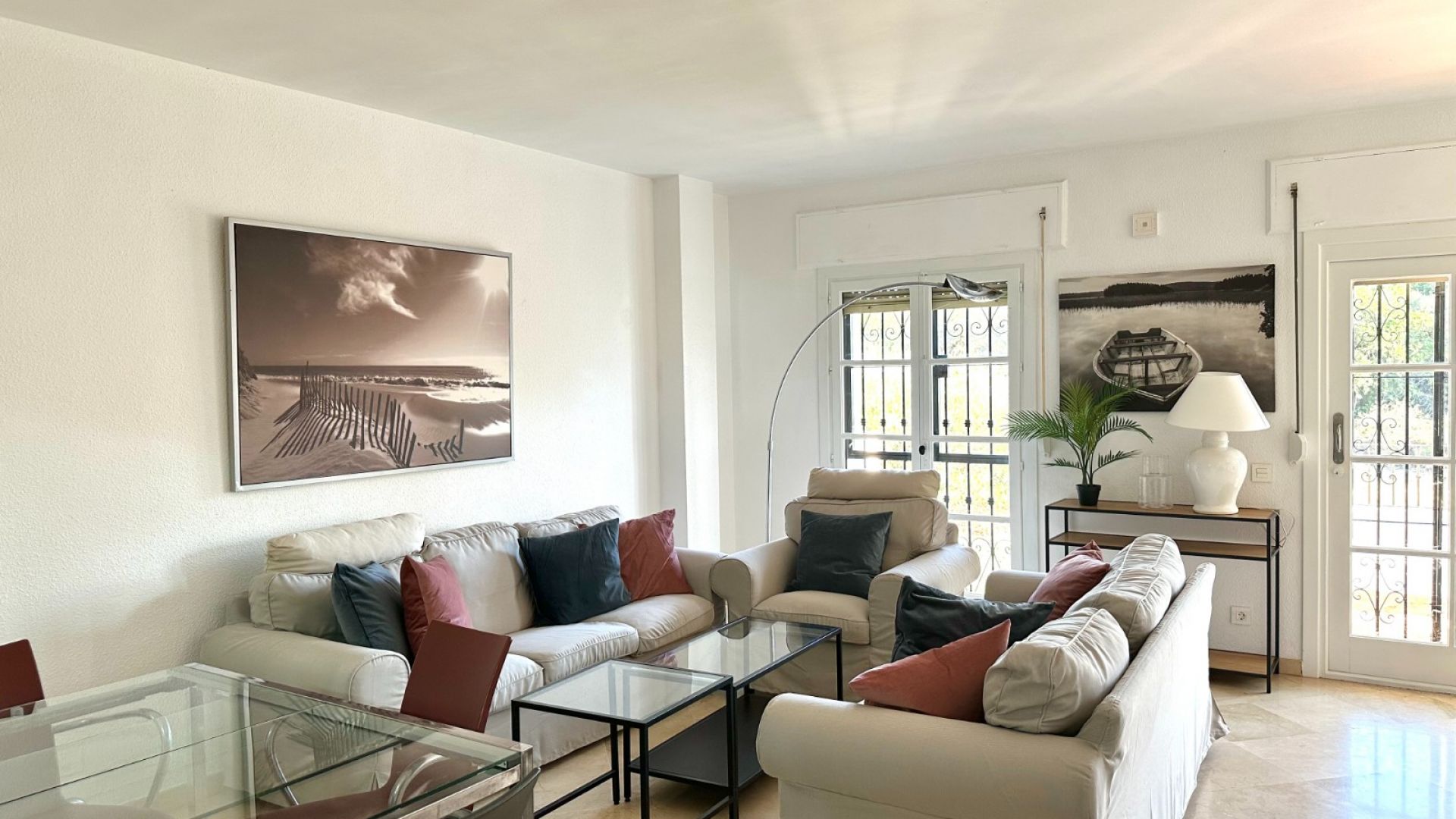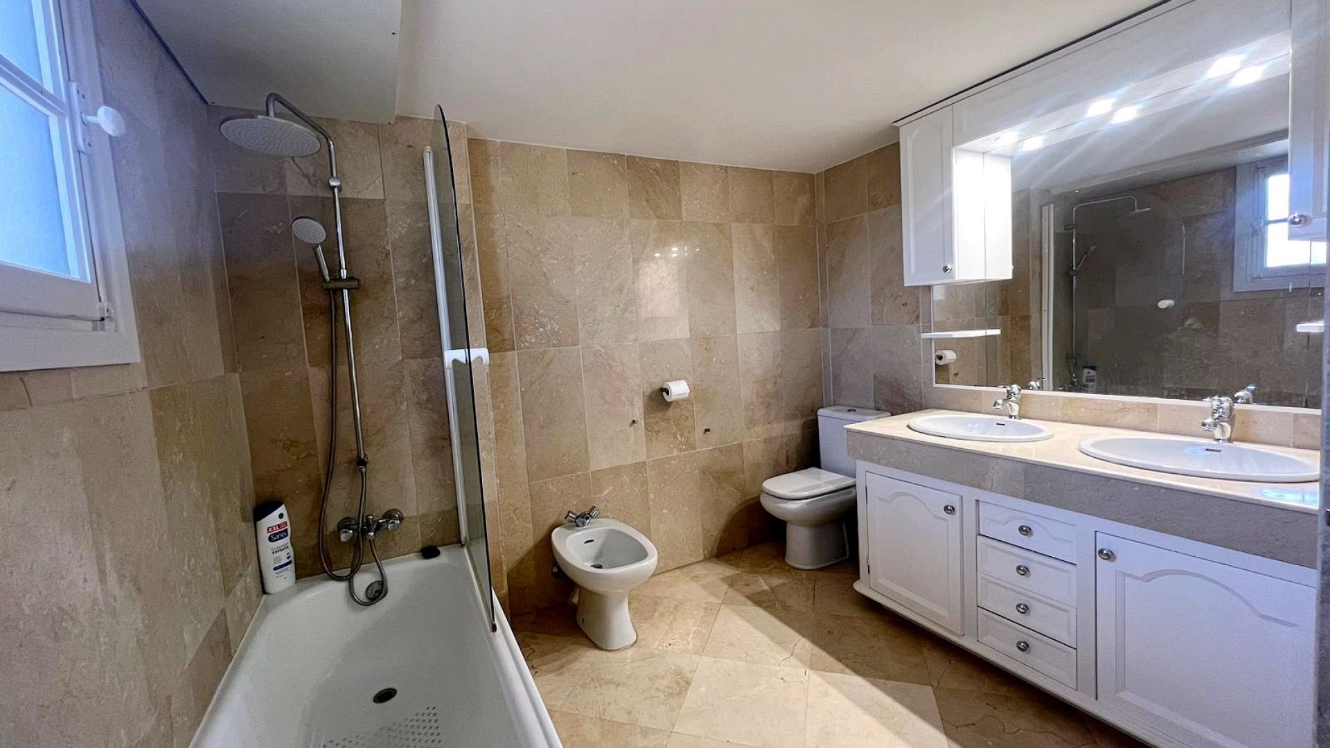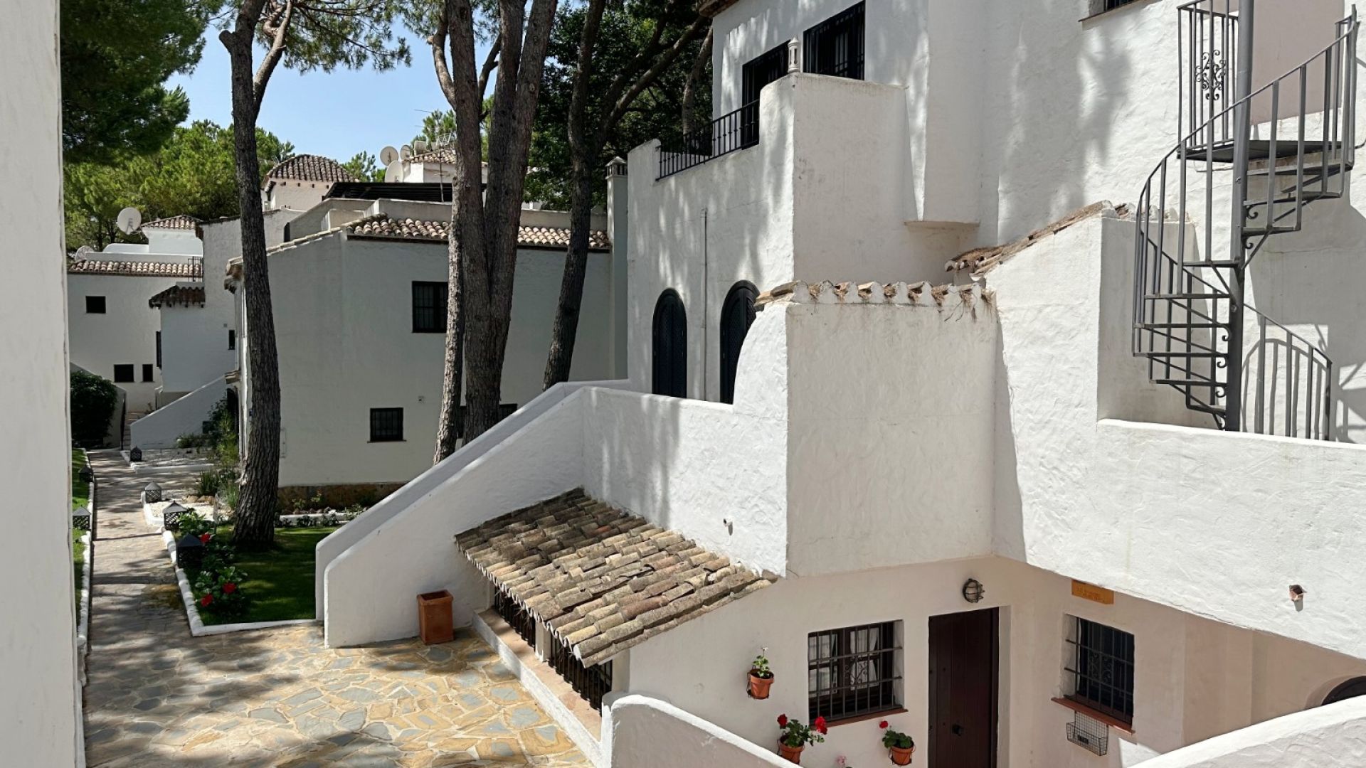 Denna 2-rumslägenhet ligger i en triplexlägenhet i bostadsområdet Los Pinos de Aloha i Nueva Andalucía. Lägenheten har på bottenvåningen ett utrustat och självständigt kök, ett rymligt vardagsrum med tillgång till en mysig terrass med utsikt över La Concha-berget. På andra våningen finns 2 sovrum med egna badrum, varav ett är huvudsviten med privat terrass. Översta våningen består av ett solarium med solstolar och en loungedel med 360 graders utsikt över bergen och urbaniseringen. Detta bostadsområde har en gemensam pool och en parkeringsplats inom urbaniseringen. Dessutom inkluderar lägenheten:
