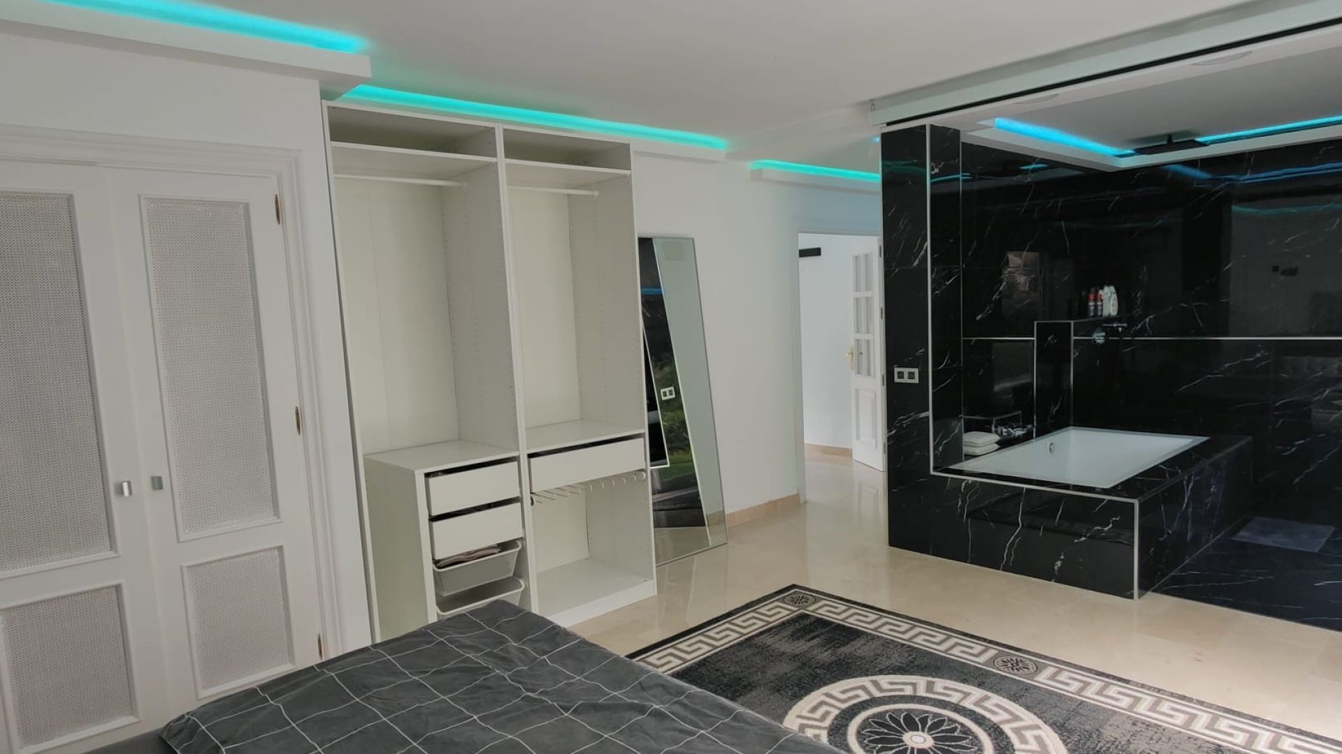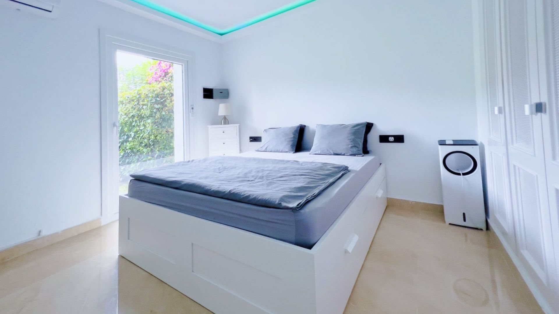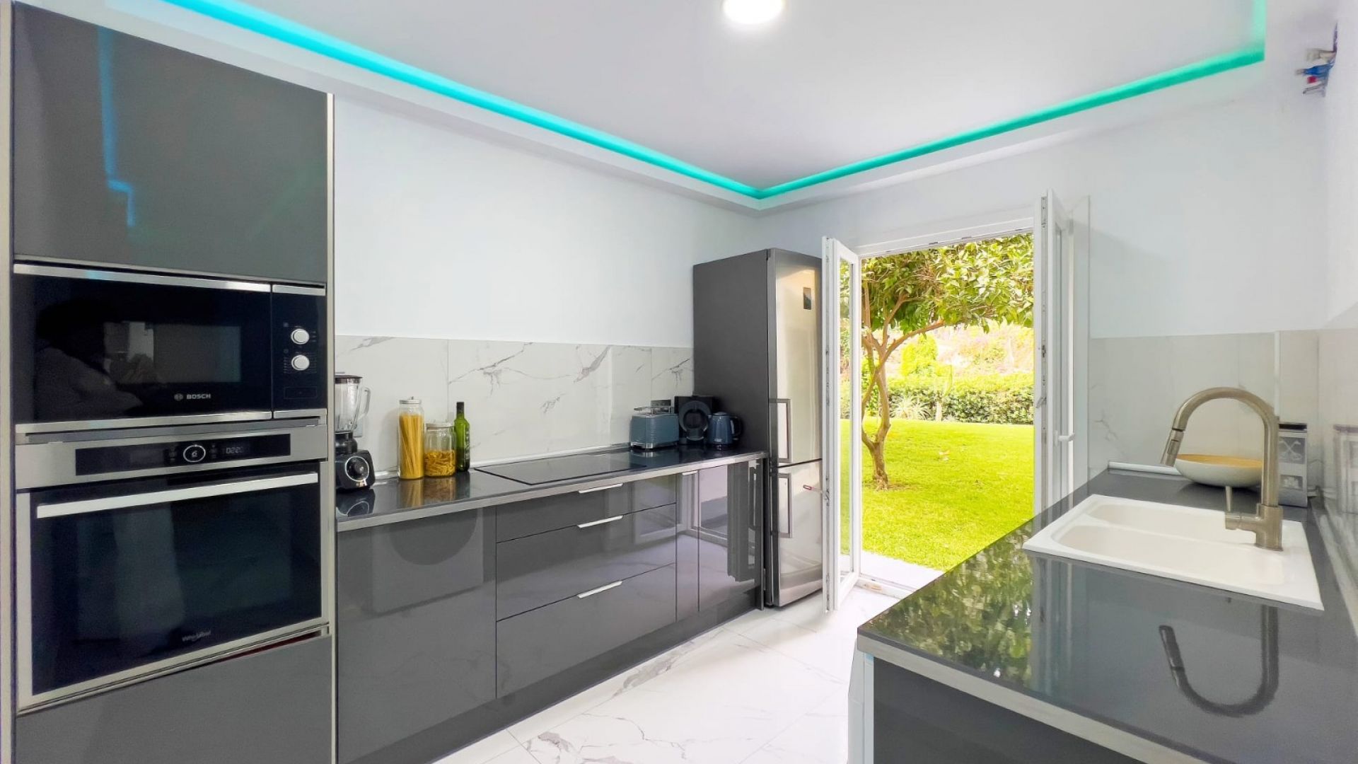 Upptäck detta nyrenoverade parhus i det exklusiva området La Quinta i Benahavís, tillgängligt för korttidsuthyrning. Med en modern interiör erbjuder detta charmiga hem 2 sovrum och 2 badrum, en rymlig matsal och ett modernt kök. Vardagsrummet flödar sömlöst ut till en frodig privat trädgård som omger huset, perfekt för avkoppling och utomhusmiddagar.