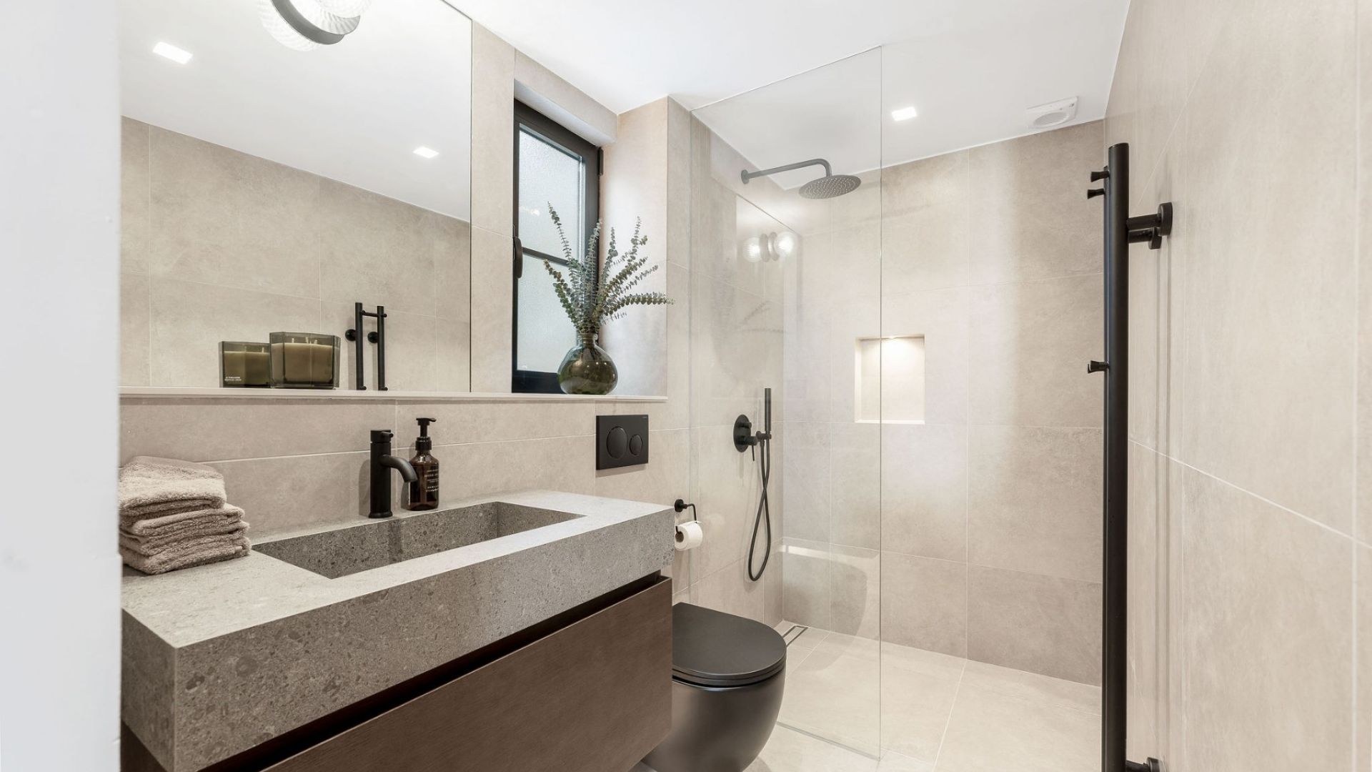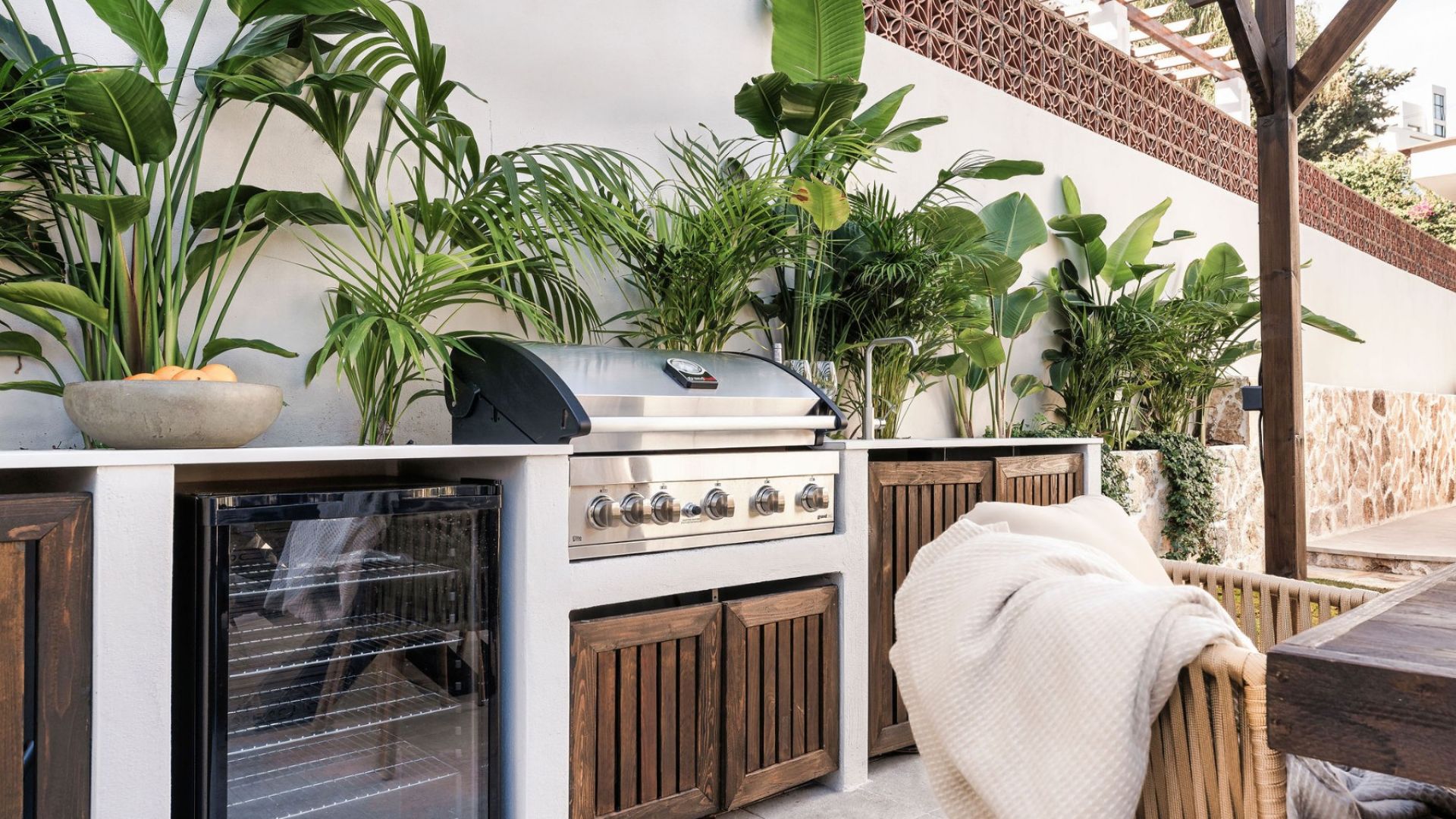 Villan har en öppen planlösning med vardagsrum och kök, elegant designad med italiensk sten och högkvalitativa ytskikt. Här finns fyra sovrum och fyra badrum, inklusive ett gästhus med egna bekvämligheter, vilket garanterar komfort och avskildhet för alla boende. Mastersviten, med sitt skräddarsydda U-formade imperiemarmortvättställ, har direkt tillgång till den uppvärmda poolen och grillplatsen, vilket underlättar en sömlös inomhus-utomhuslivsstil.