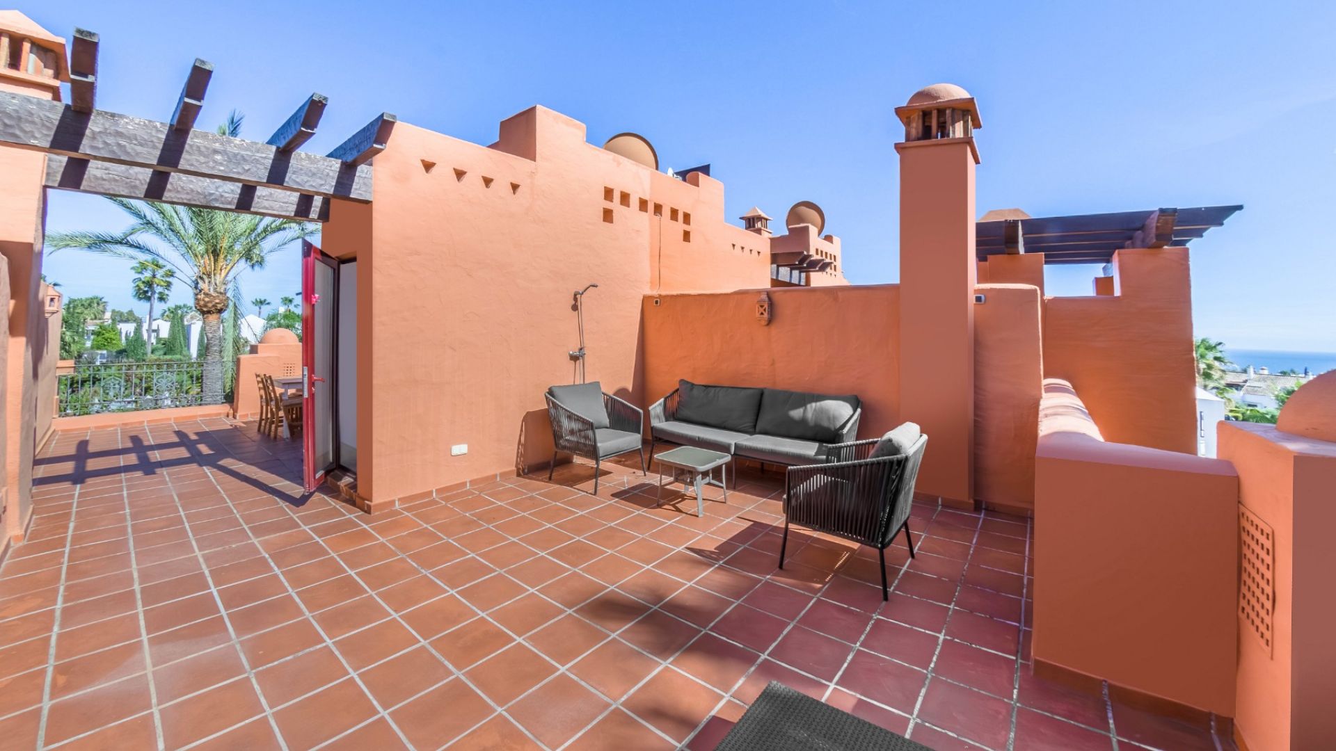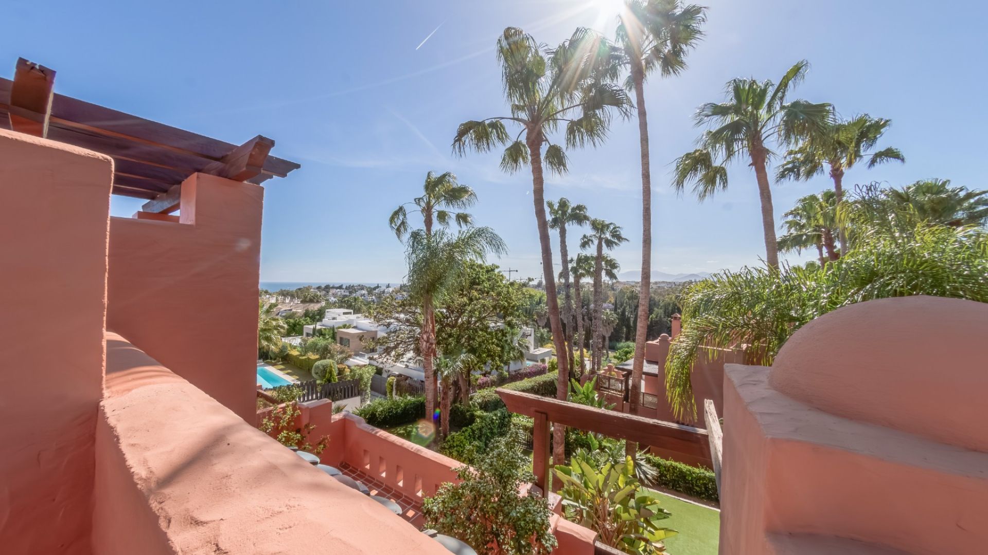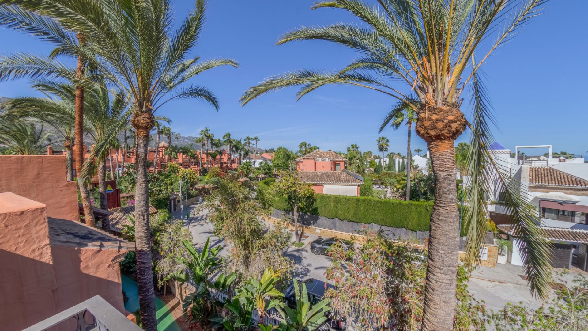 Välkommen till Altos de Puente Romano, en modern och säker gated komplex i Marbella, med en orörd pool och frodiga gröna områden. Vårt hus erbjuder en sofistikerad och bekväm tillflyktsort bara några minuter från Puente Romano, Puerto Banús, orörda stränder och golfbanor. Denna tre sovrum och tre badrum fastighet är tillgänglig för korttidsuthyrning och har enastående panoramautsikt över både bergen och havet.