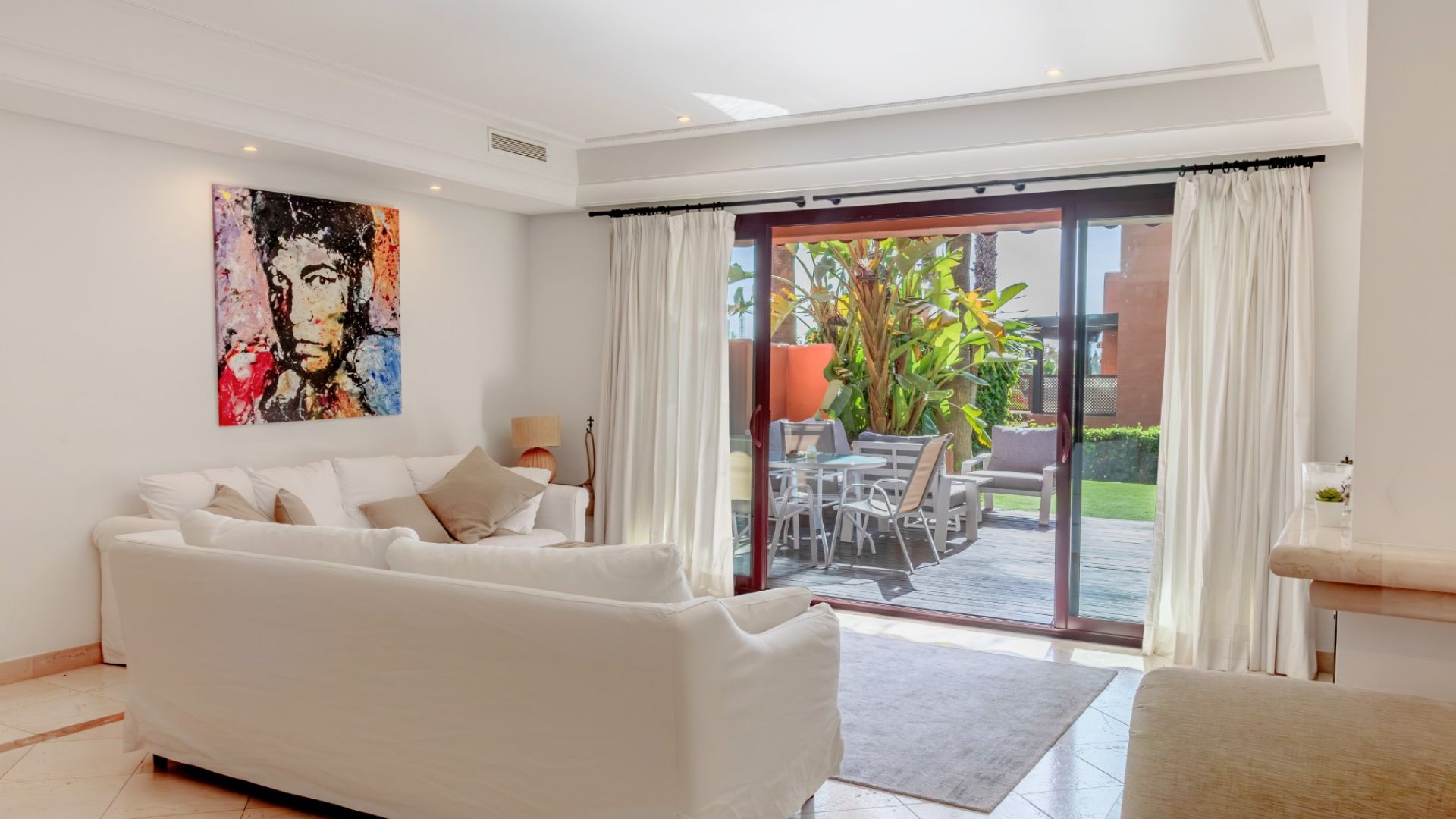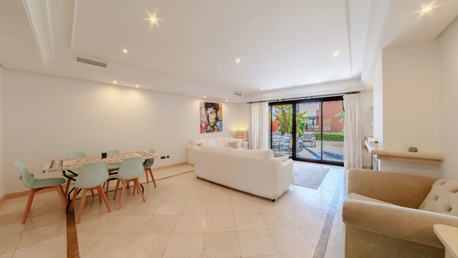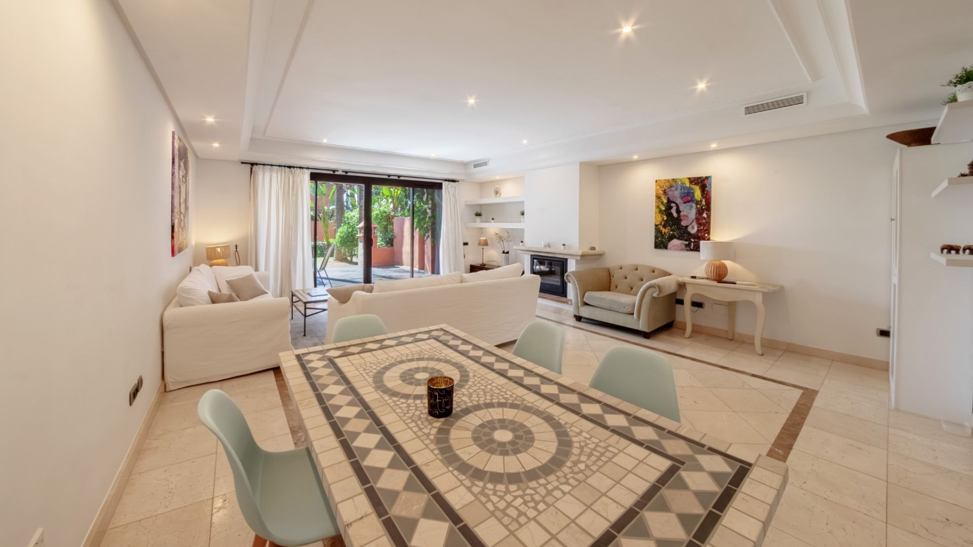 Välkommen till Altos de Puente Romano, en modern och säker gated komplex i Marbella, med en orörd pool och frodiga gröna områden. Vårt hus erbjuder en sofistikerad och bekväm tillflyktsort bara några minuter från Puente Romano, Puerto Banús, orörda stränder och golfbanor. Denna tre sovrum och tre badrum fastighet är tillgänglig för korttidsuthyrning och har enastående panoramautsikt över både bergen och havet.