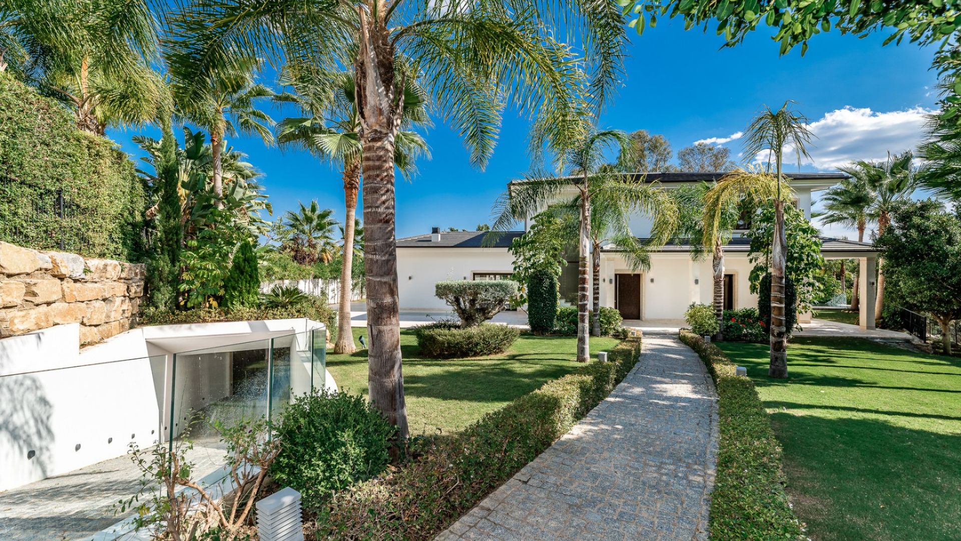 Bekvämligheter inkluderar inomhus- och utomhusterrasser, en uppvärmd infinity saltvattenpool, ett gym, en spaavdelning med turkiskt bad och finsk bastu, samt ett rymligt garage för 10 bilar med glastak för naturligt ljus. Villan har fantastisk utsikt över golfbanan, havet, La Concha och en tropisk trädgård med över 20 palmer.