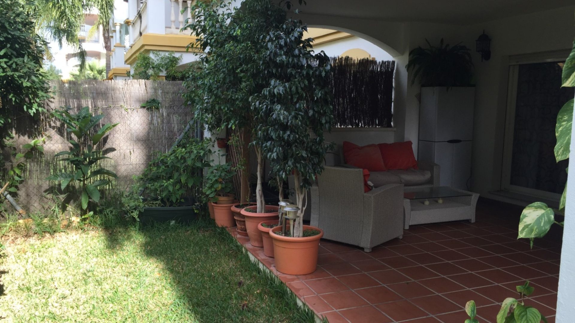 Charmig lägenhet på bottenvåningen i det prestigefyllda Dama de Noche-området, en av Marbellas mest eftertraktade bostadsområden. Perfekt belägen nära Puerto Banús, bara några minuters promenad till stranden och en mängd olika tjänster.
