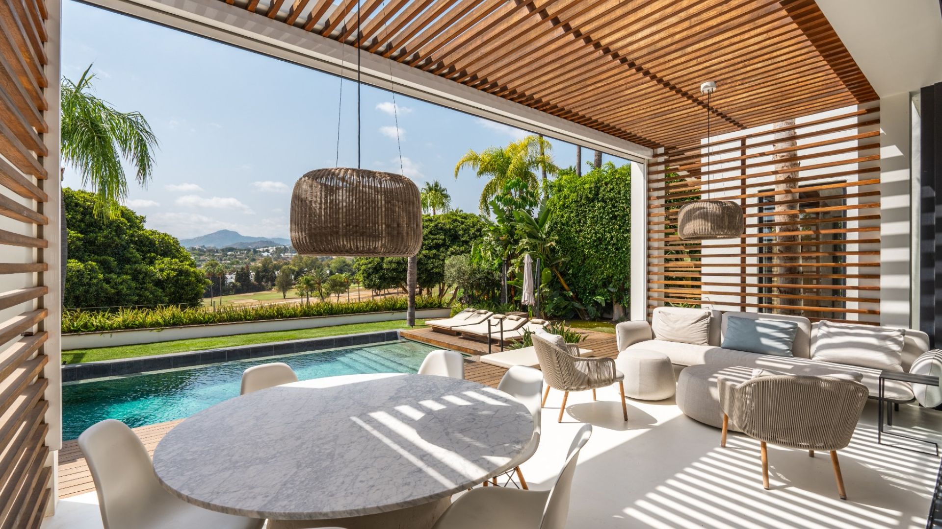 Belägen i hjärtat av Golfdalen i Nueva Andalucía ligger denna villa på första linjen vid Los Naranjos golfbana, med fantastiska vyer över banan, bergen och grönskan. I ett exklusivt, inhägnat område kombinerar villan andalusisk charm med modern stil, med högt i tak, stora fönster och naturliga material för en mysig men luftig atmosfär.