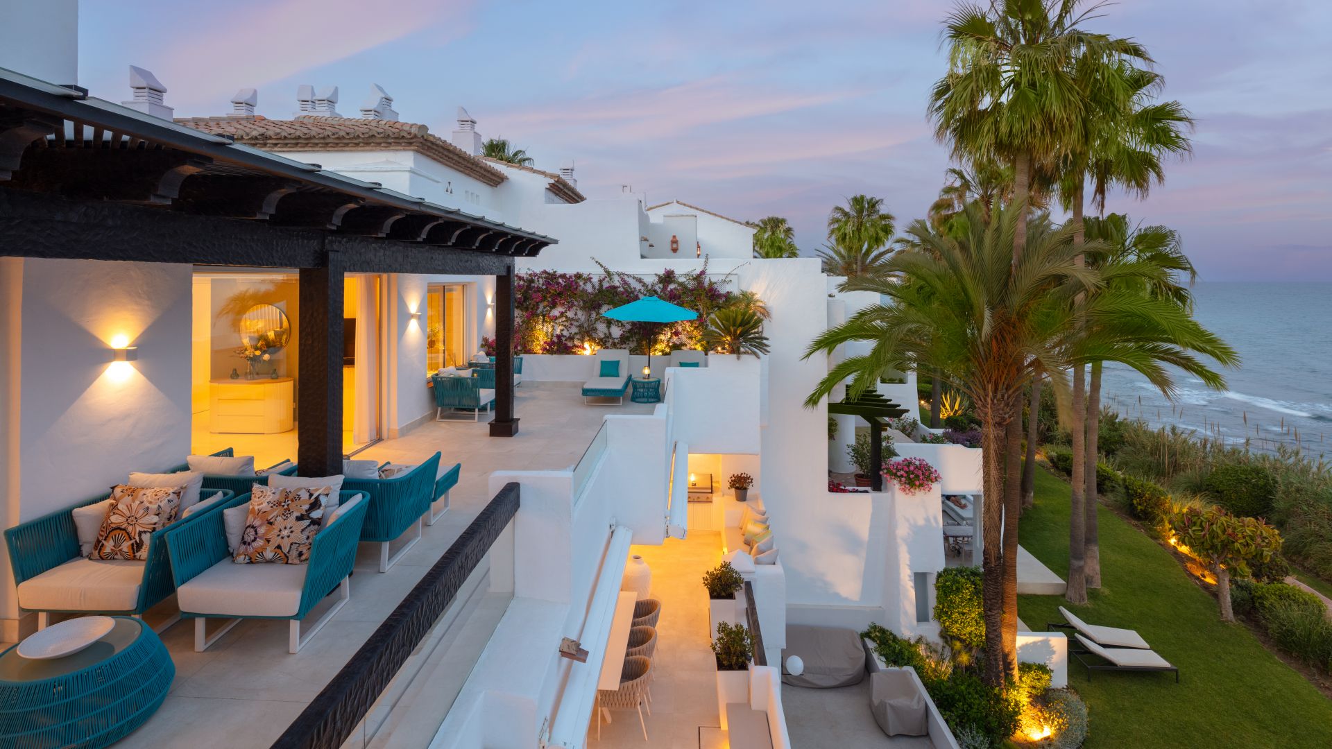 Upplev lyxen vid strandkanten i denna extraordinära fastighet belägen inom Marbellas prestigefyllda Puente Romano Resort på Golden Mile. Denna eleganta duplex-lägenhet kombinerar sömlöst inomhus- och utomhusliv, vilket skapar en resort-liknande atmosfär perfekt för avkoppling och underhållning. Med sina stora terrasser och hisnande havsutsikt kan du njuta fullt ut av Medelhavets klimat och kulinariska njutningar utomhus.
