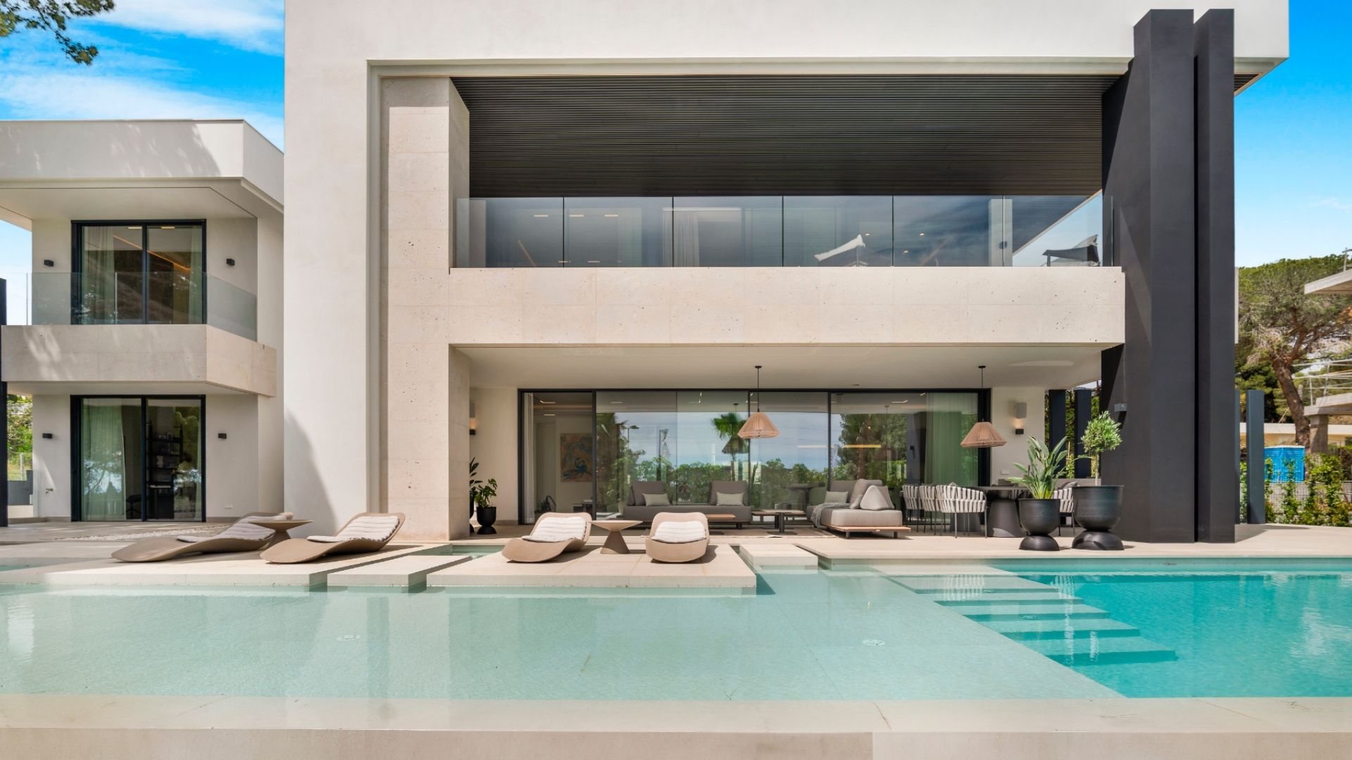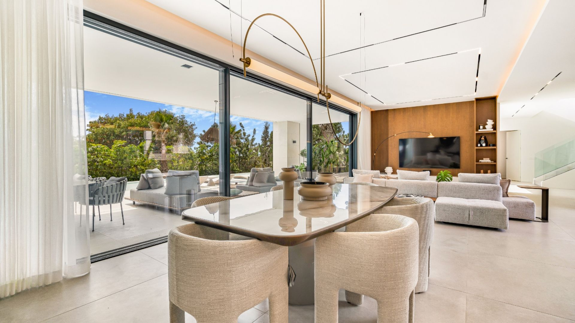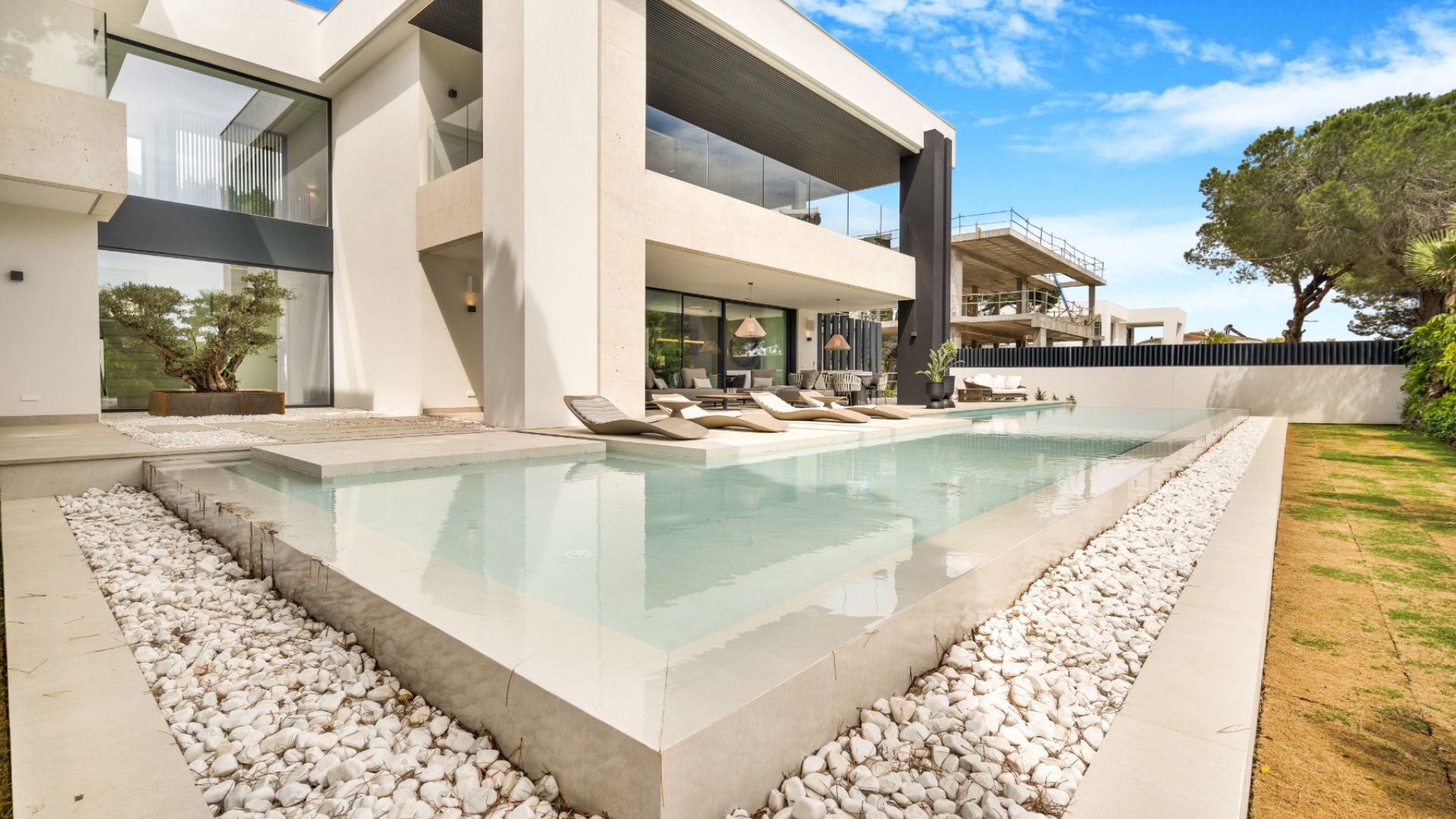 Denna imponerande fastighet, belägen i den prestigefyllda Gyldene Milen i Nagüeles, erbjuder rymliga, moderna interiörer designade enligt de högsta lyxstandarderna. Residensen har fem stora sovrum (ett av dem används för närvarande som kontor), fyra och ett halvt eleganta badrum samt en cocktailbar perfekt för underhållning. Hemmet har även ett toppmodernt biograf, ett fullt utrustat gym och en avkopplande bastu. Varje detalj i denna helt nya fastighet har designats med stor omsorg och är i absolut nyskick, vilket ger den perfekta kombinationen av stil, komfort och funktionalitet.