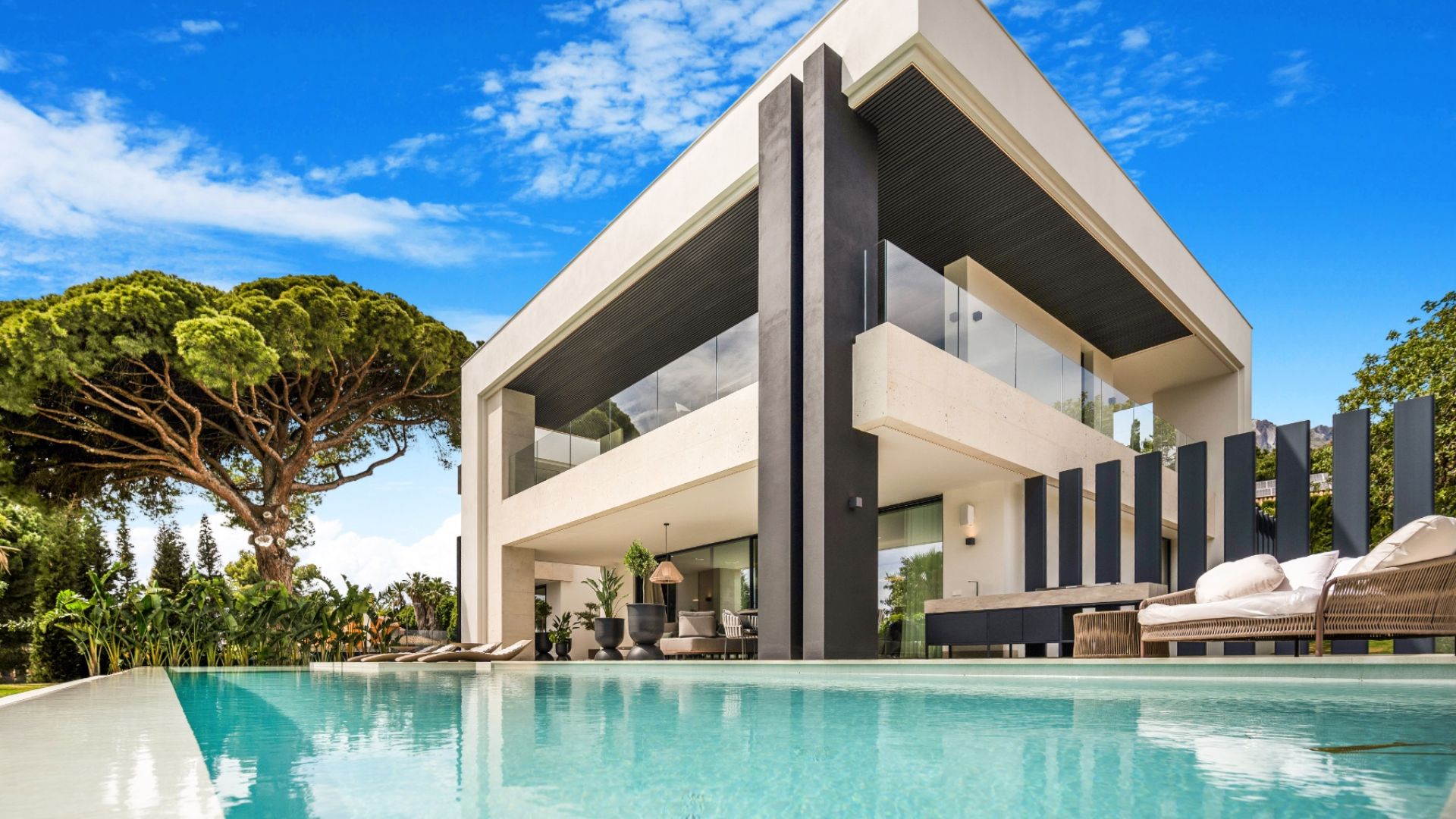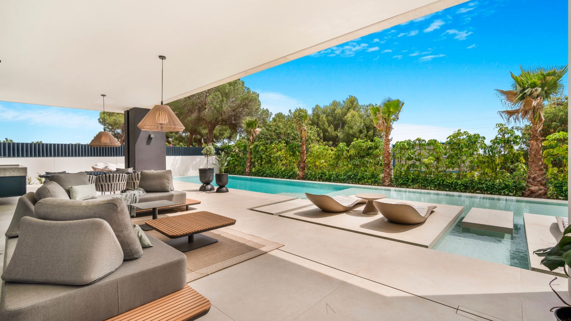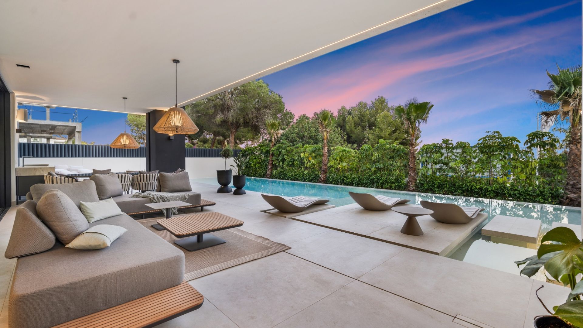 Denna imponerande fastighet, belägen i den prestigefyllda Gyldene Milen i Nagüeles, erbjuder rymliga, moderna interiörer designade enligt de högsta lyxstandarderna. Residensen har fem stora sovrum (ett av dem används för närvarande som kontor), fyra och ett halvt eleganta badrum samt en cocktailbar perfekt för underhållning. Hemmet har även ett toppmodernt biograf, ett fullt utrustat gym och en avkopplande bastu. Varje detalj i denna helt nya fastighet har designats med stor omsorg och är i absolut nyskick, vilket ger den perfekta kombinationen av stil, komfort och funktionalitet.