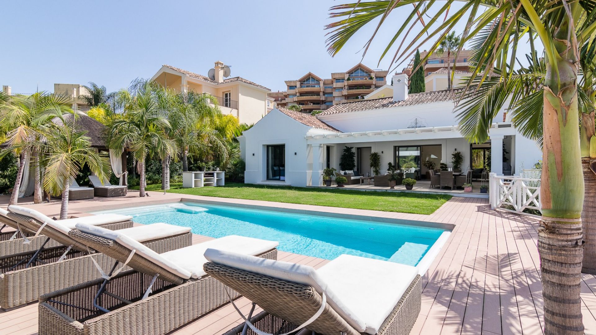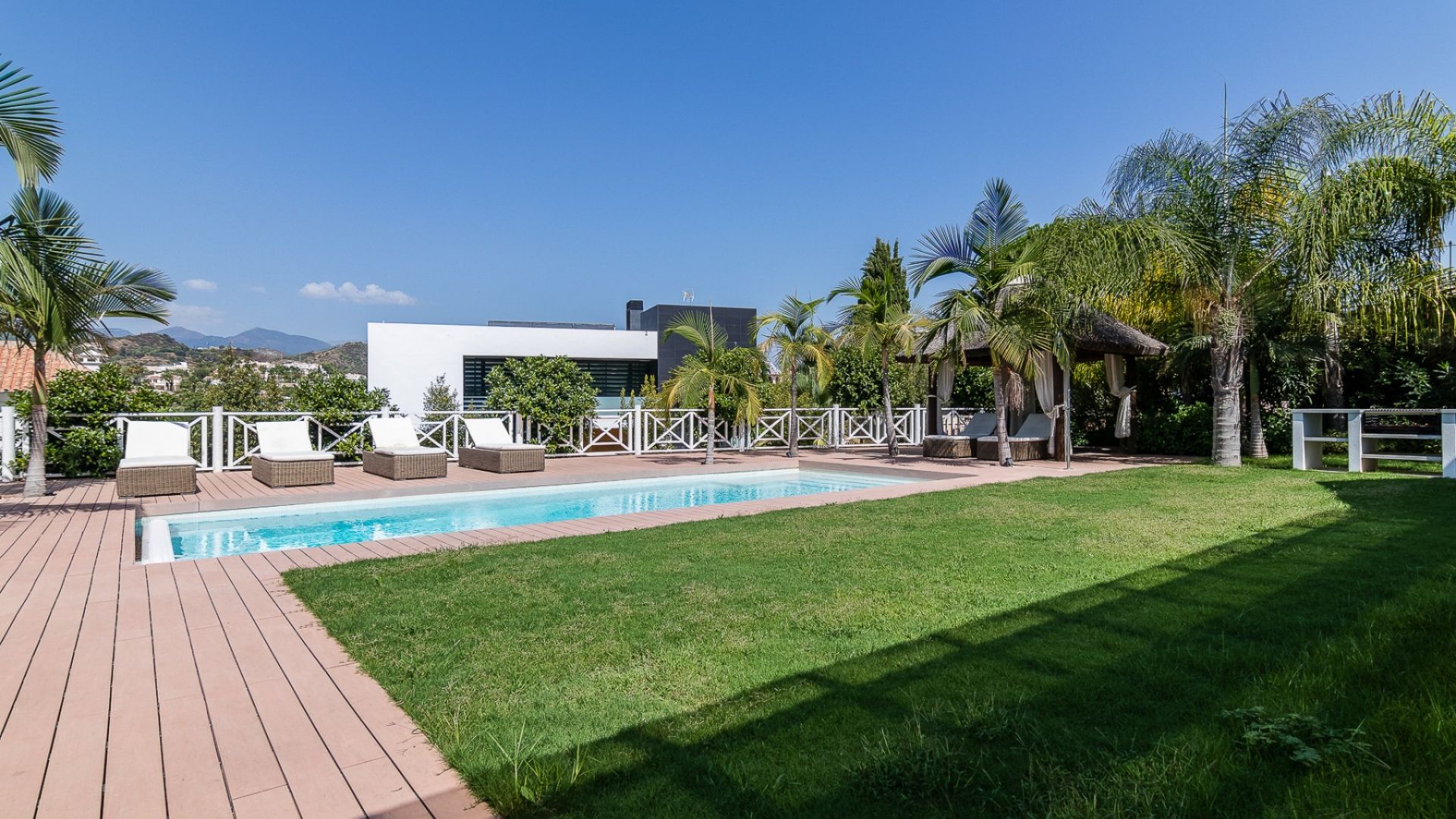Utomhus har villan en uppvärmd swimmingpool, en grillplats och vackert anlagda trädgårdar. Det finns också säker parkering med garage och extra uppfartsutrymme. Nueva Andalucía är känt för sin lugn, närhet till världsklass golfbanor och en livlig livsstil, med utmärkta restauranger, butiker och utbildningsmöjligheter i närheten. Villa Tucan kombinerar sofistikerad design med ett eftertraktat läge, och erbjuder en exceptionell livsstil i Marbella.