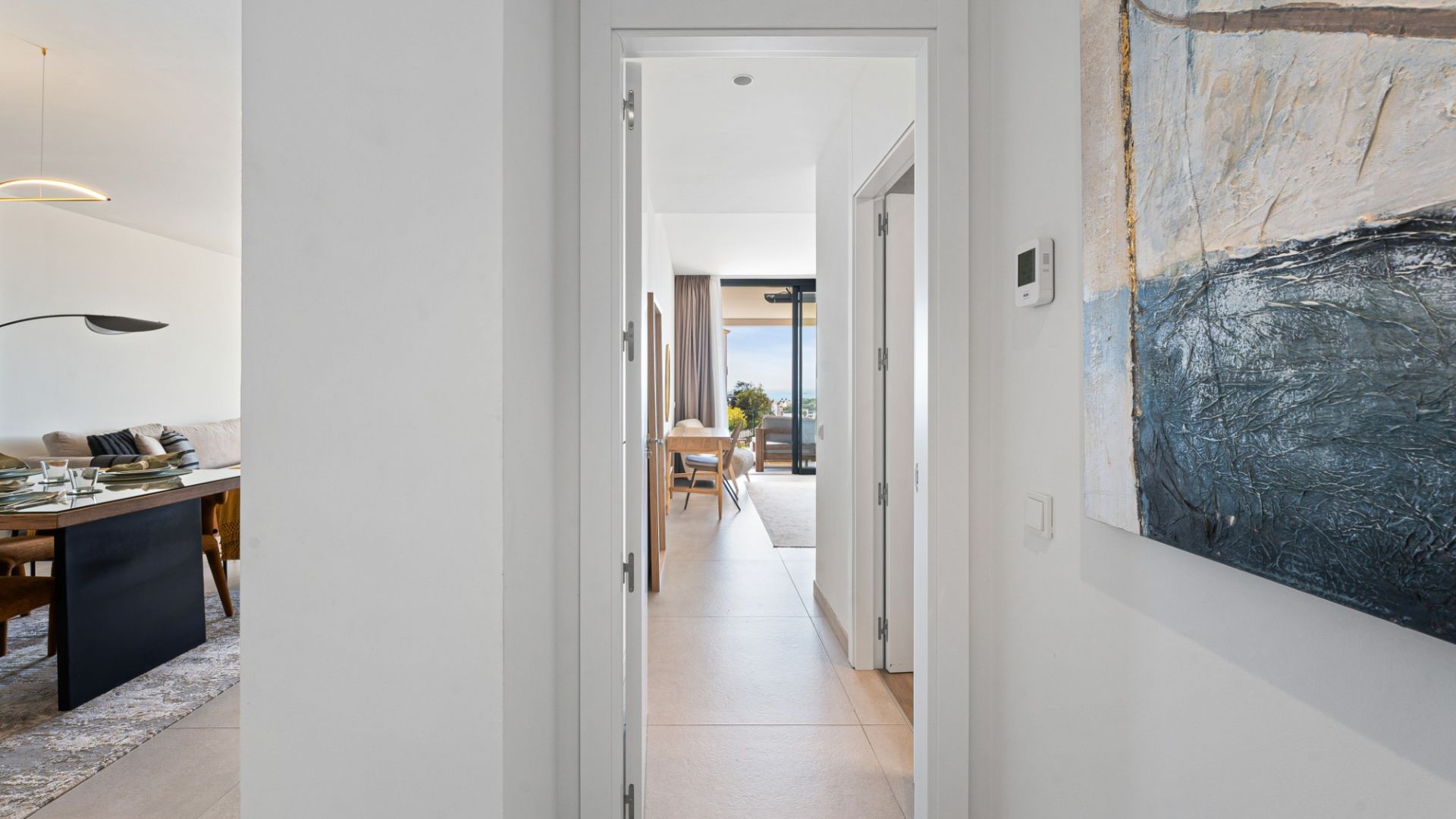 Lägenheten, skapad av Metrovacesa, har högkvalitativa material som Porcelanosa, Krion-kök och Siemens-apparater. Det öppna vardagsrummet sträcker sig ut mot en rymlig terrass, perfekt för att njuta av utsikten. Master bedroom har ett en-suite badrum, medan de andra rummen erbjuder flexibilitet för familje- eller kontorsutrymme.