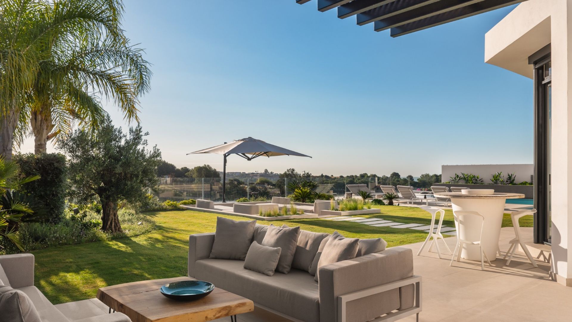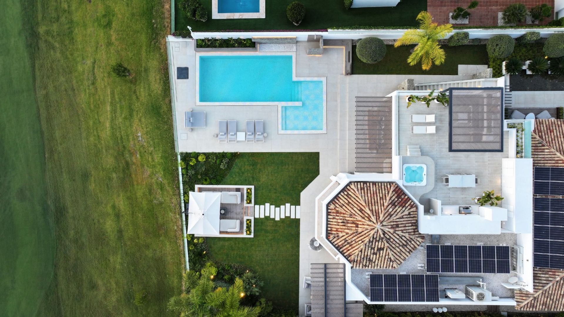 Den vackert anlagda trädgården har en uppvärmd pool, Chill Out-område och medelhavsinspirerade växter. Med avancerad hemautomation, solpaneler och energieffektiva system, kombinerar Villa La Vista modern design, komfort och hållbarhet i en idealisk miljö.