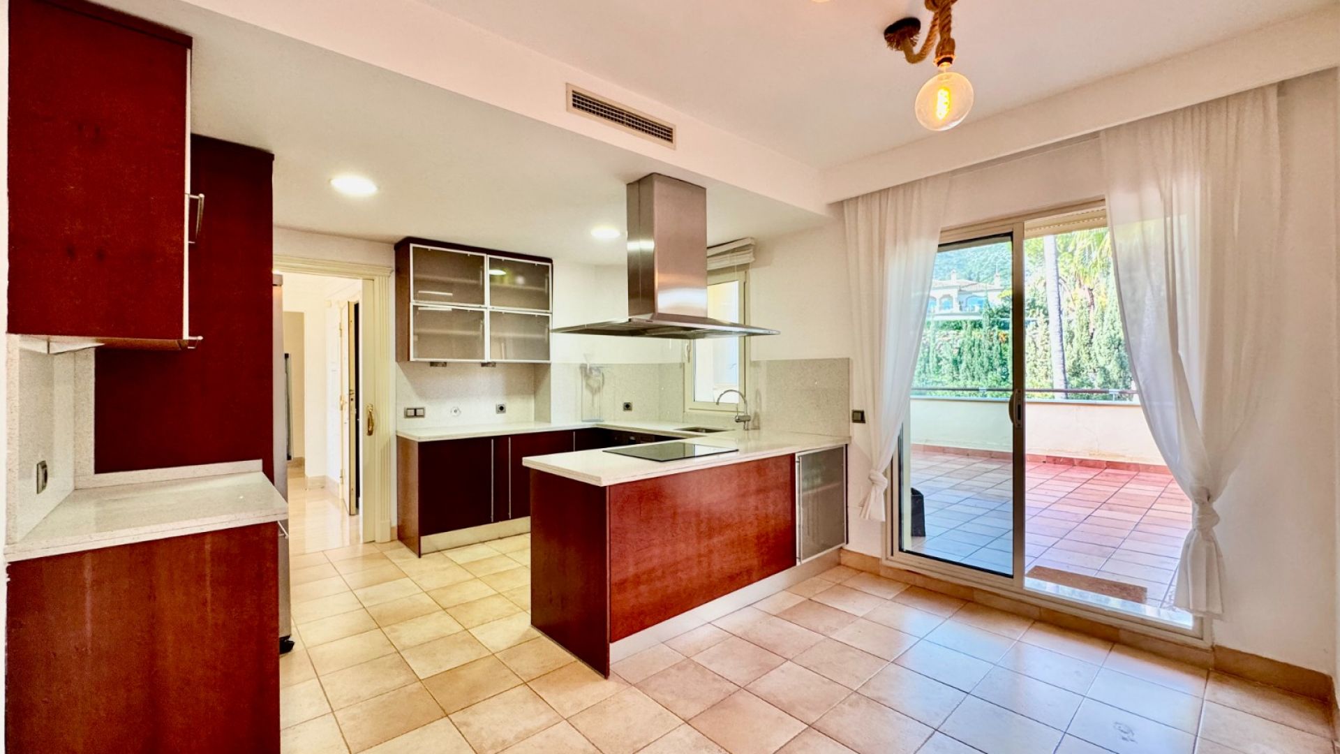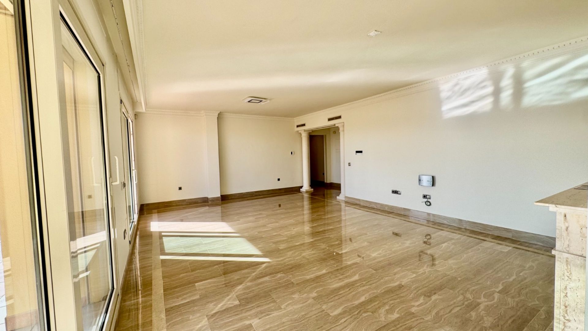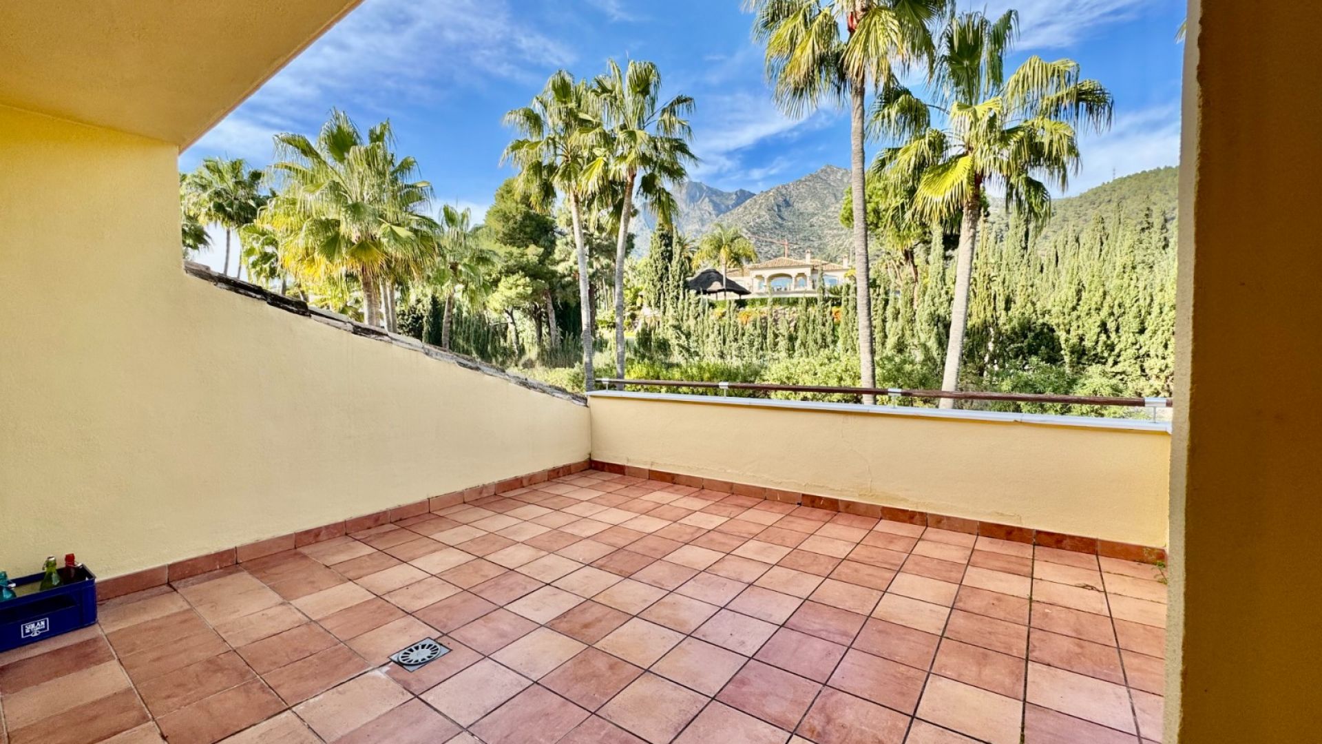 Denna exceptionella takvåning med tre sovrum ligger i ett prestigefyllt, inhägnat område i Condado de Sierra Blanca, bara fem minuter från centrala Marbella och Puerto Banús, längs den välkända Golden Mile. Det privilegierade läget erbjuder oöverträffad exklusivitet och bekvämlighet.