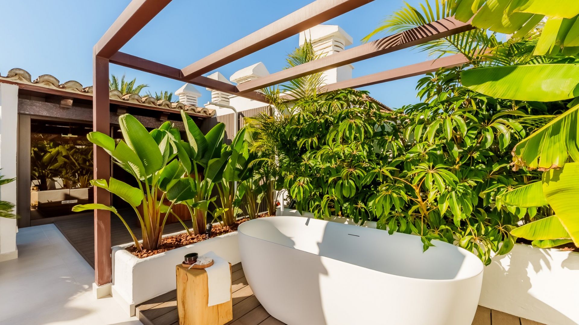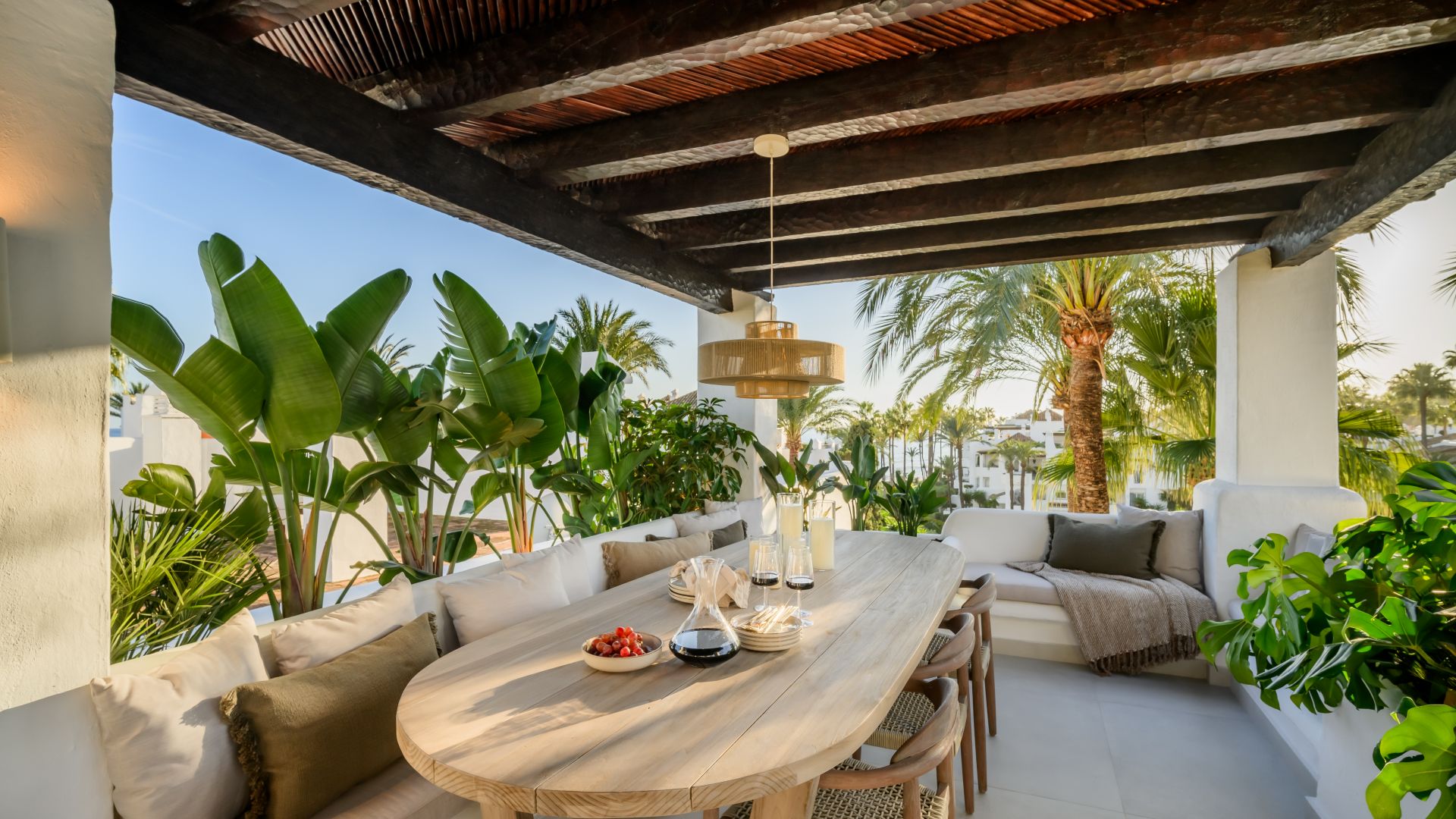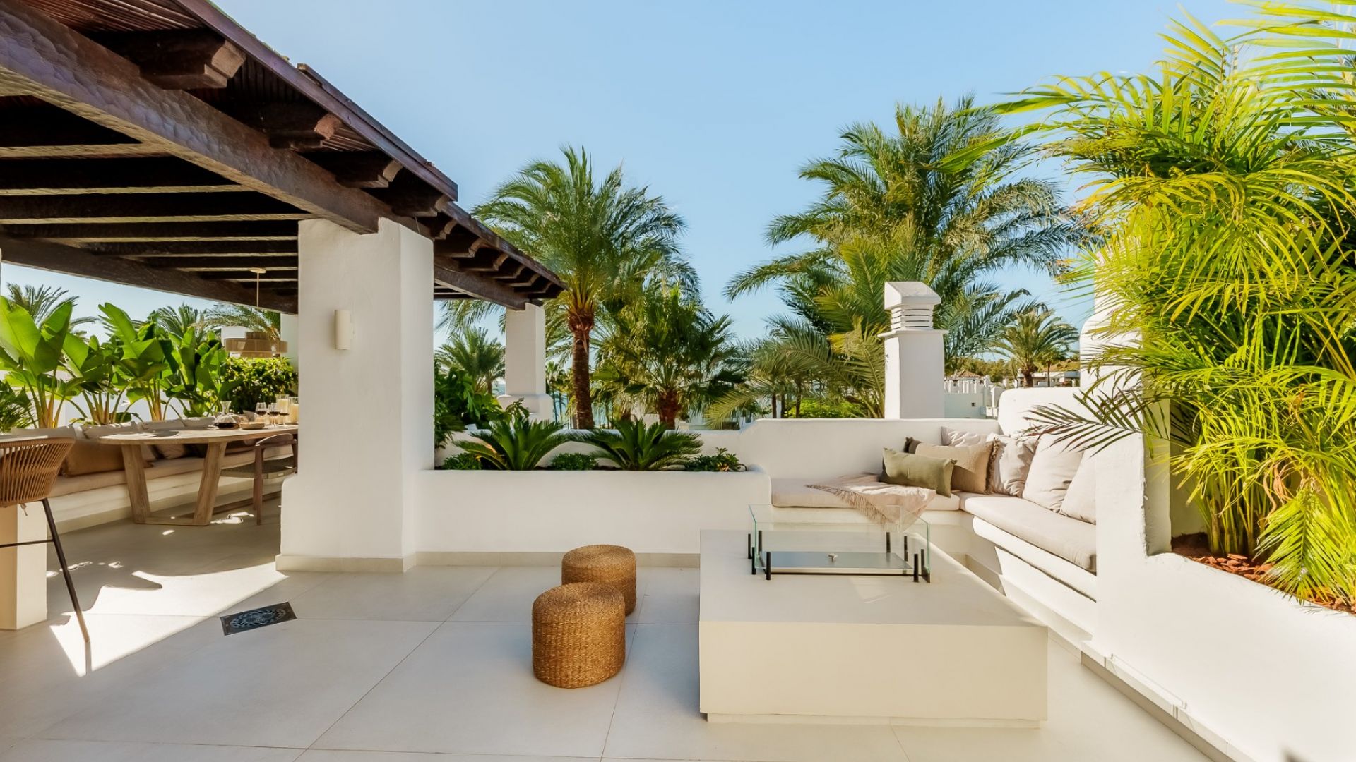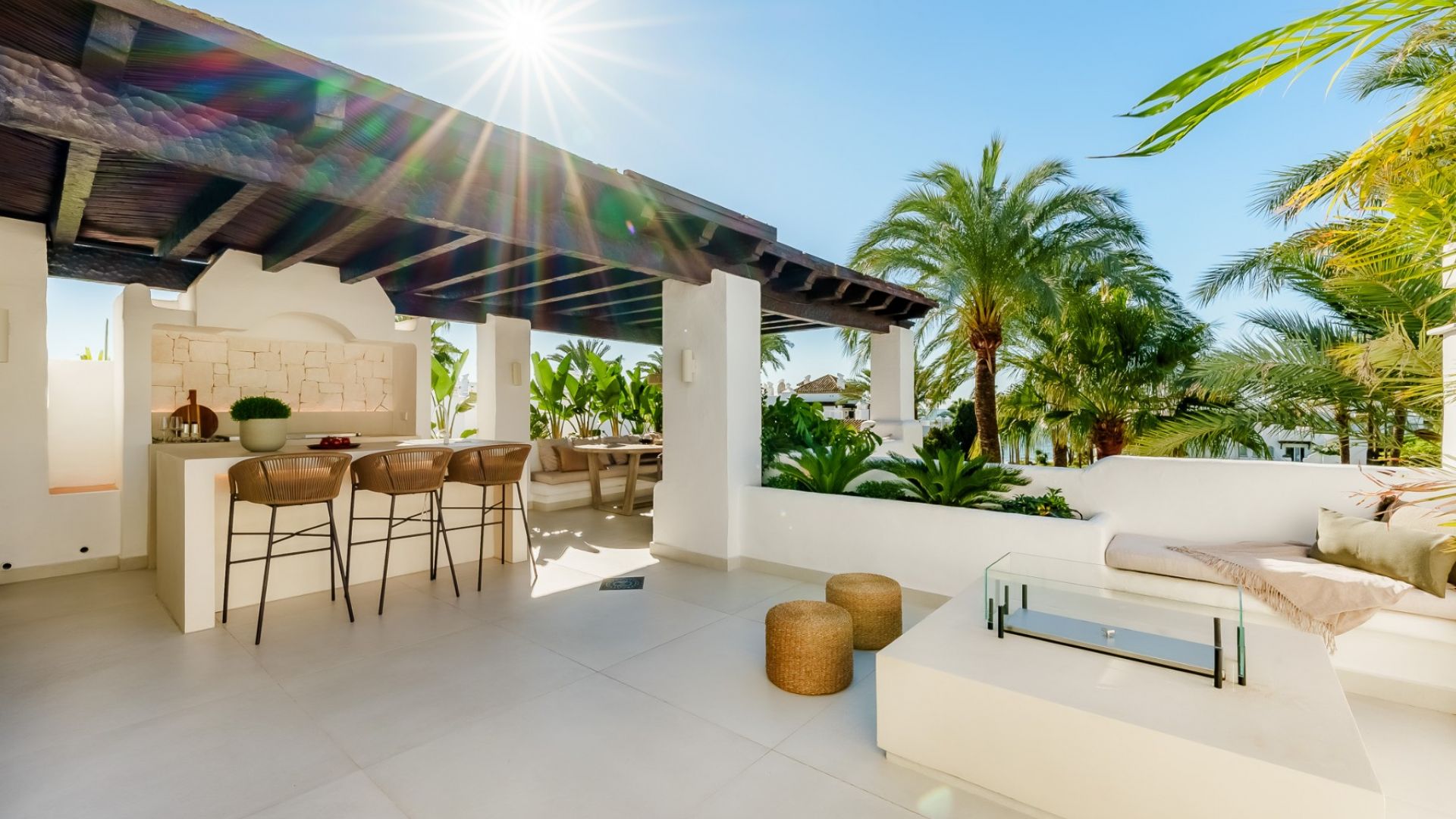 Välkommen till ditt kustnära paradis i den exklusiva urbaniseringen Alcazaba Beach i Estepona. Denna imponerande duplex erbjuder lyxigt boende med havsutsikt från varje vinkel. Med 3 rymliga sovrum och 3 badrum en suite, utmärker sig hemmet med ett överflöd av naturligt ljus och en sömlös inomhus-utomhus känsla. Njut av tre stora terrasser med sydvästlig och östlig utsikt, perfekta för att se solnedgångarna över Medelhavet.