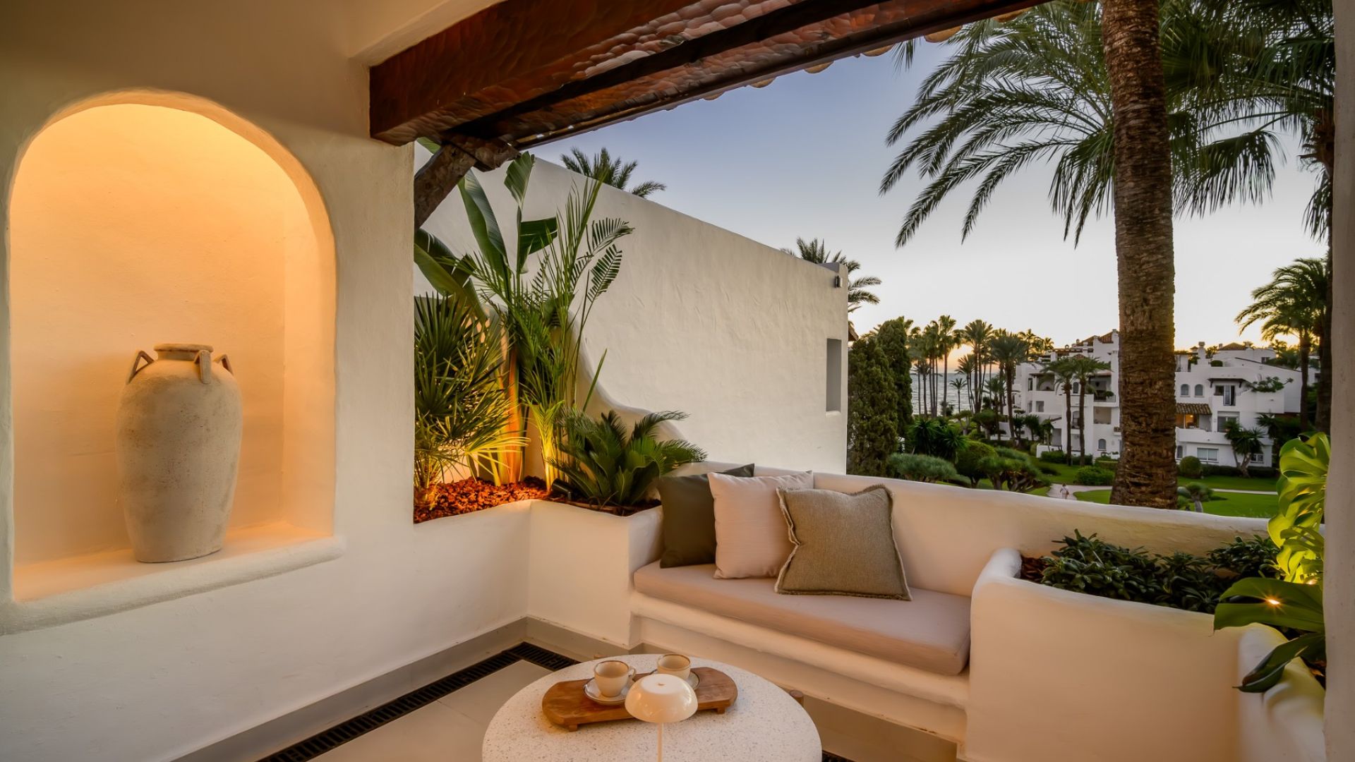 Direkt vid stranden ligger Alcazaba Beach med över 500 meter kustlinje och spektakulär utsikt över Gibraltar och Afrikas kust. De tropiska trädgårdarna, som har vunnit pris för Bästa Utveckling på Costa del Sol, kompletteras av sju pooler, tennis- och padelbanor, gym, 24-timmars säkerhet och en strandrestaurang. Allt detta, bara 10 minuters promenad från Esteponas charmiga gamla stad. Här bor du i lyx på allra bästa kustläge.