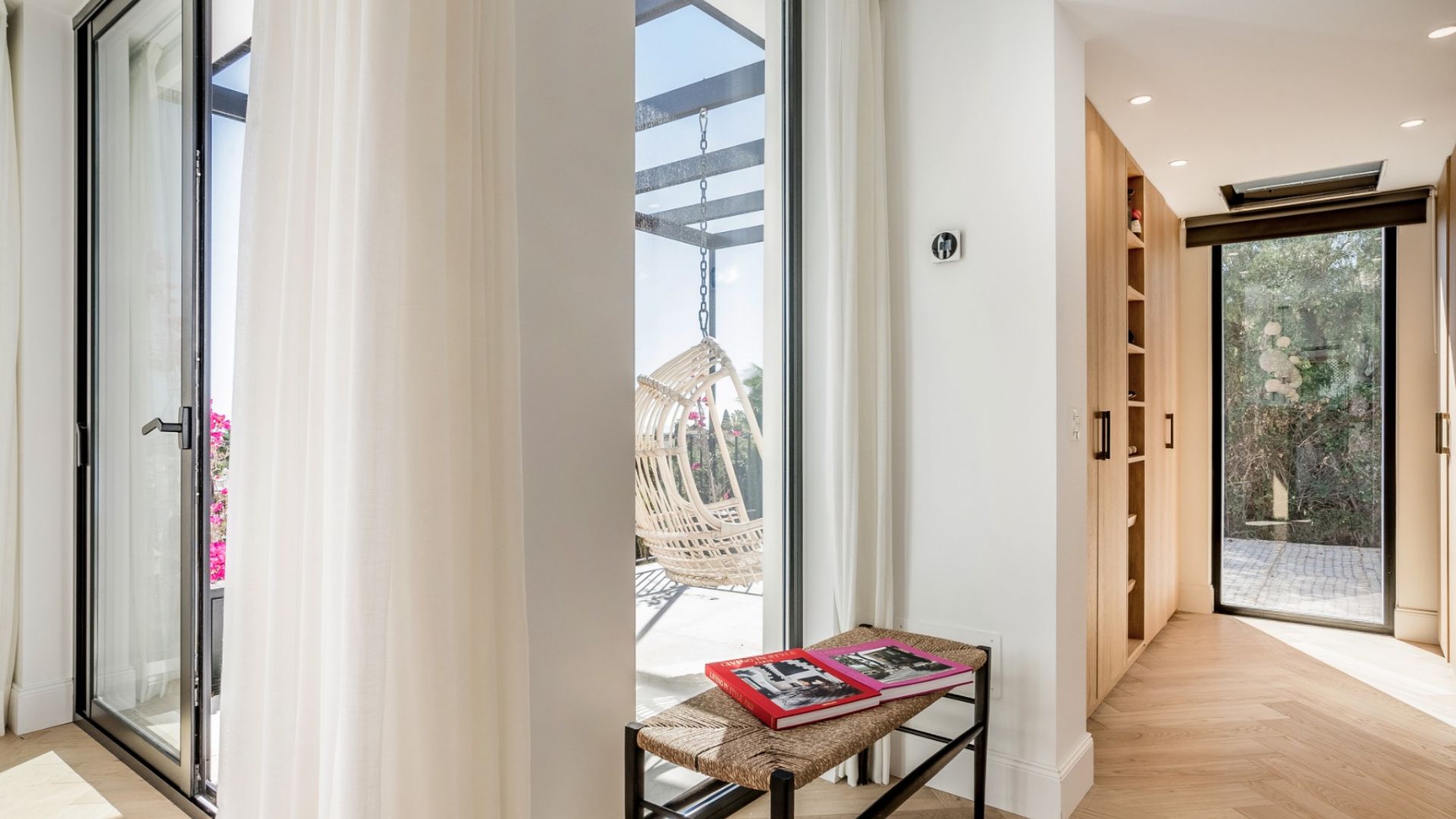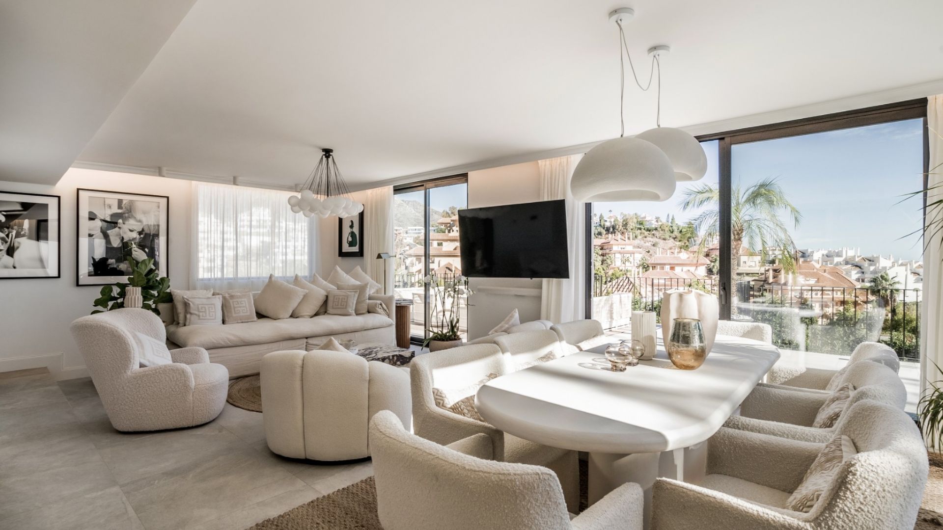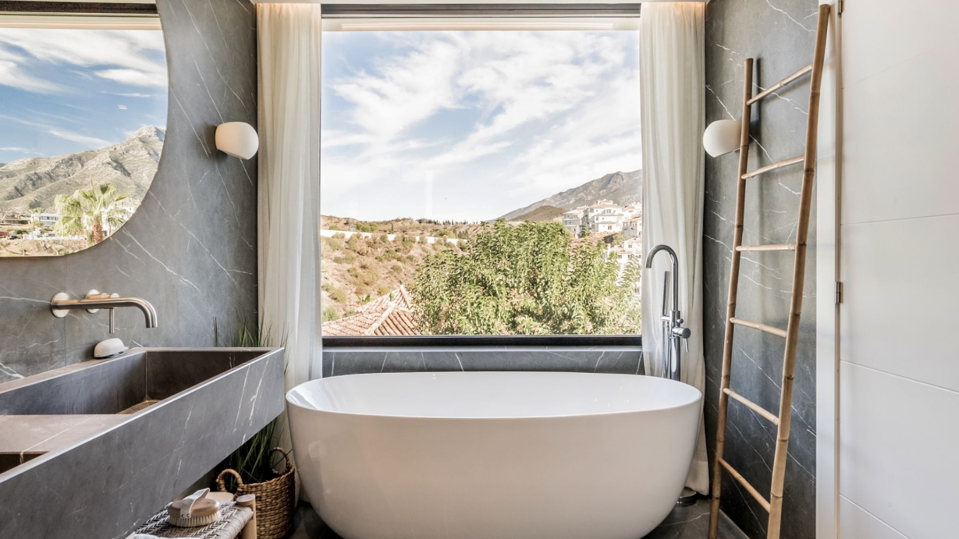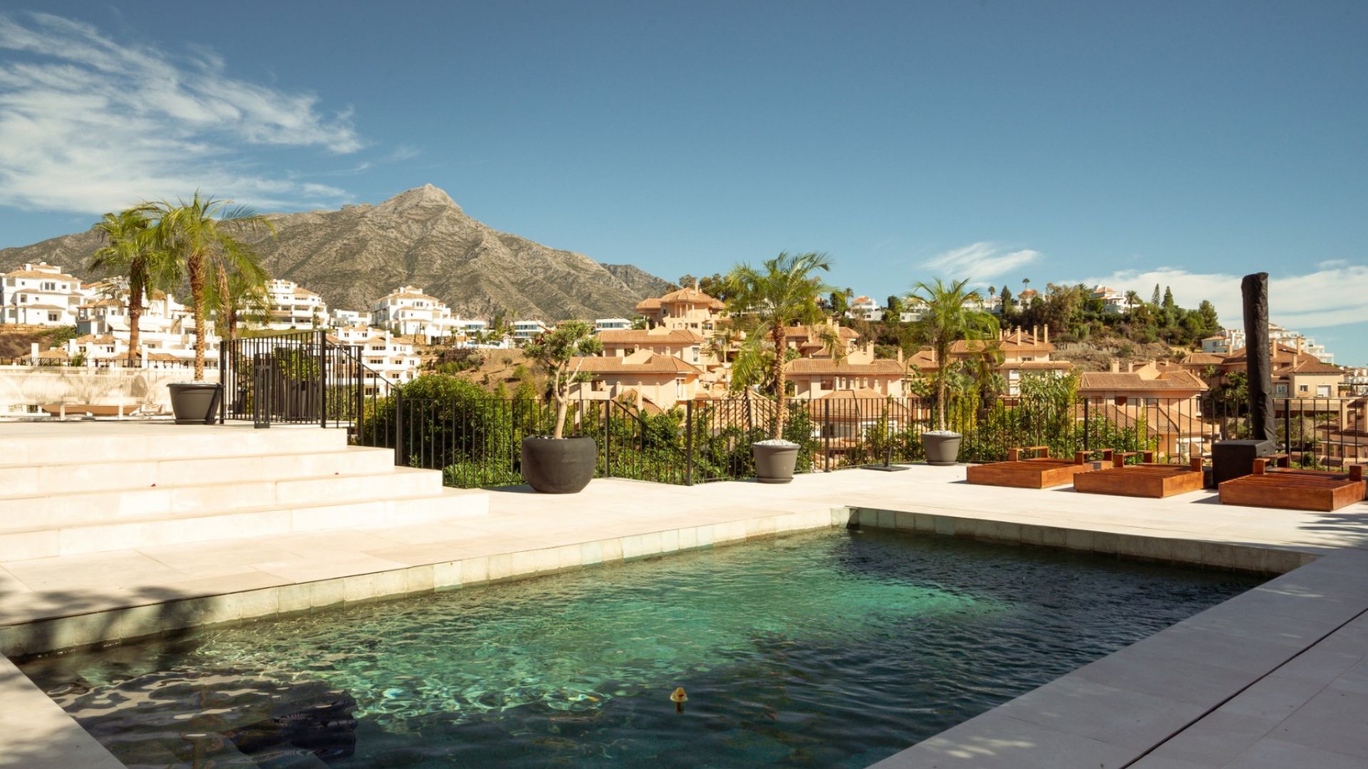 Färdigställd 2023, ligger denna moderna villa i den prestigefyllda Golf Valley i Nueva Andalucía. Med slående modern arkitektur och traditionella andalusiska inslag, erbjuder den spektakulära vyer över La Concha-berget, golfbanan och havet. Den öppna planlösningen har en Boho chic vardagsrum och matsal, ett fullt utrustat kök och stora fönster som flödar med naturligt ljus. Villan inkluderar ett biosalong, vinkällare och en fullt möblerad gästrätt.