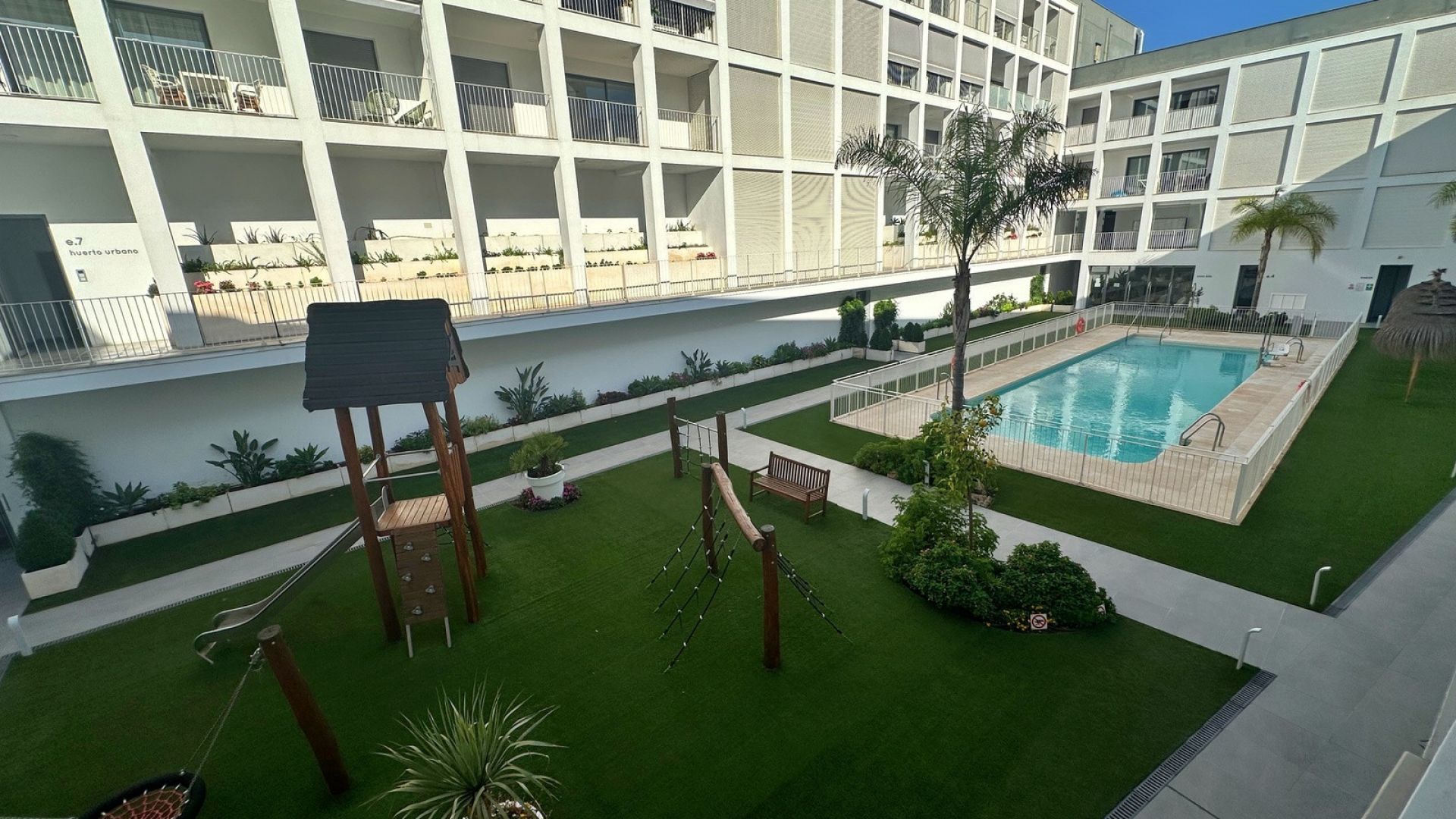 I priset ingår en garageplats under mark samt ett privat förråd. Fastigheten är belägen i ett säkert och inhägnat område byggt 2021. Som boende i Dora Maar har du tillgång till utmärkta faciliteter såsom gemensam pool, välskötta trädgårdar, fullt utrustat gym och lekplats för barn. Byggnaden har även videoporttelefon och energiklass B, vilket garanterar både komfort och energieffektivitet.